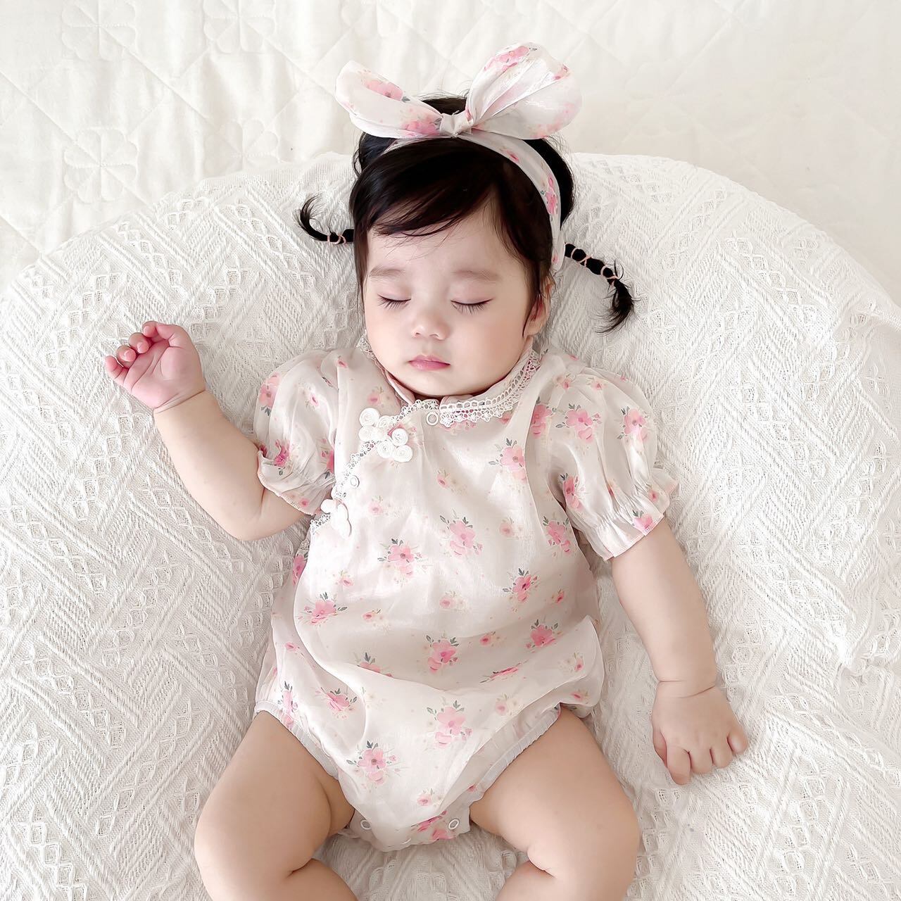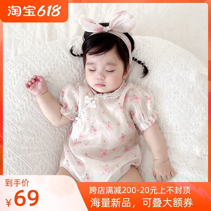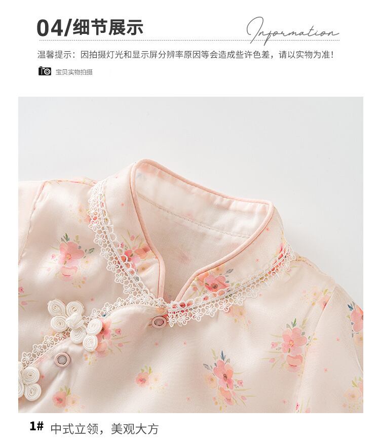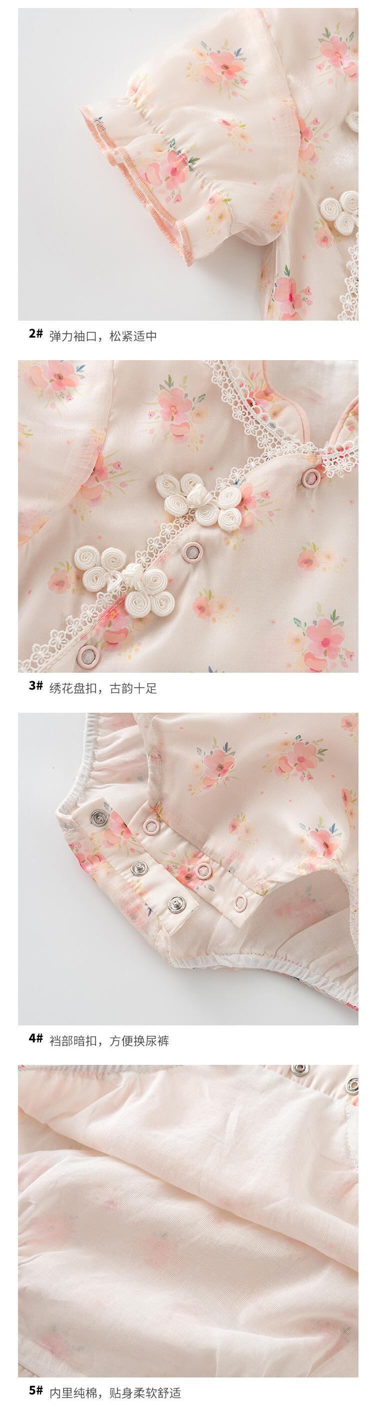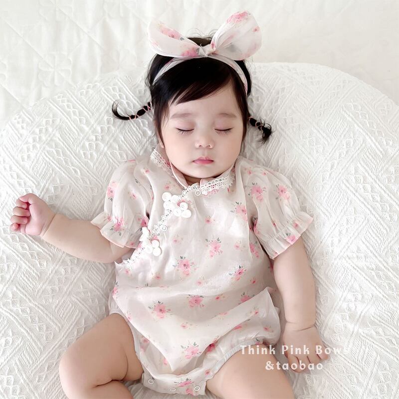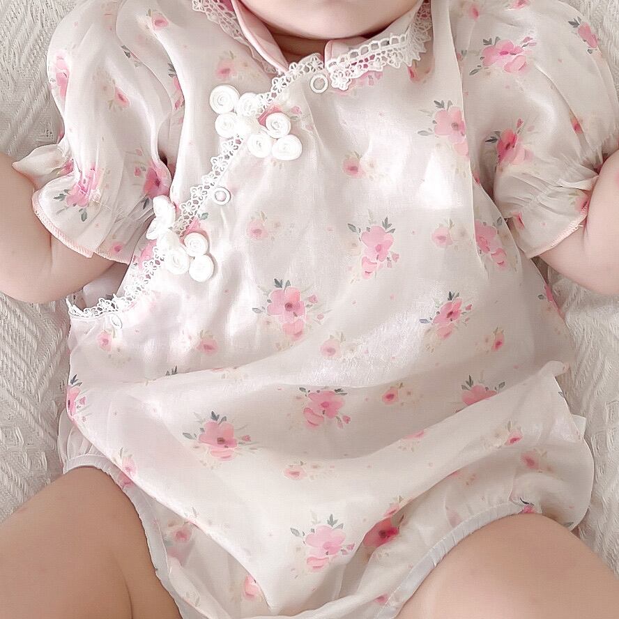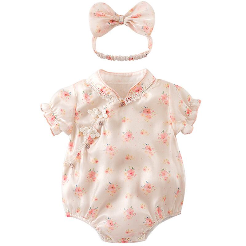 色:フローラルチャイナドレスロンパース+ヘアバンド