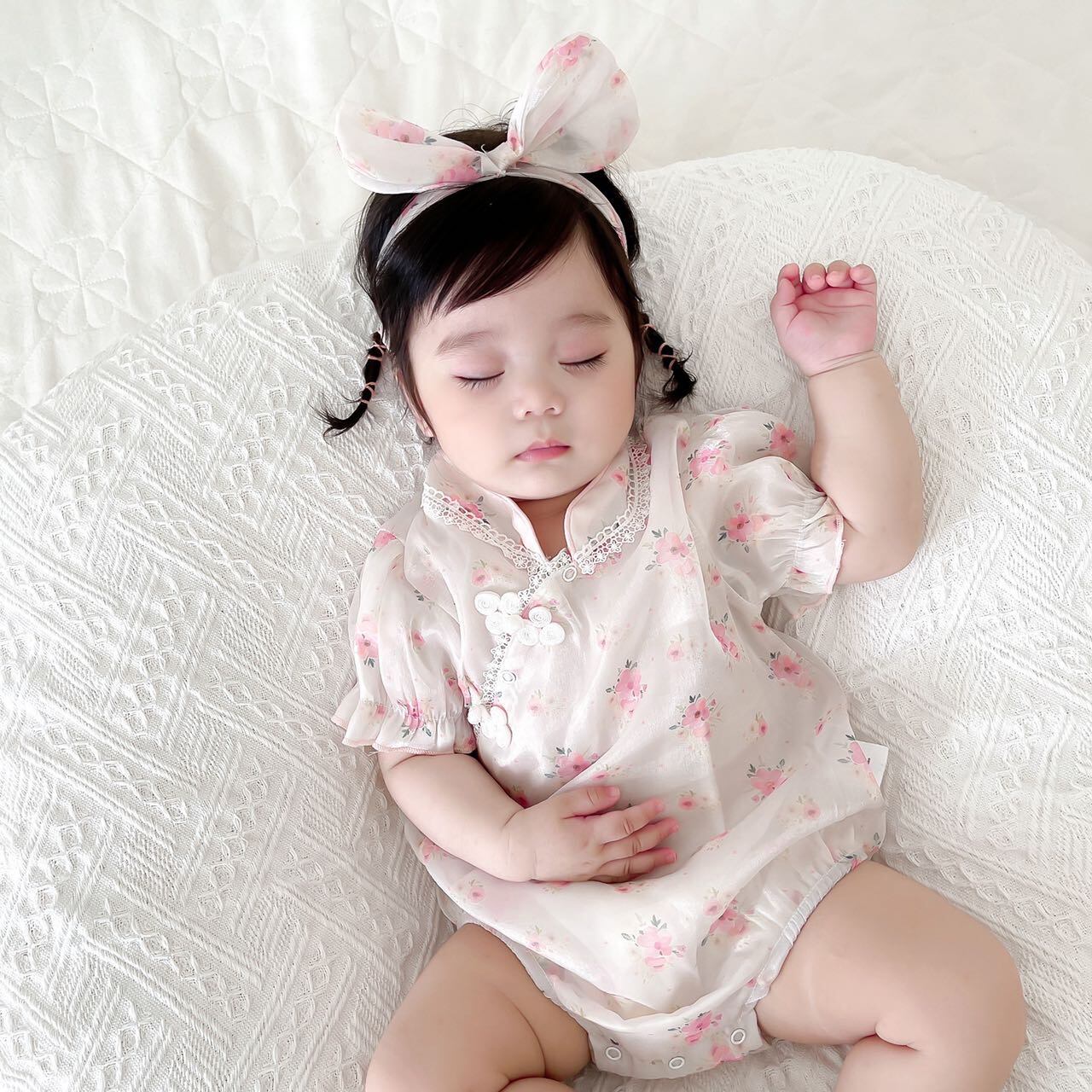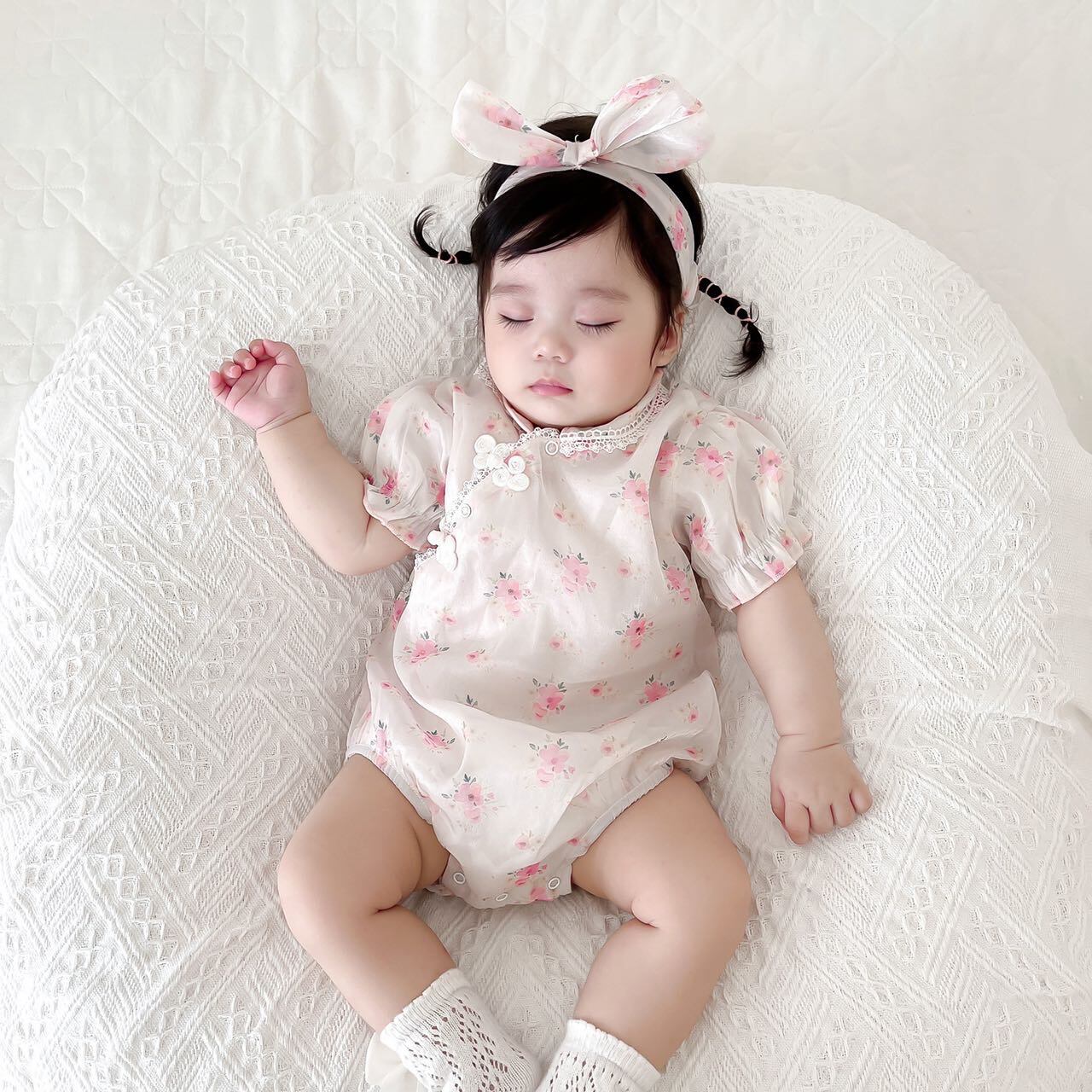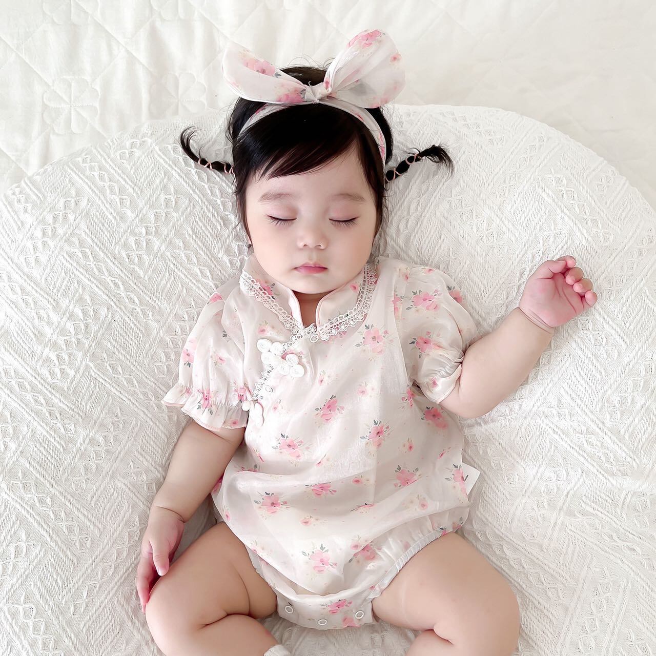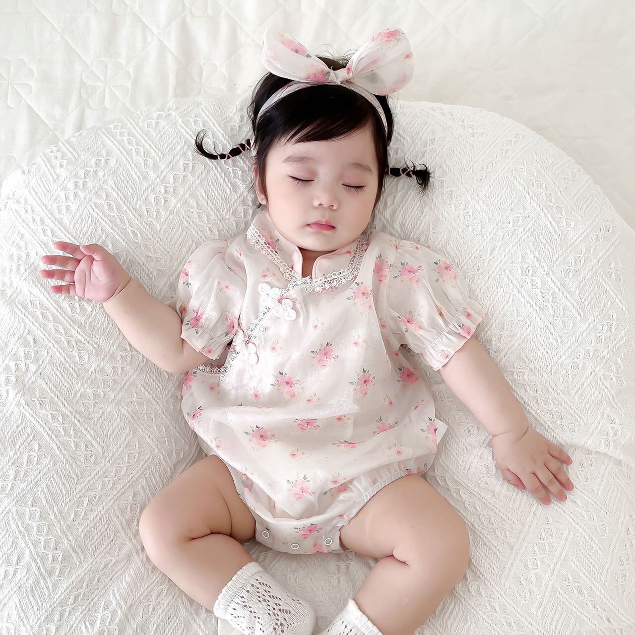 色:フローラルチャイナドレスロンパース+ヘアバンド