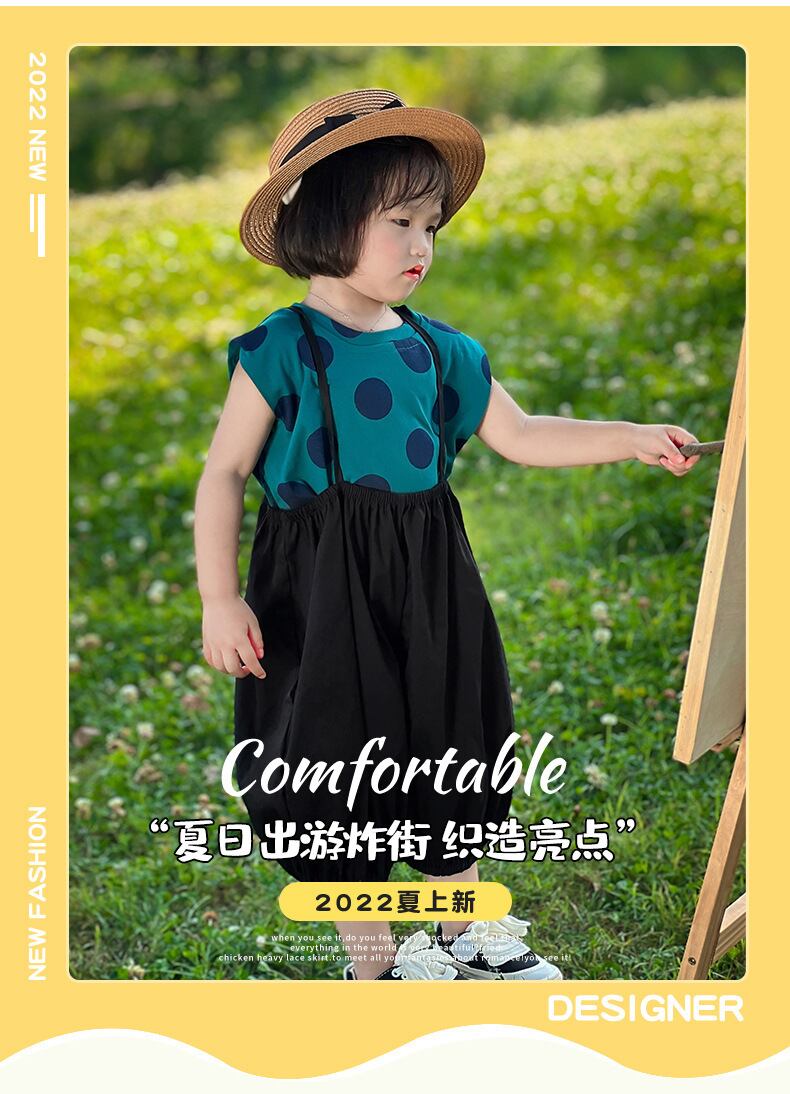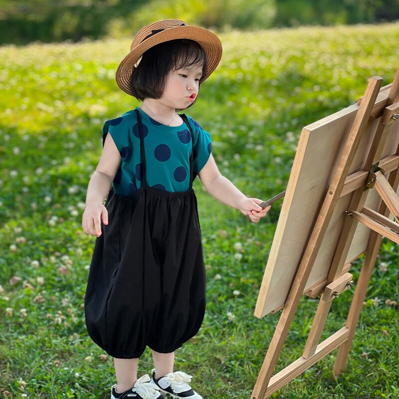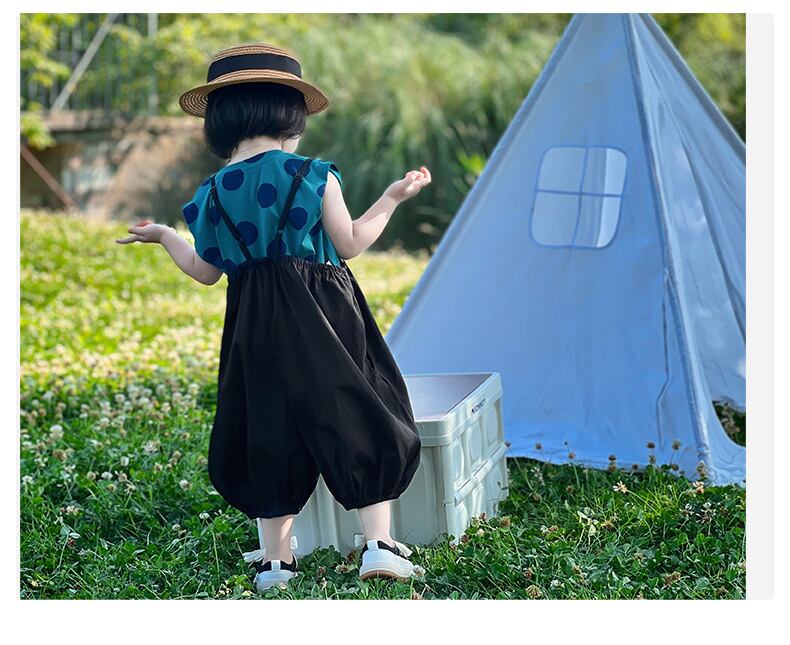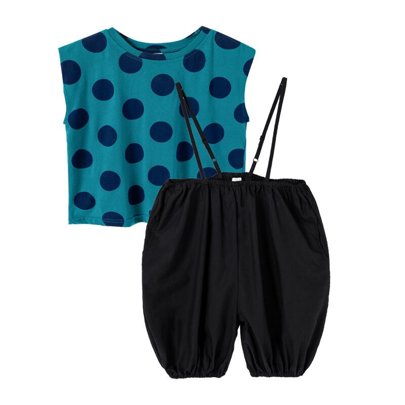 サマーブルー水玉Tシャツ オーバーオール セット 薄手カジュアルスタイル 夏物 5/17 春夏 SS mi0912798315017 | Sagittarius By Constellation -KIDS&BABY-