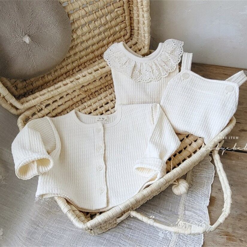 色:ホワイト長袖ロンパース,白いサスペンダーロンパース,白いコート
