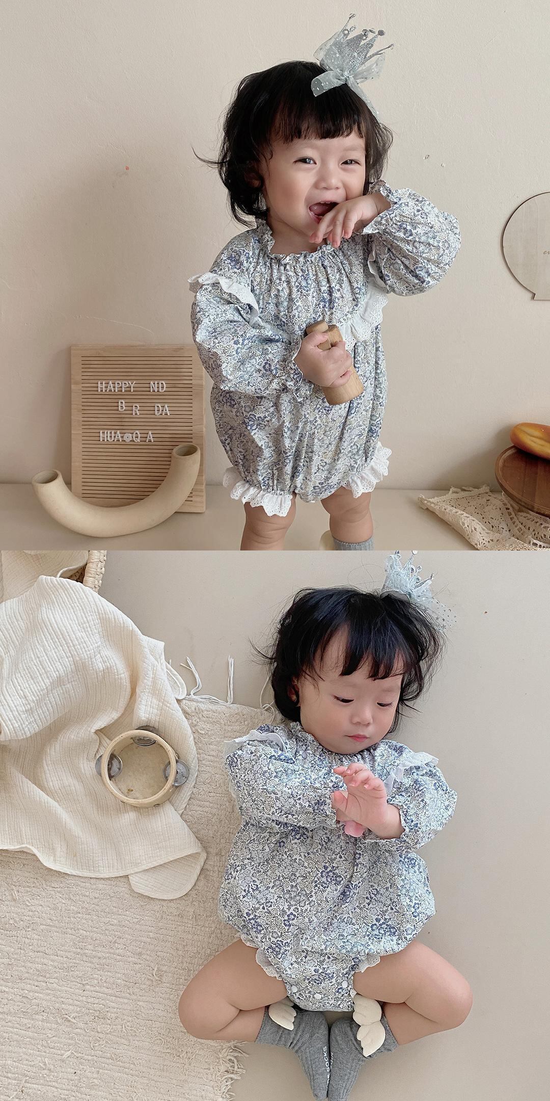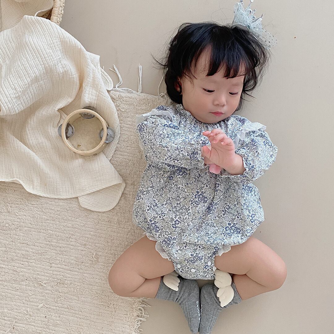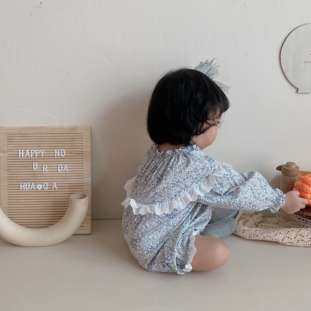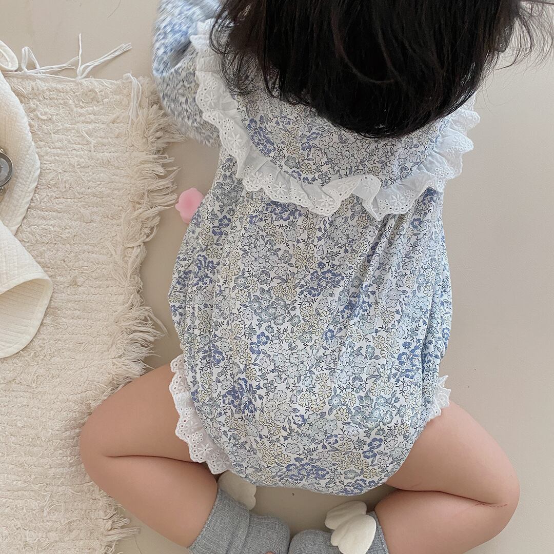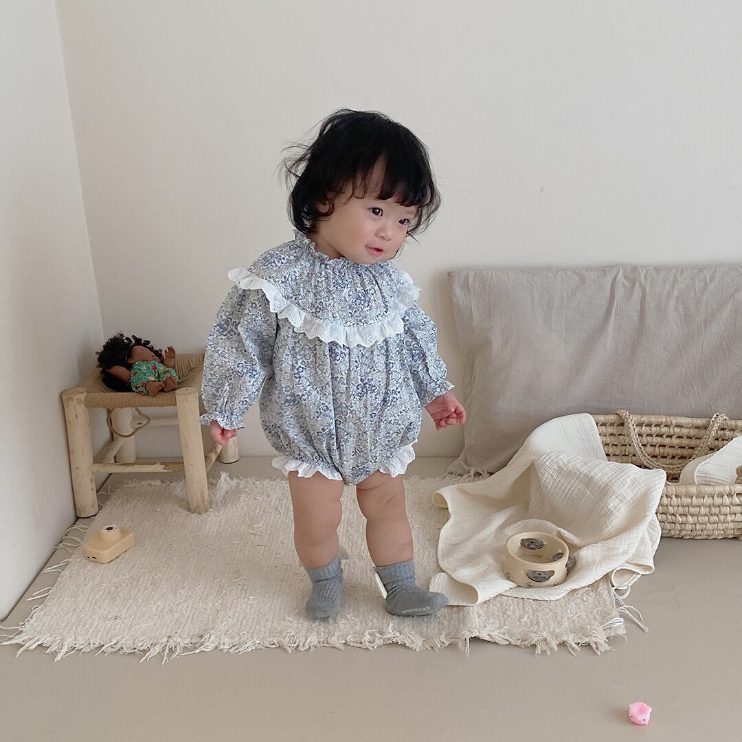 色:フローラルロンパースブルー