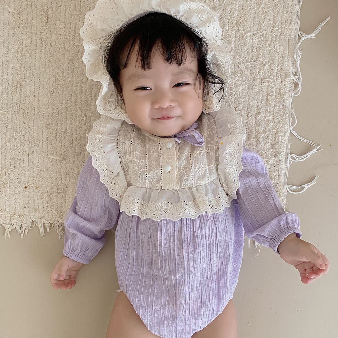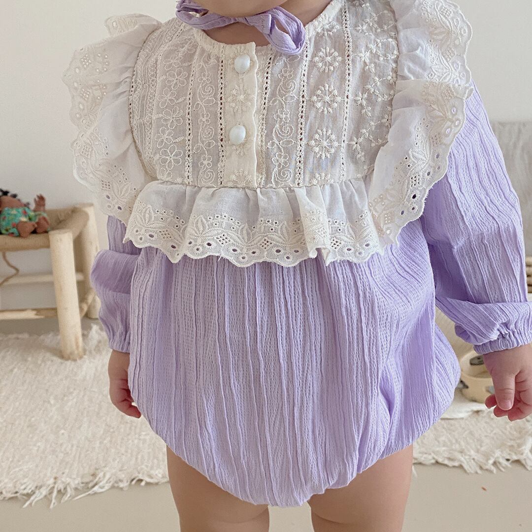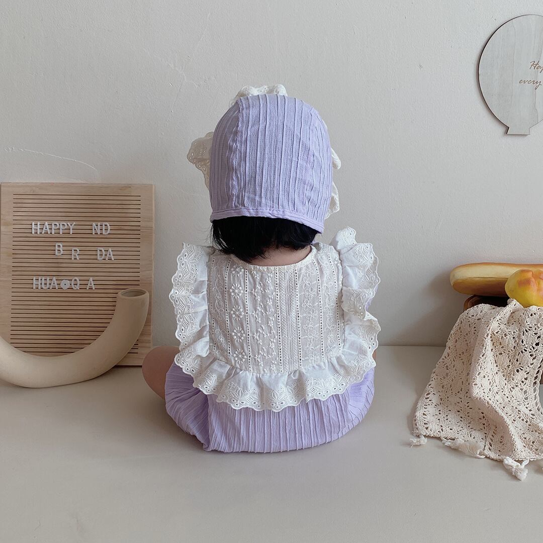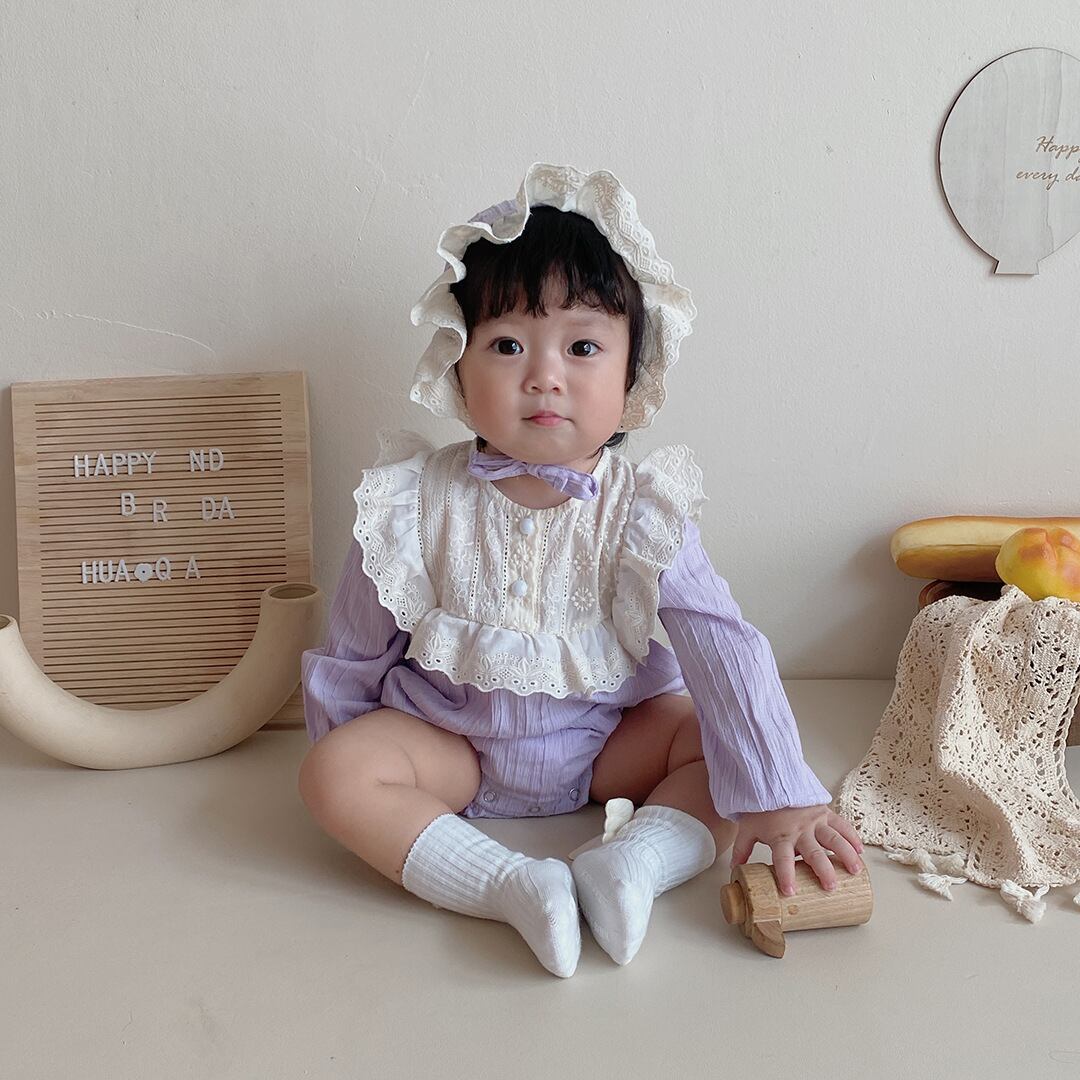 色:パープルカラーブロックロンパース+ハット