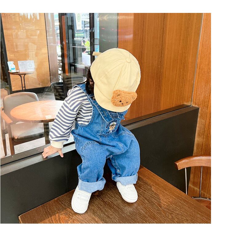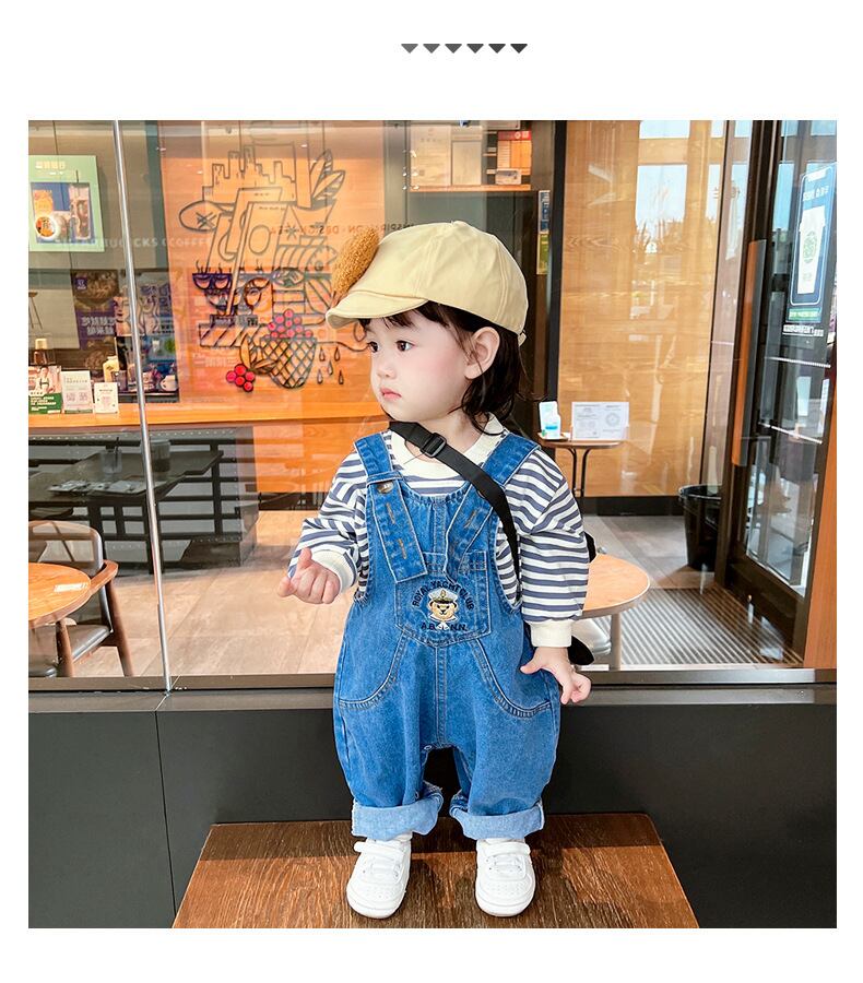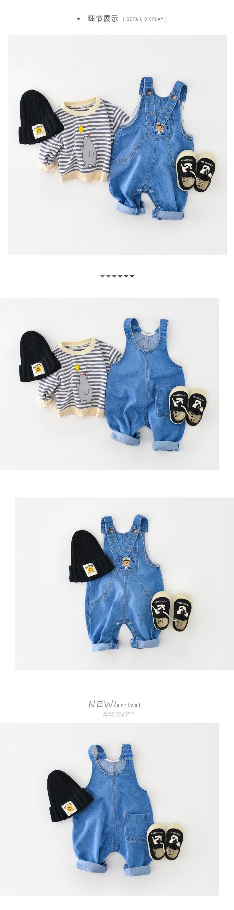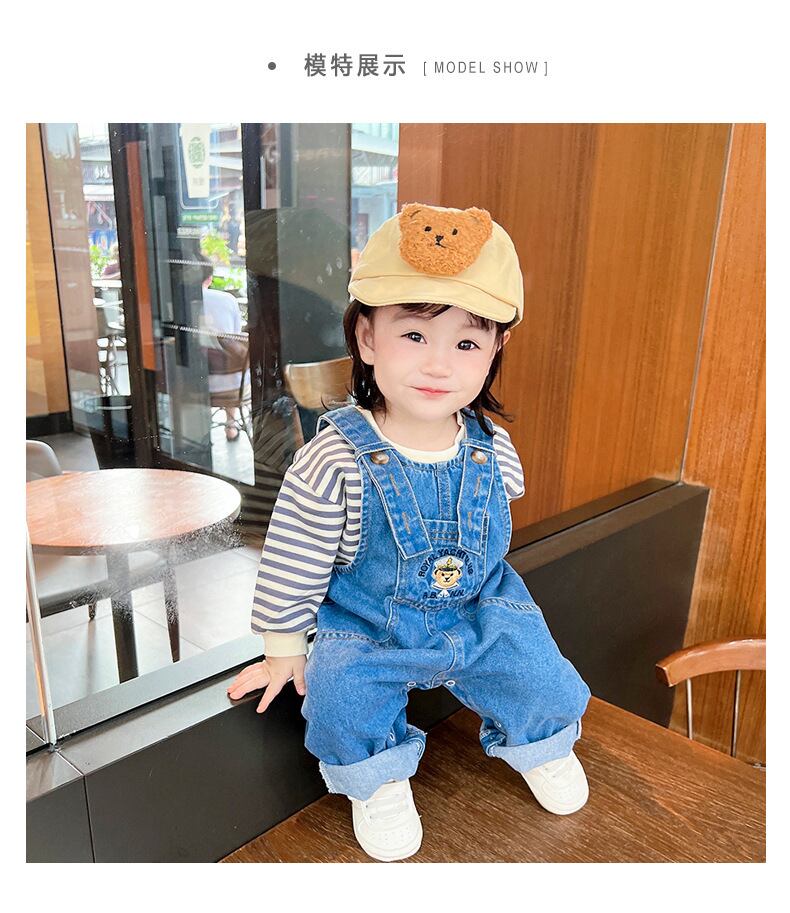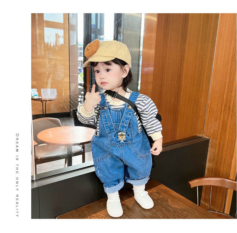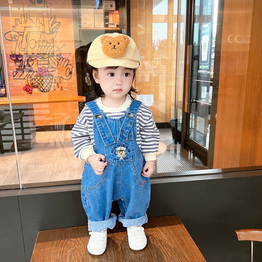 色:ブルーベアのオーバーオール調節可能なショルダーストラップ,ブルーストライプトップ