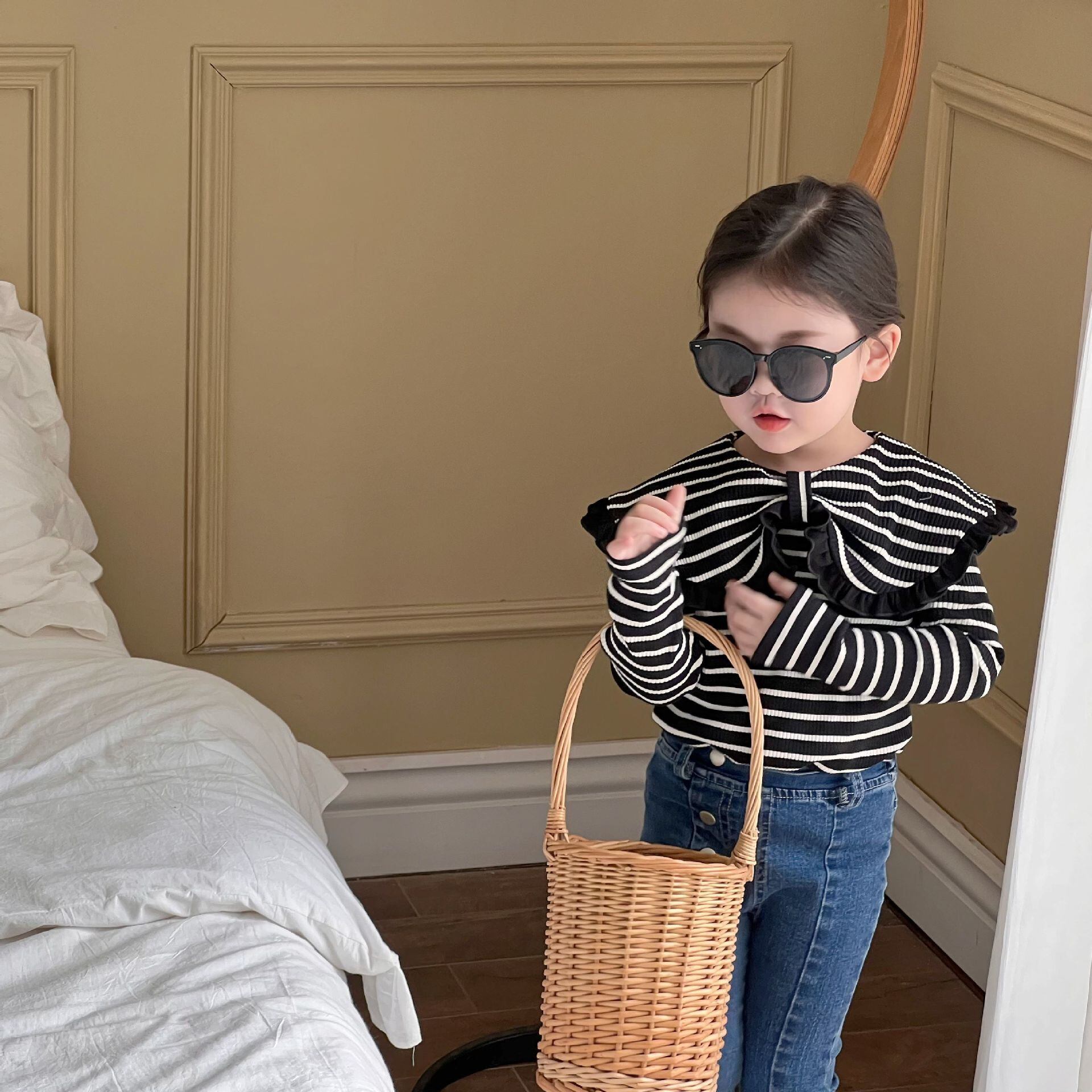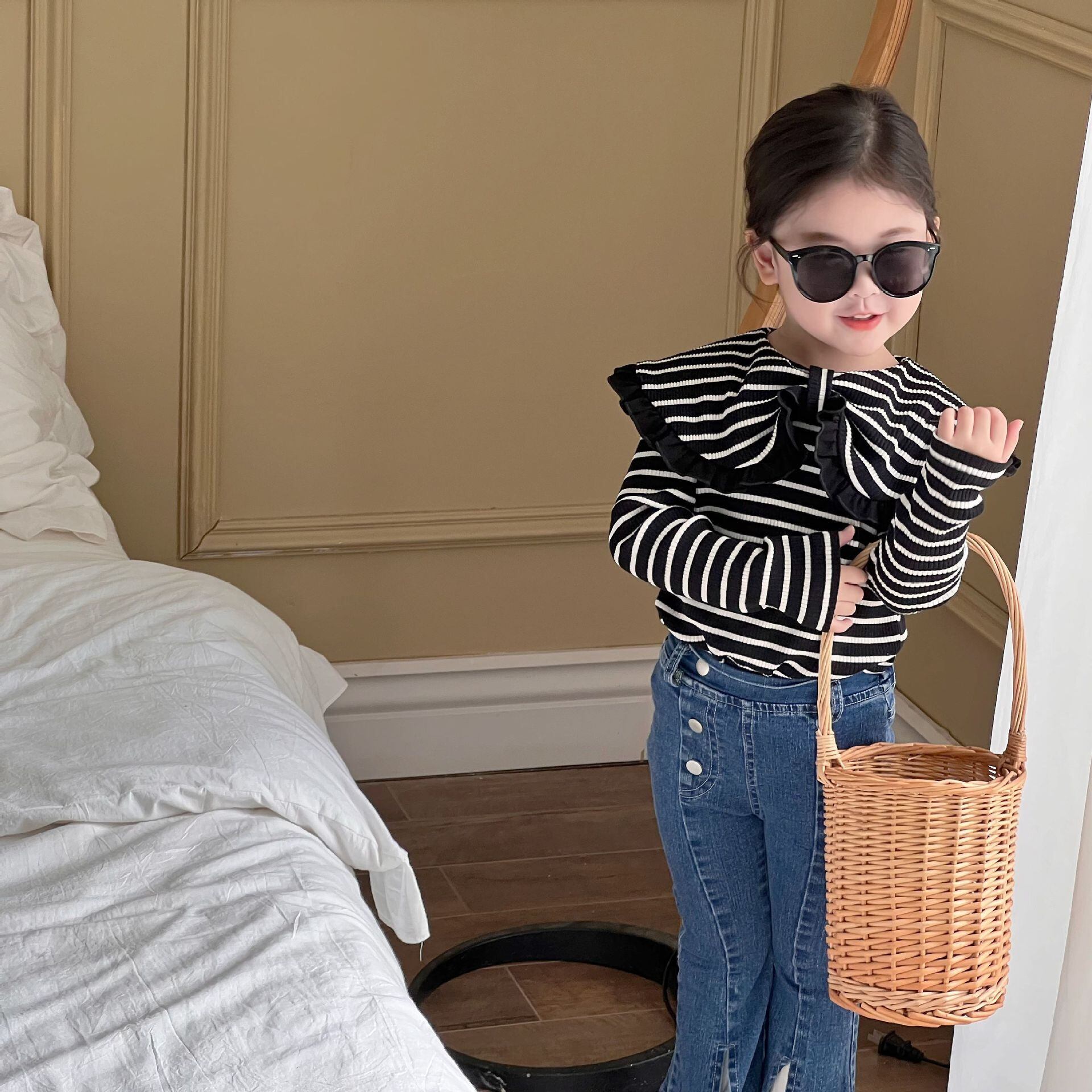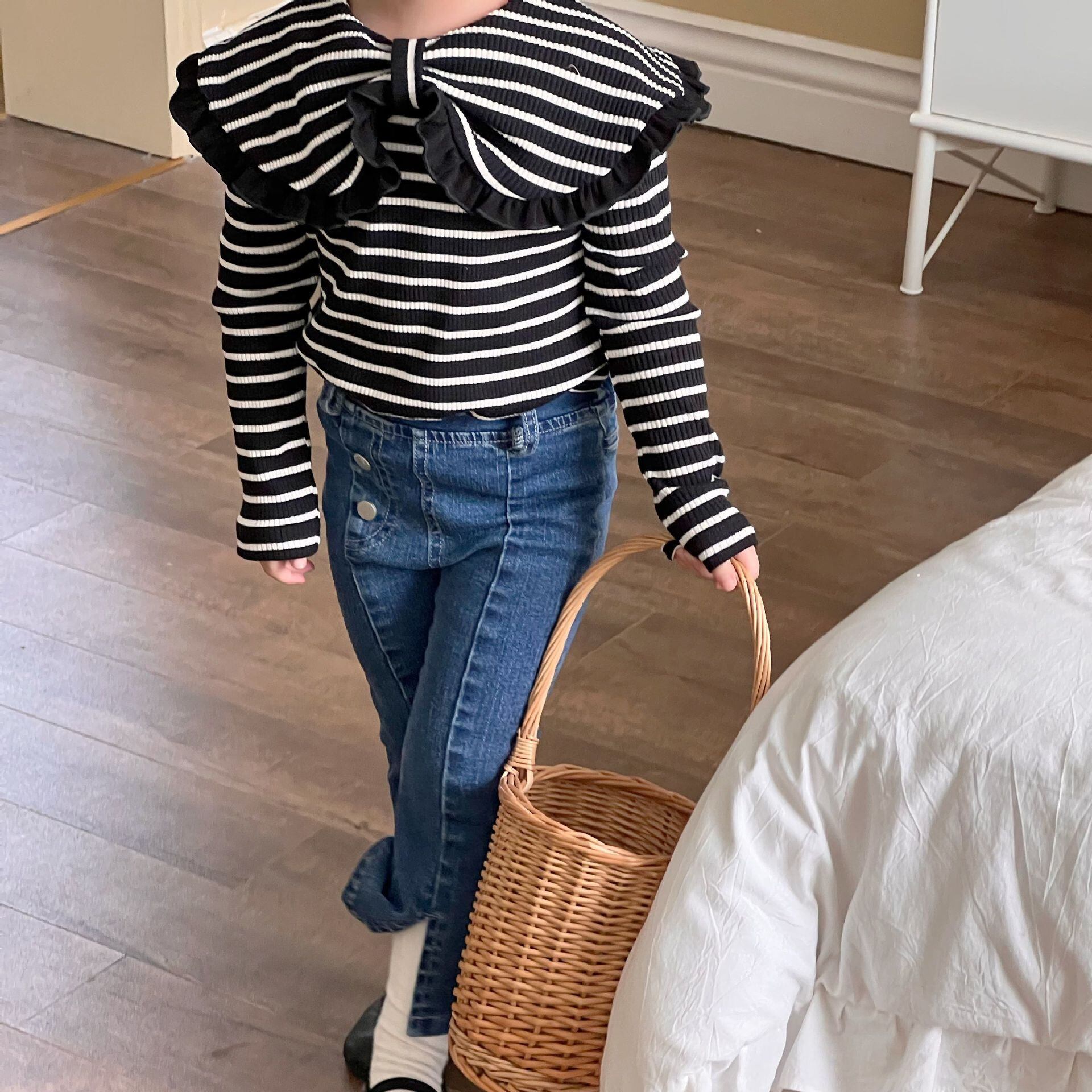色:ホワイトストライプラーペルラペル,ブラックストライプラーペルラペル,ブルージーンズ,黒いズボン