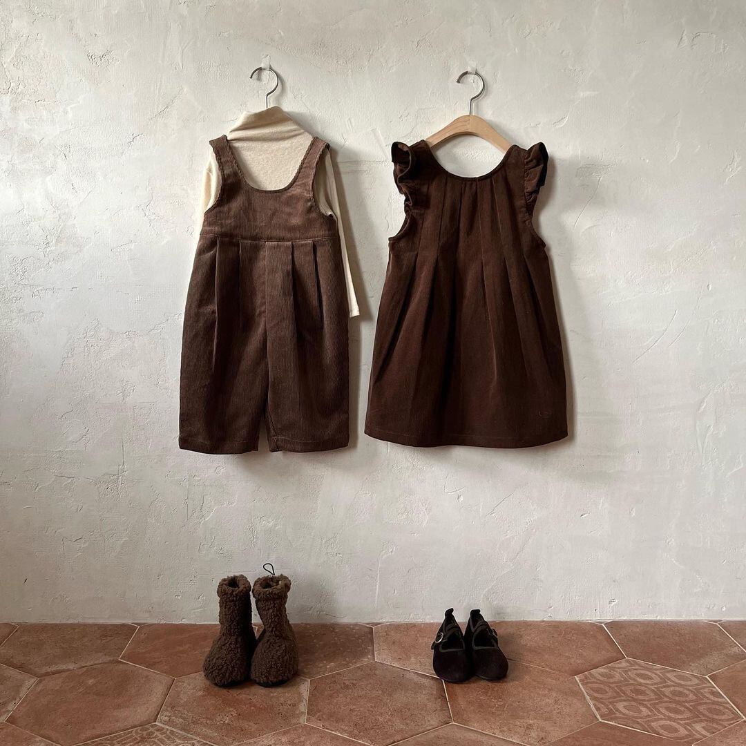 色:アプリコットボトムスシャツ,ビブパンツ,ストラップドレス
