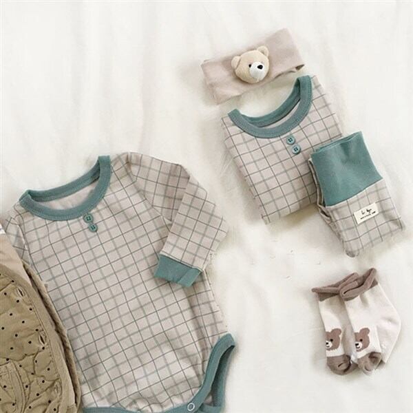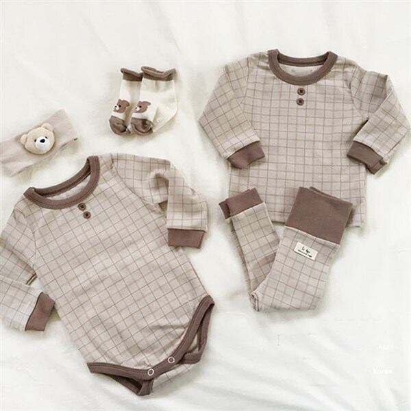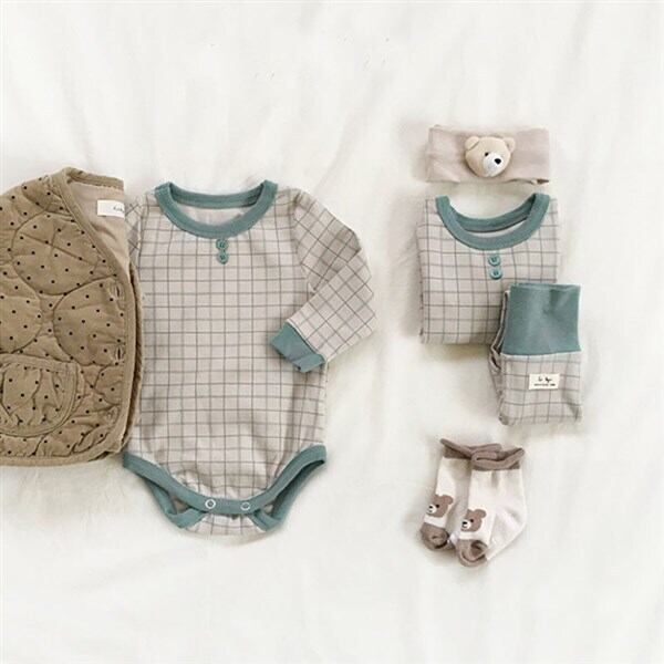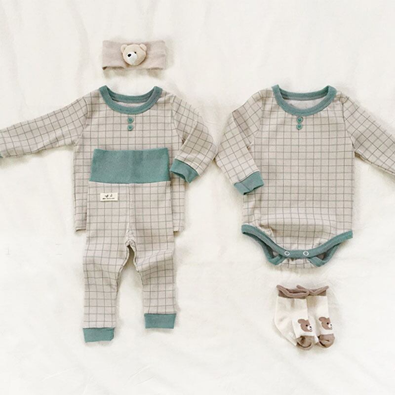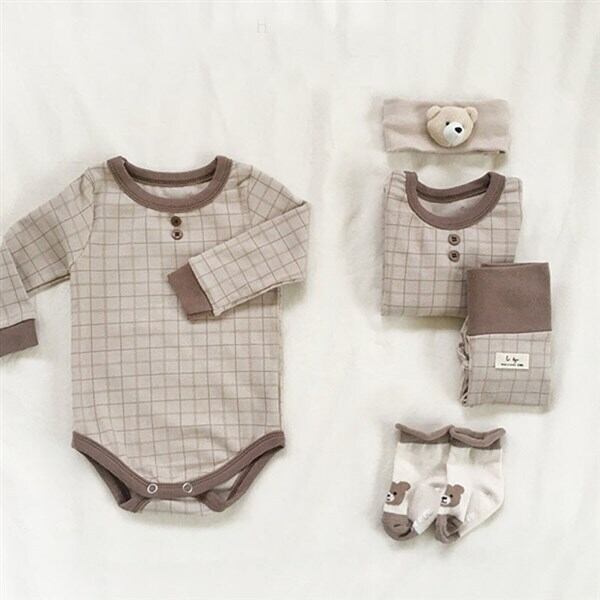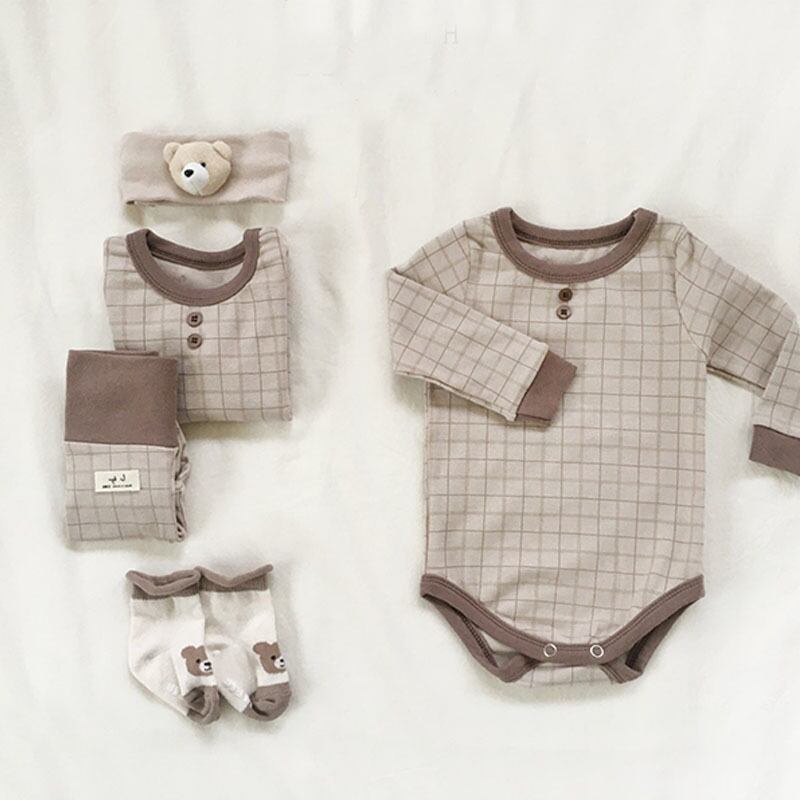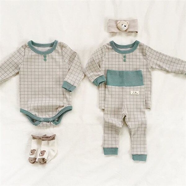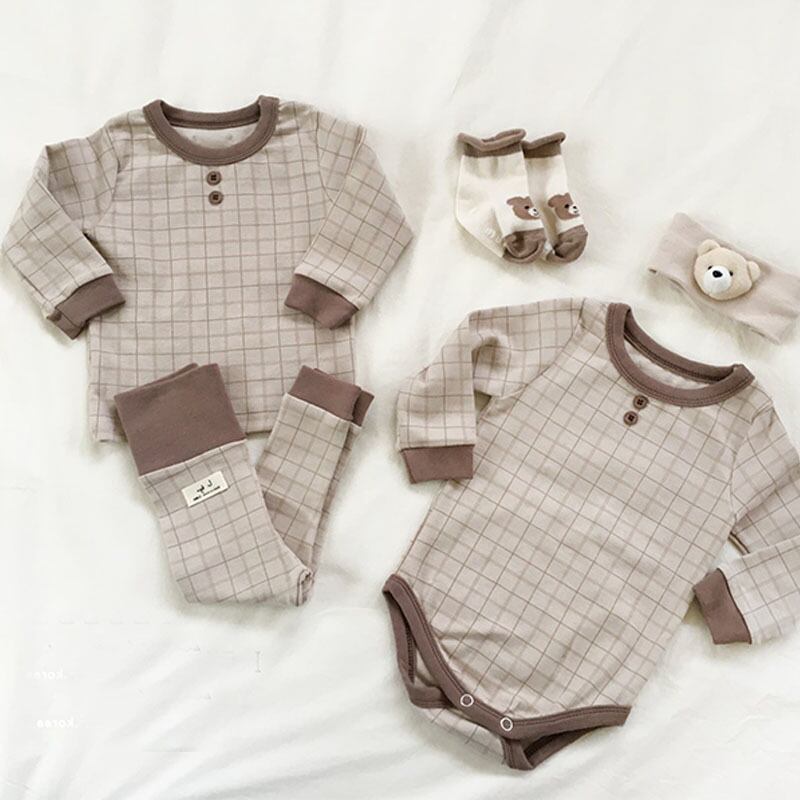 色:ブルーロンパース,青いツーピースのスーツ,ブラウンロンパー,ブラウングリッドツーピーススーツ