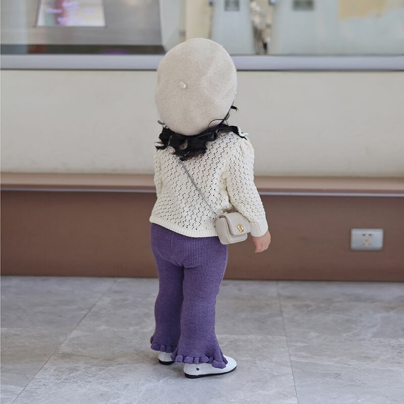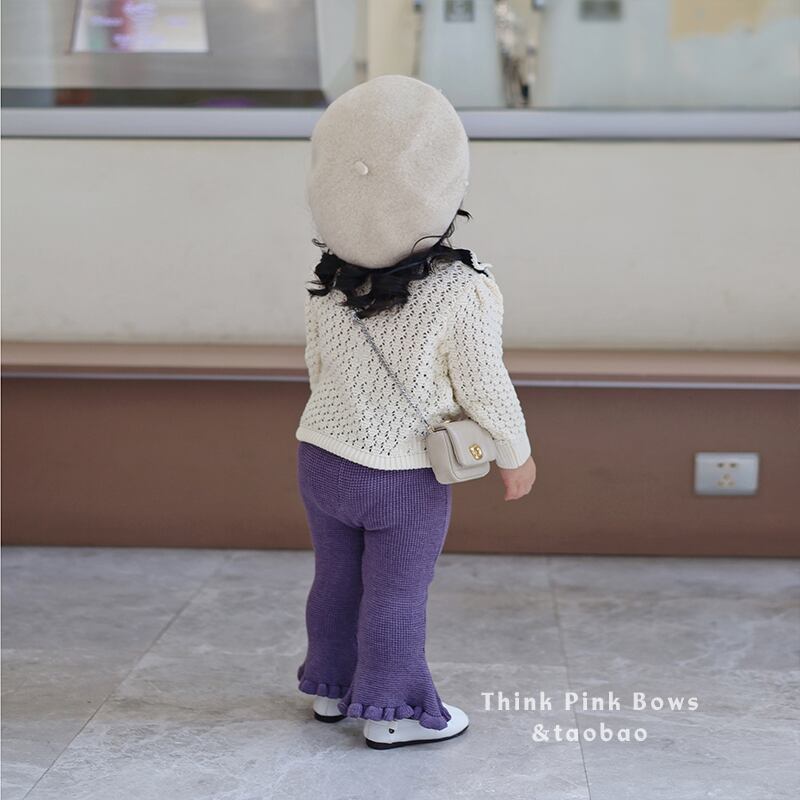 色:アプリコットホワイトトップレイトゥドライ,紫のニットパンツ