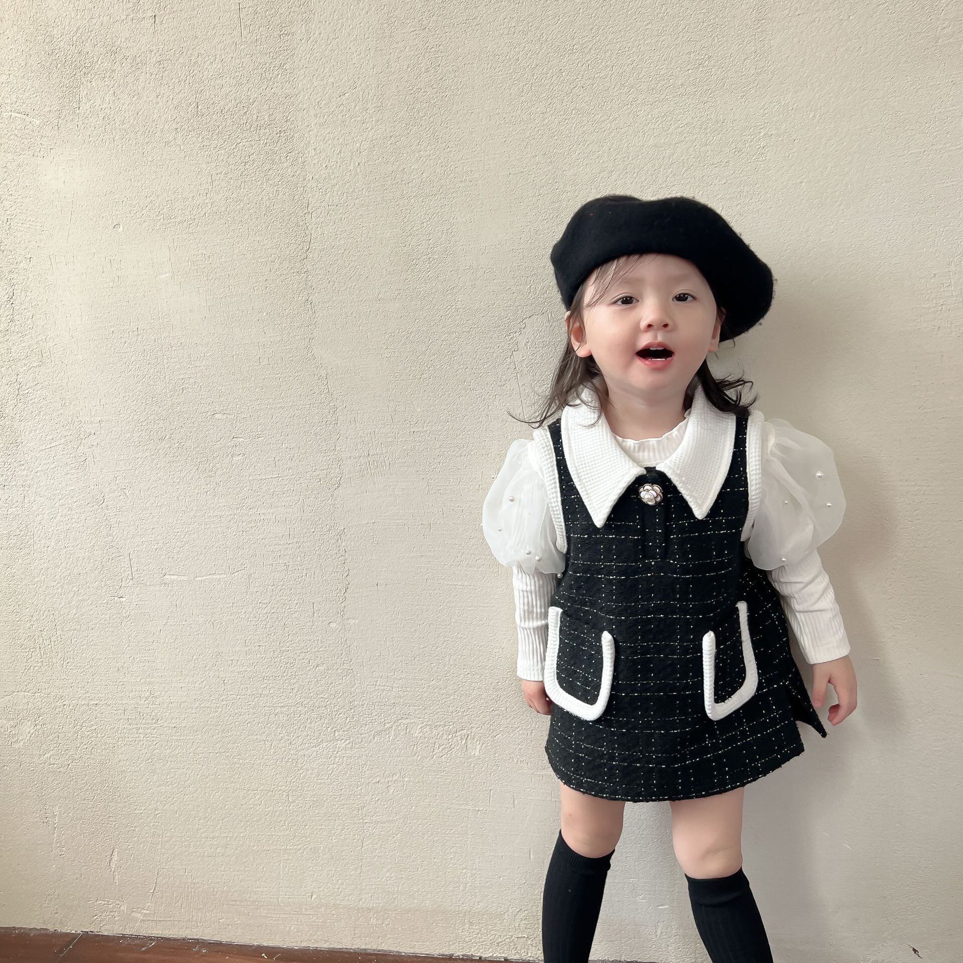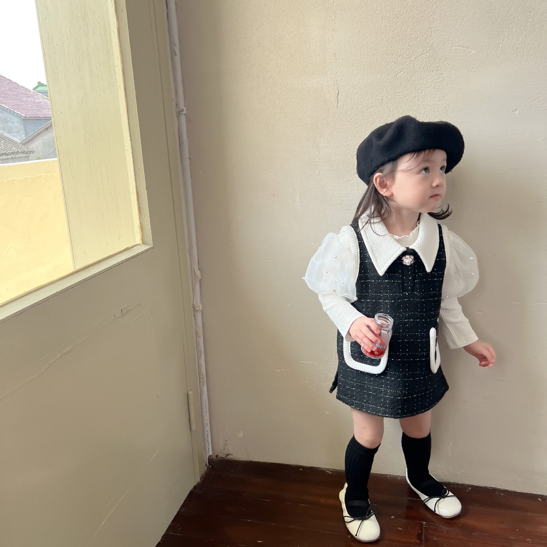 色:小さな香りのベストスカート,パールボトミングシャツ