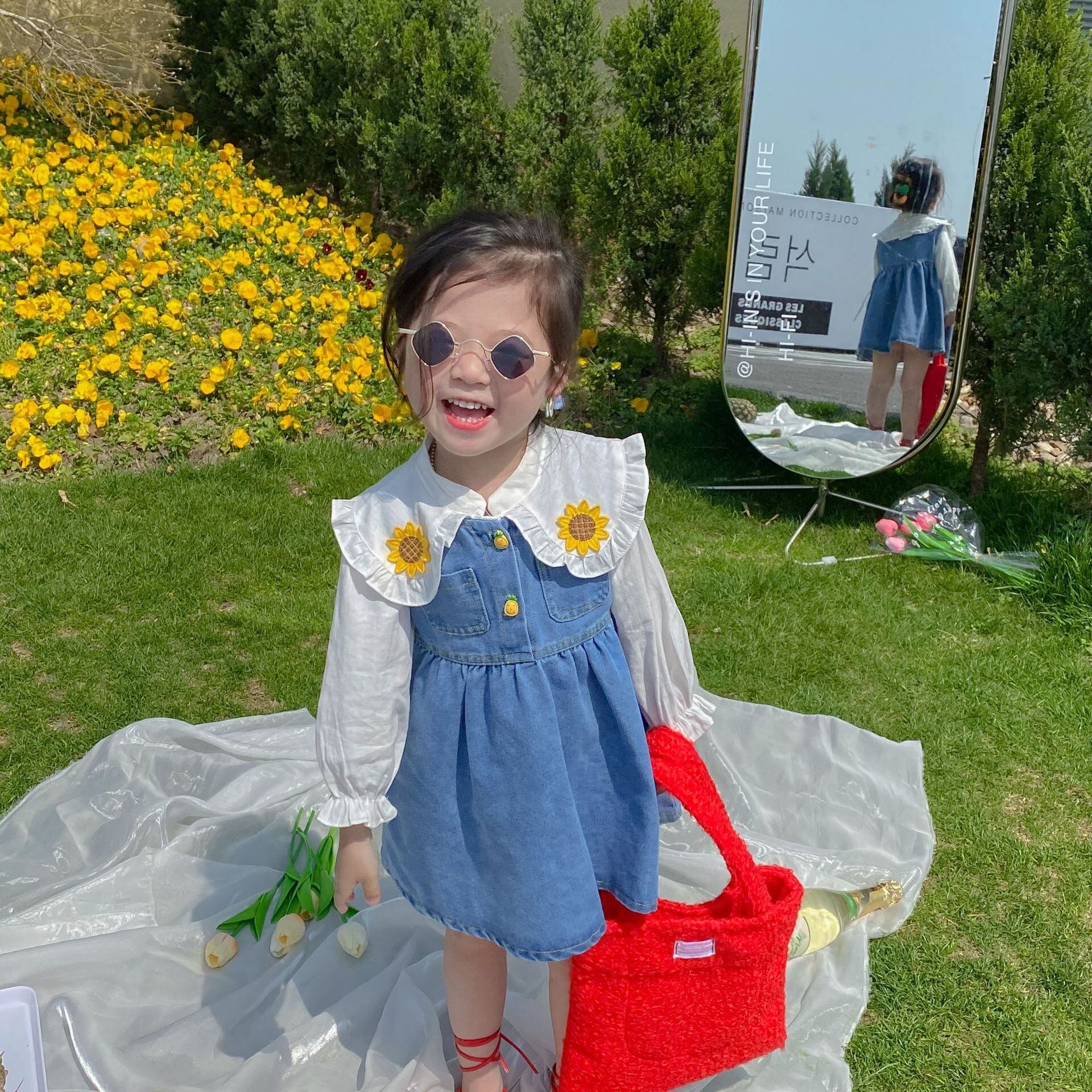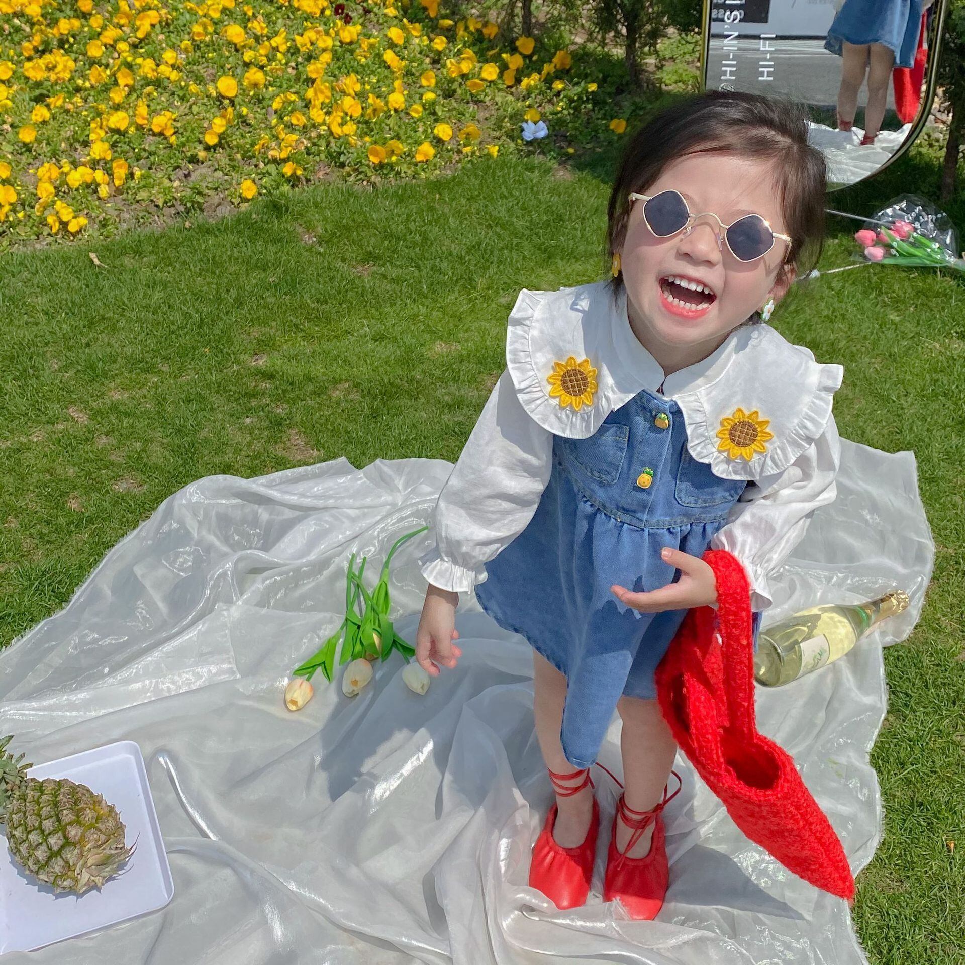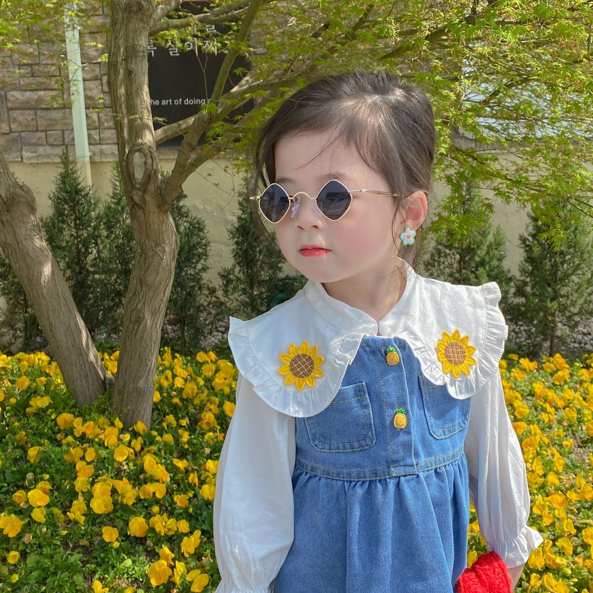 色:ひまわりシャツ,パイナップルボタンデニムスカート