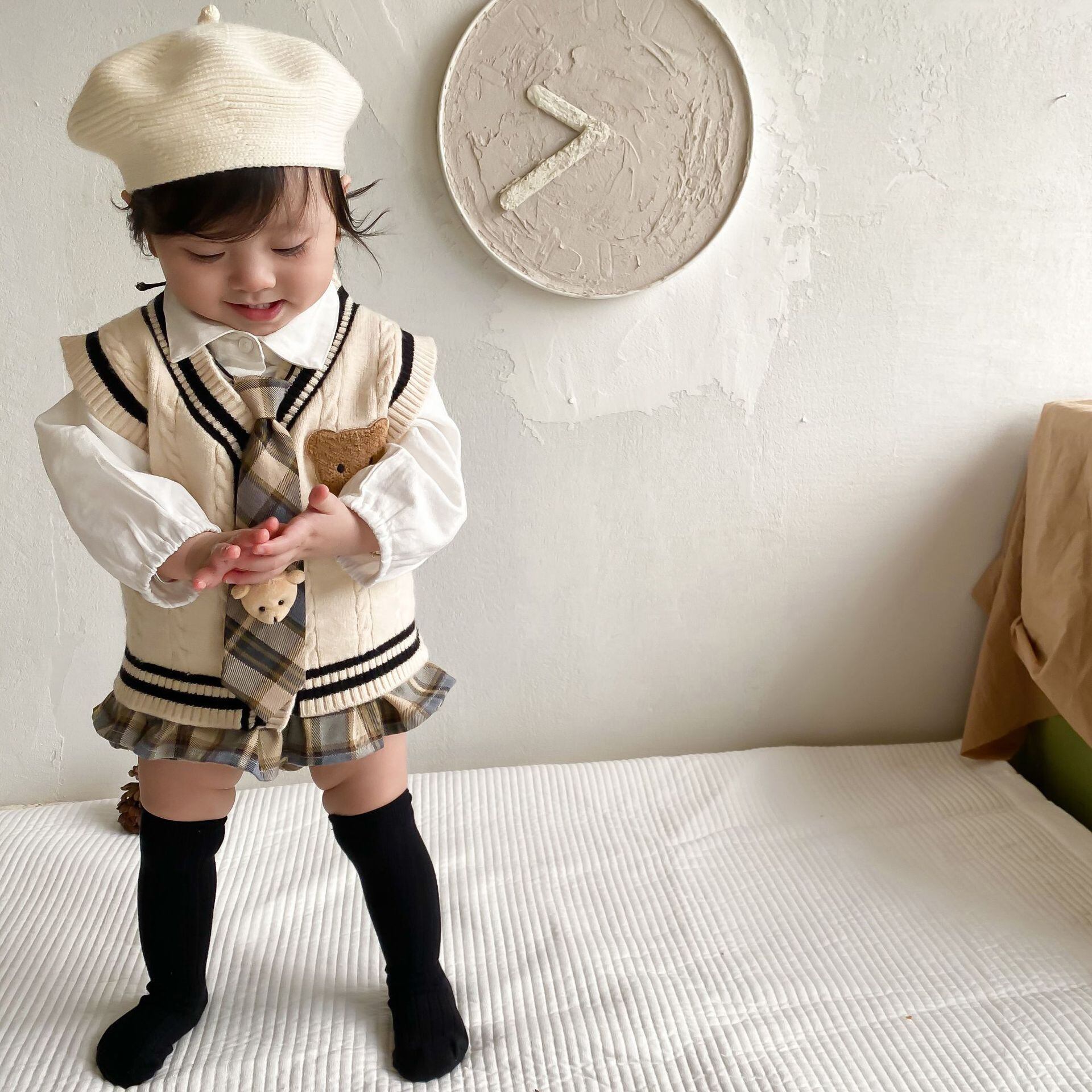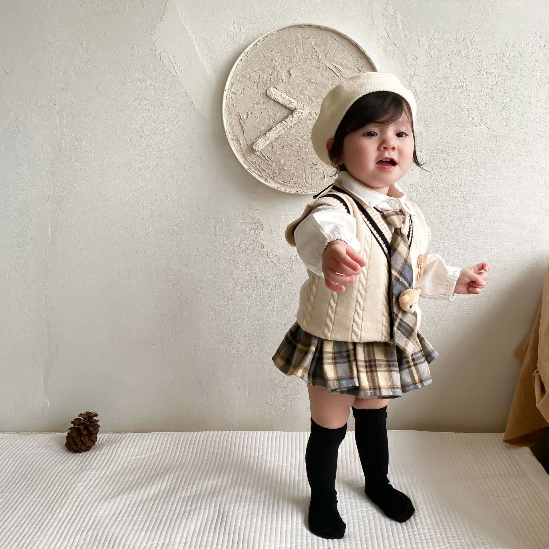 色:チェック柄のスカート+シャツ+蝶ネクタイ,ベアベスト,同じスタイルの帽子,モデルベアネクタイ