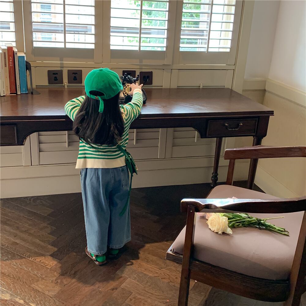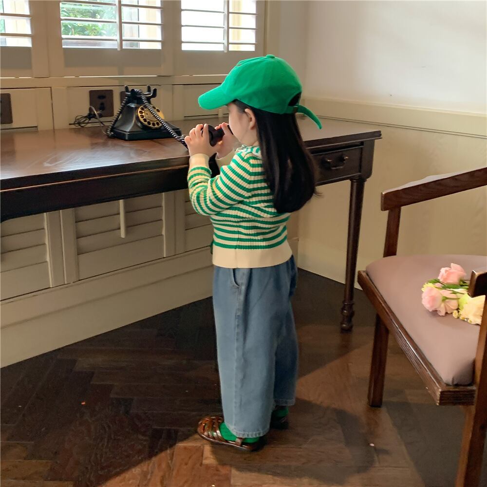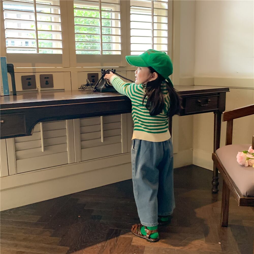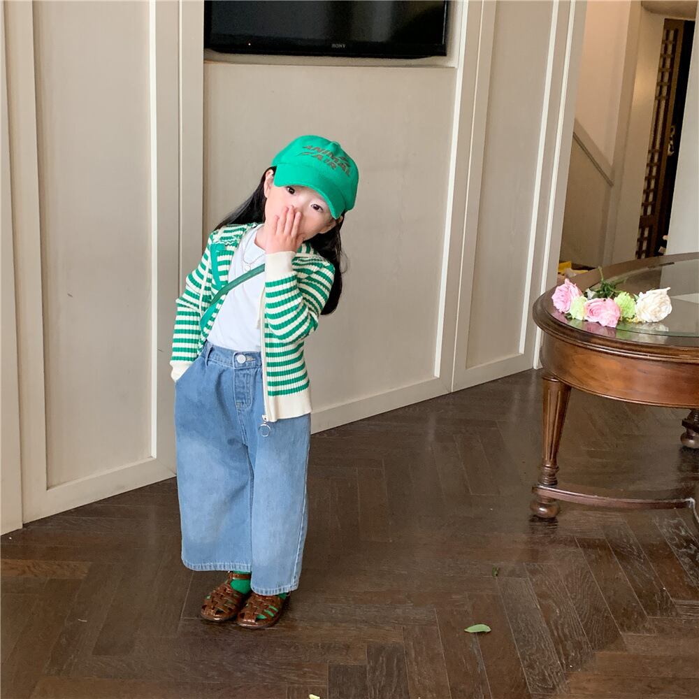 色:グリーンカーディガン,ジーンズ