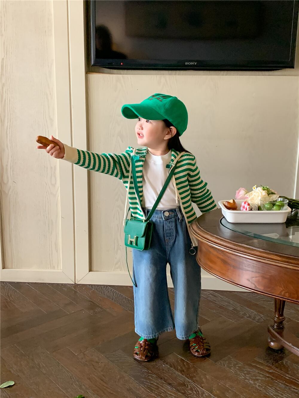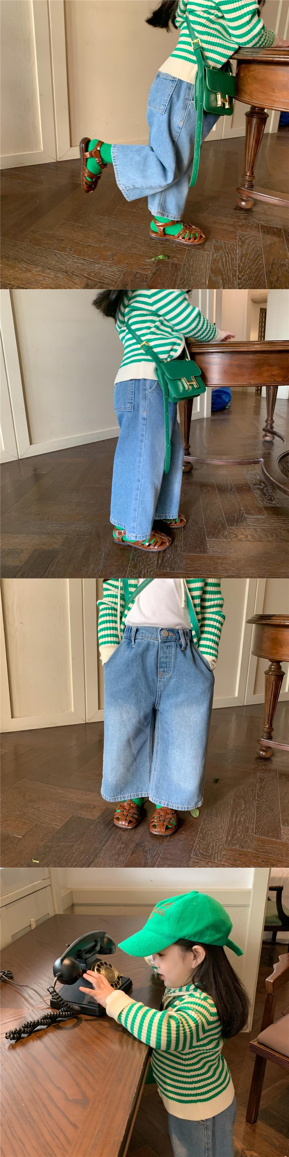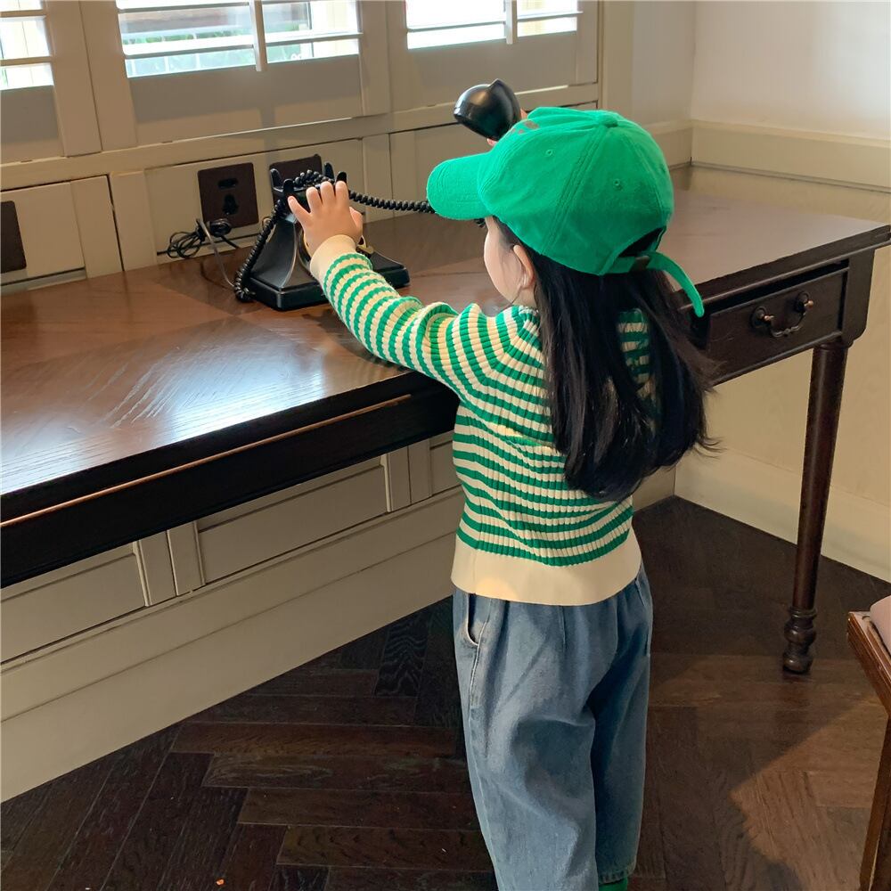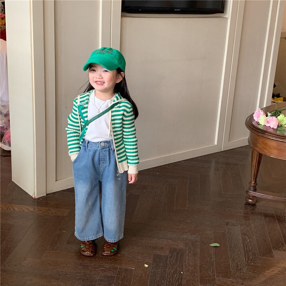 色:グリーンカーディガン,ジーンズ