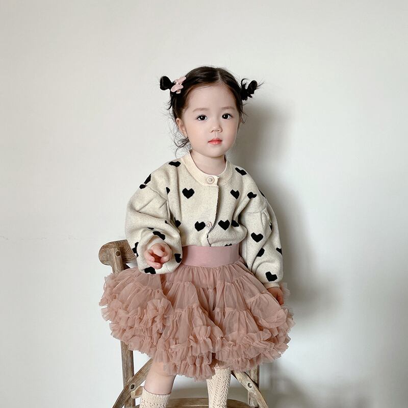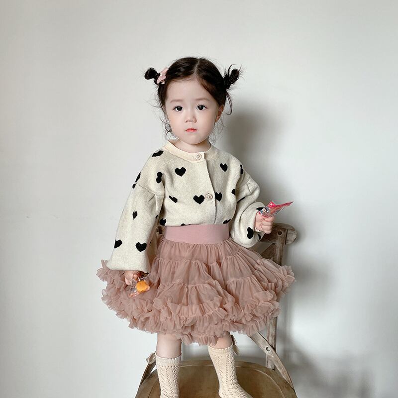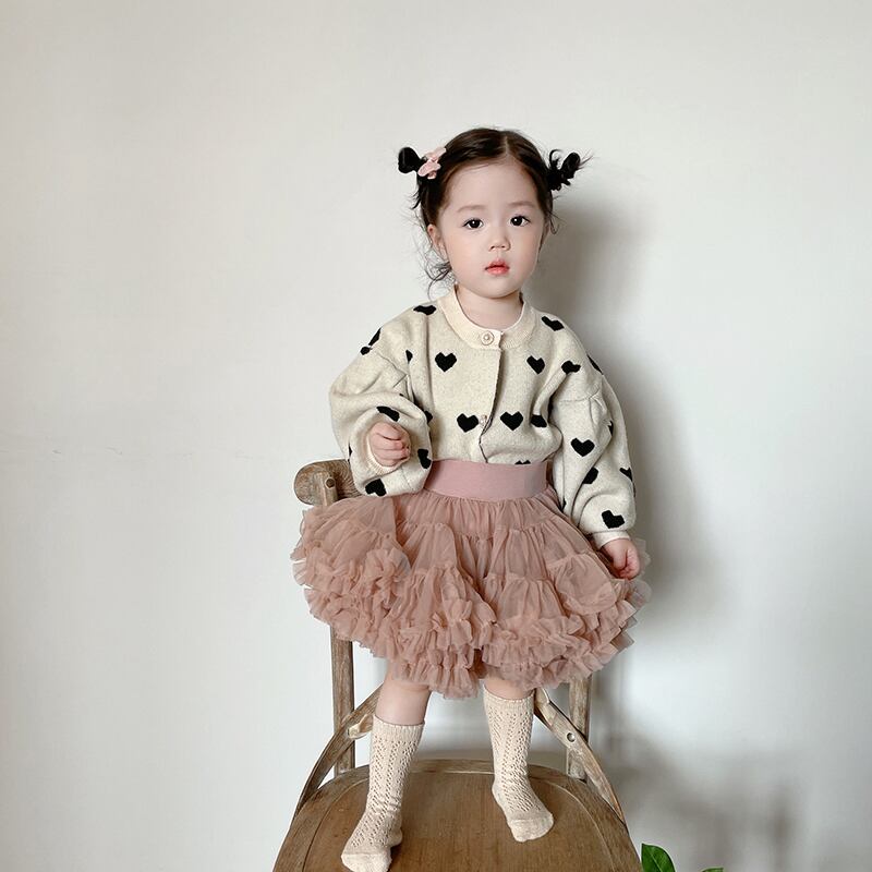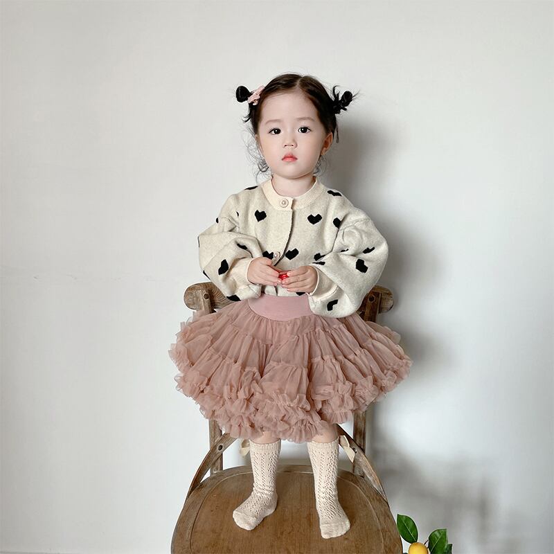 色:ベージュカーディガンルーズフィット,チュチュスカート