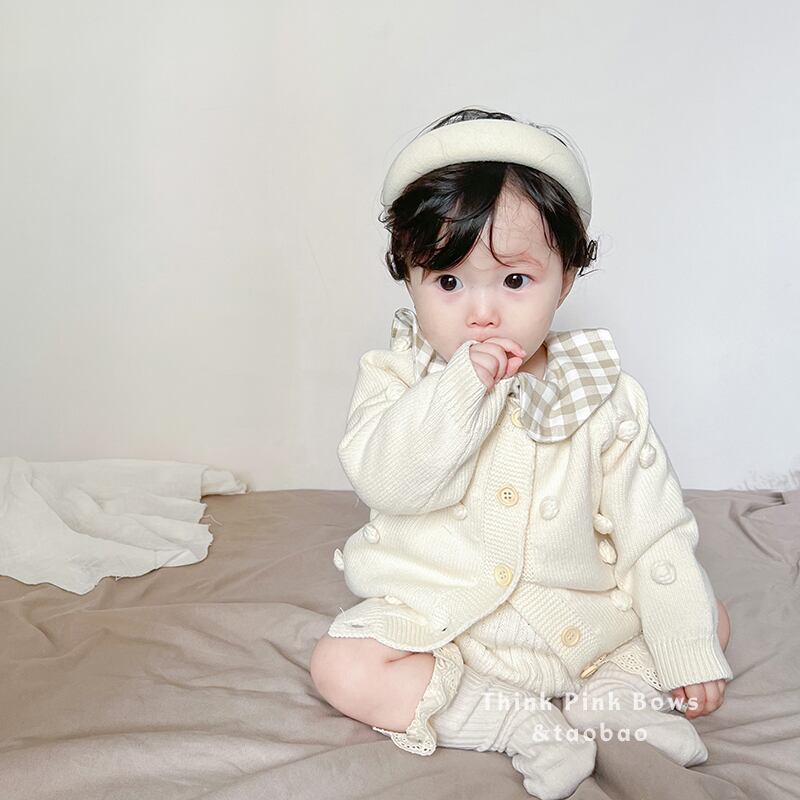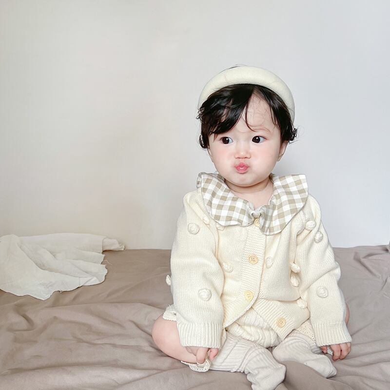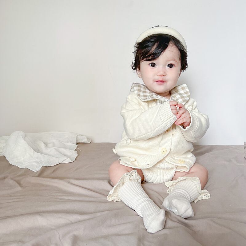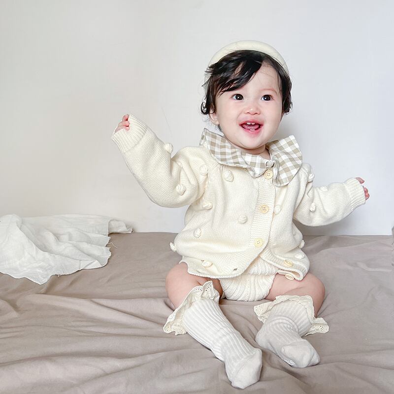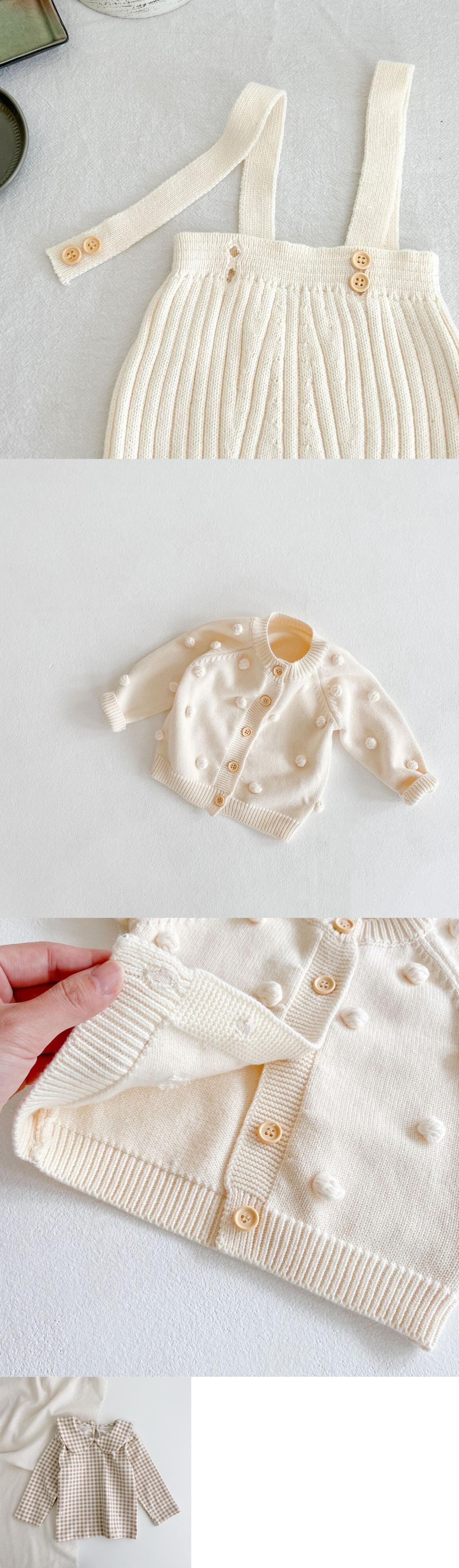 色:ホワイトアプリコットのオーバーオール,グリッド内,ホワイトボールカーディガン