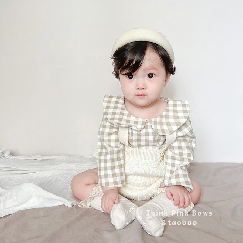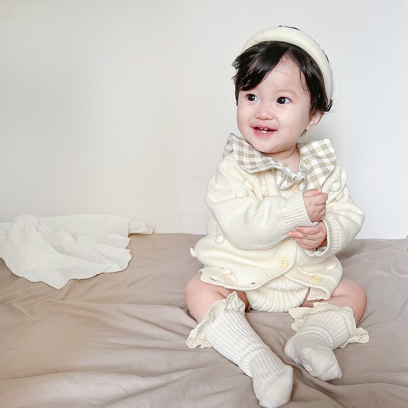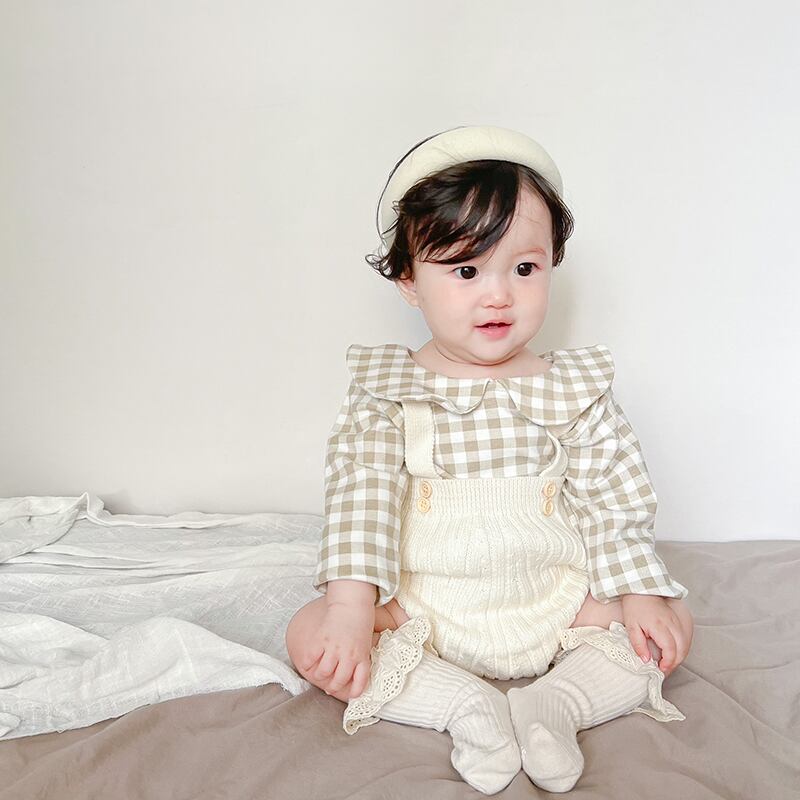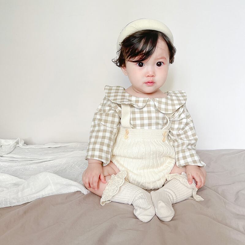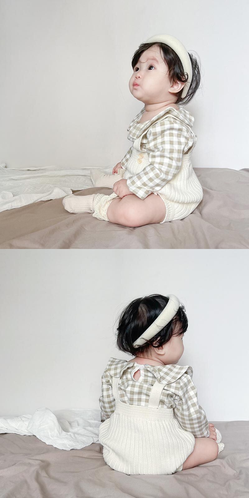 色:ホワイトアプリコットのオーバーオール,グリッド内,ホワイトボールカーディガン