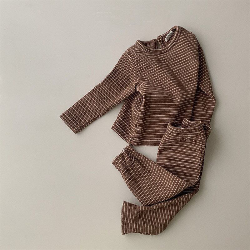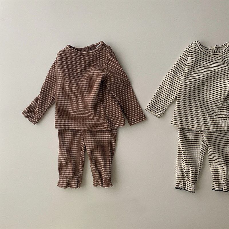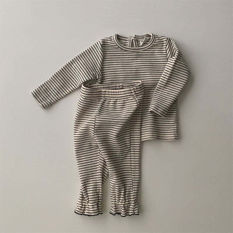 オータムレディースストライプラウンドネックトップス ハイウェストウェストパンツ 秋物 Oネック 5/17 春夏 SS mi0941388149848 | Sagittarius By Constellation -KIDS&BABY-