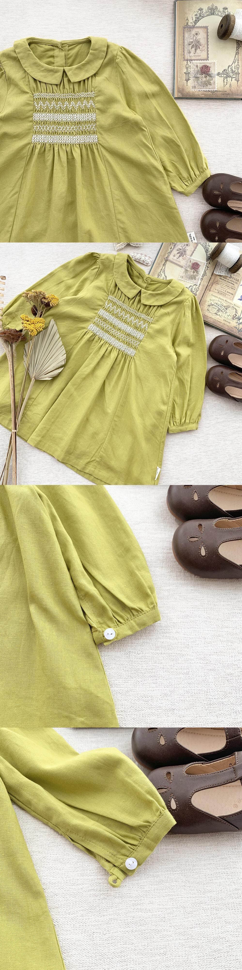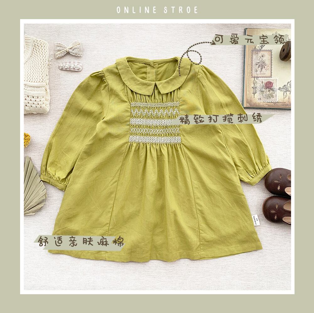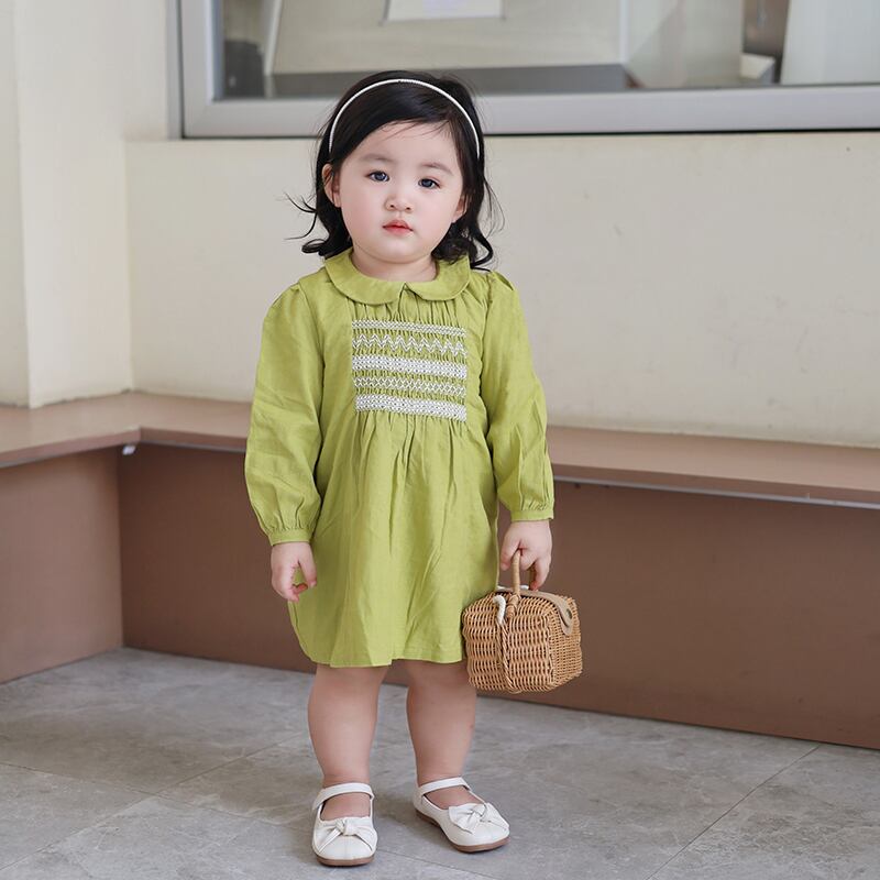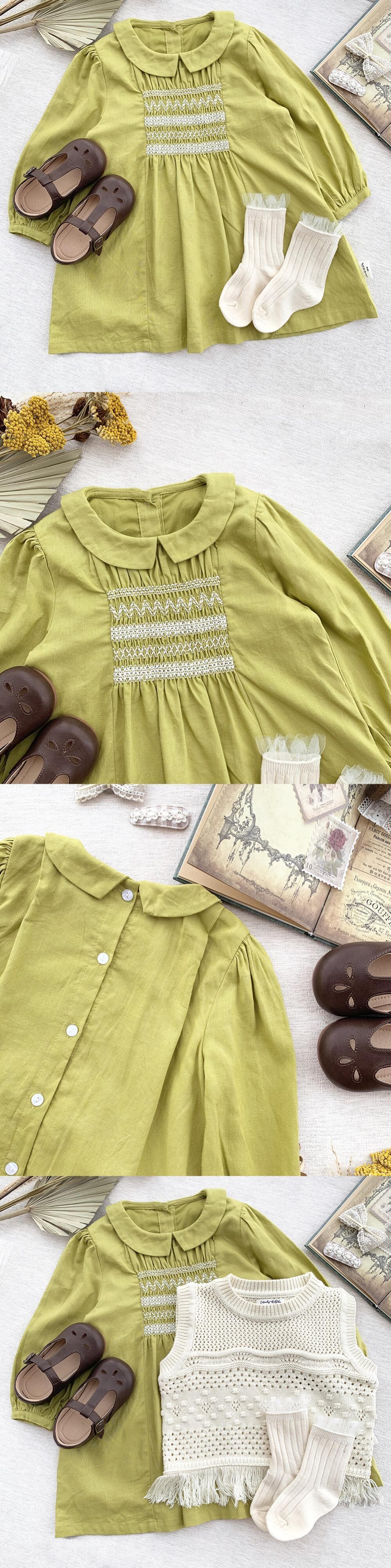 色:黄緑色のドレス,ホワイトニットベスト