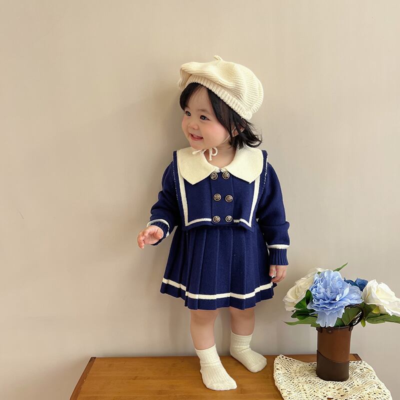 レッドオータムネイビードレス スタイルプリーツスカート ニット 秋物 5/17 春夏 SS mi0924477554328 | Sagittarius By Constellation -KIDS&BABY-