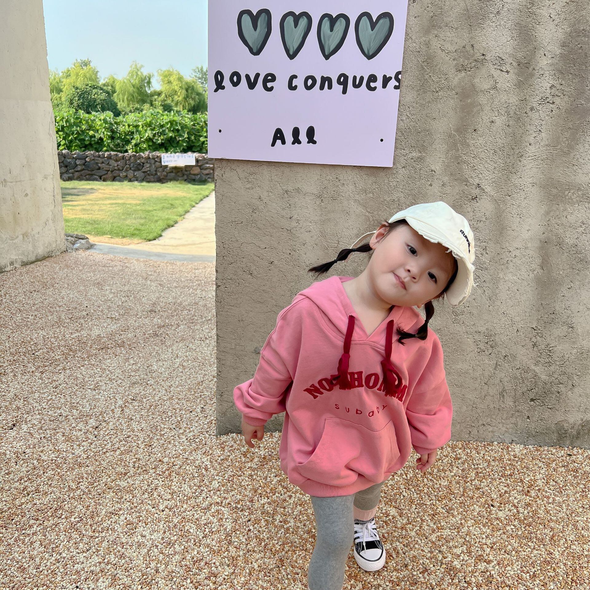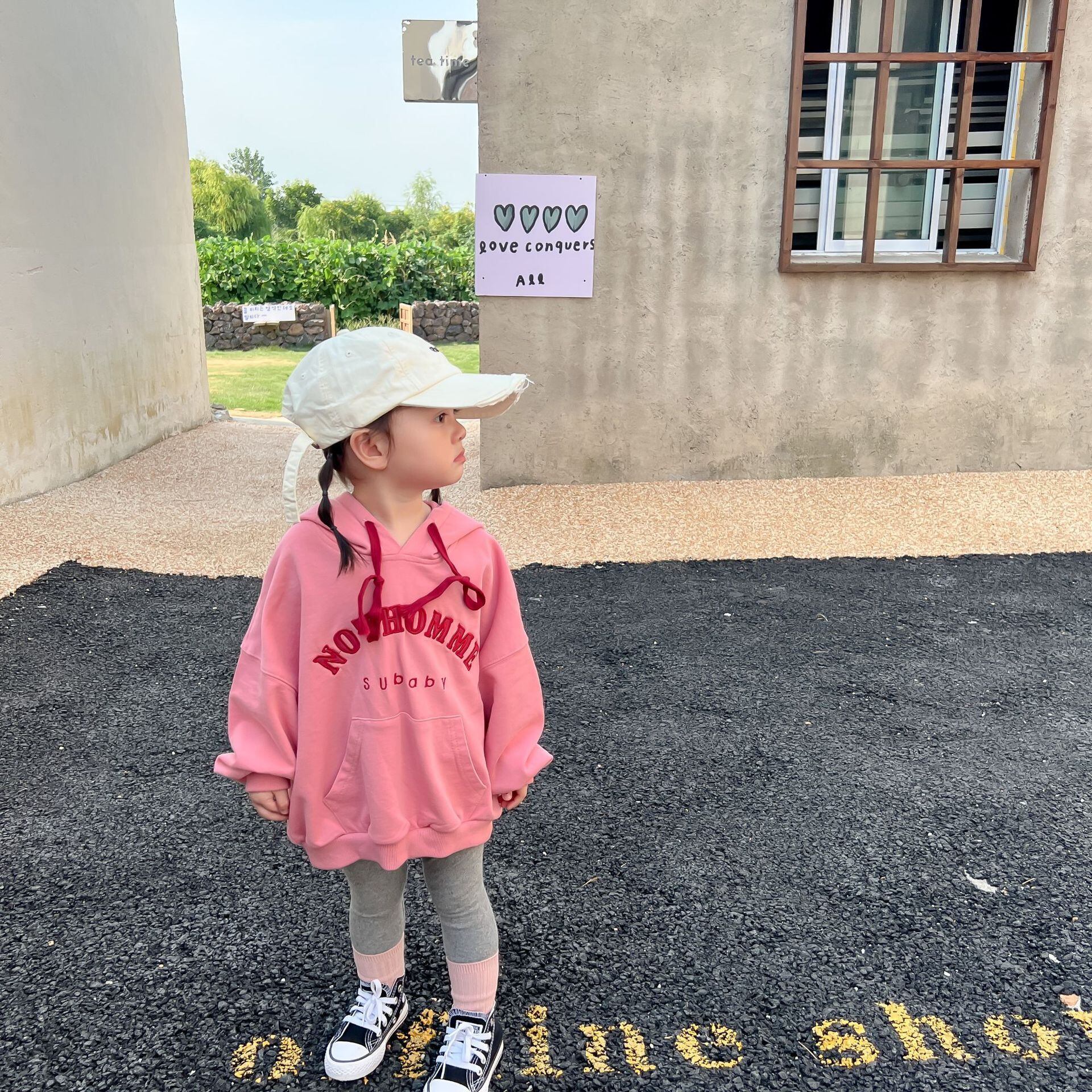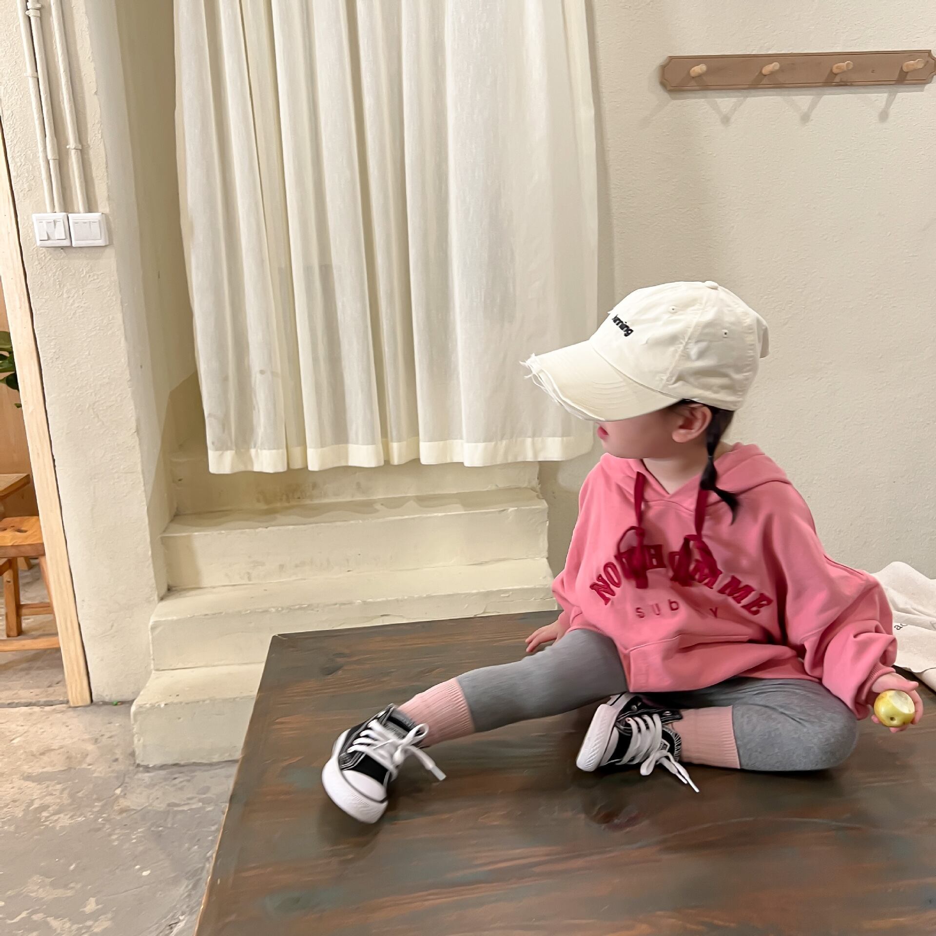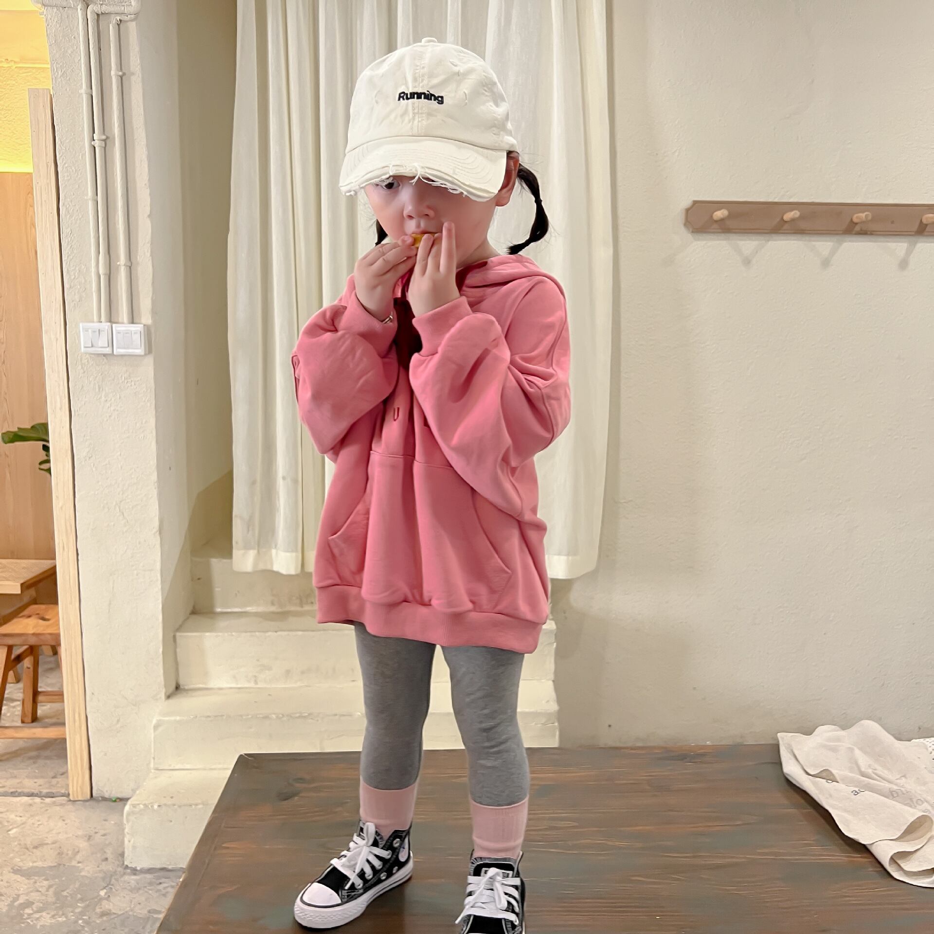 色:ピンクのセーター,グレーのレギンス