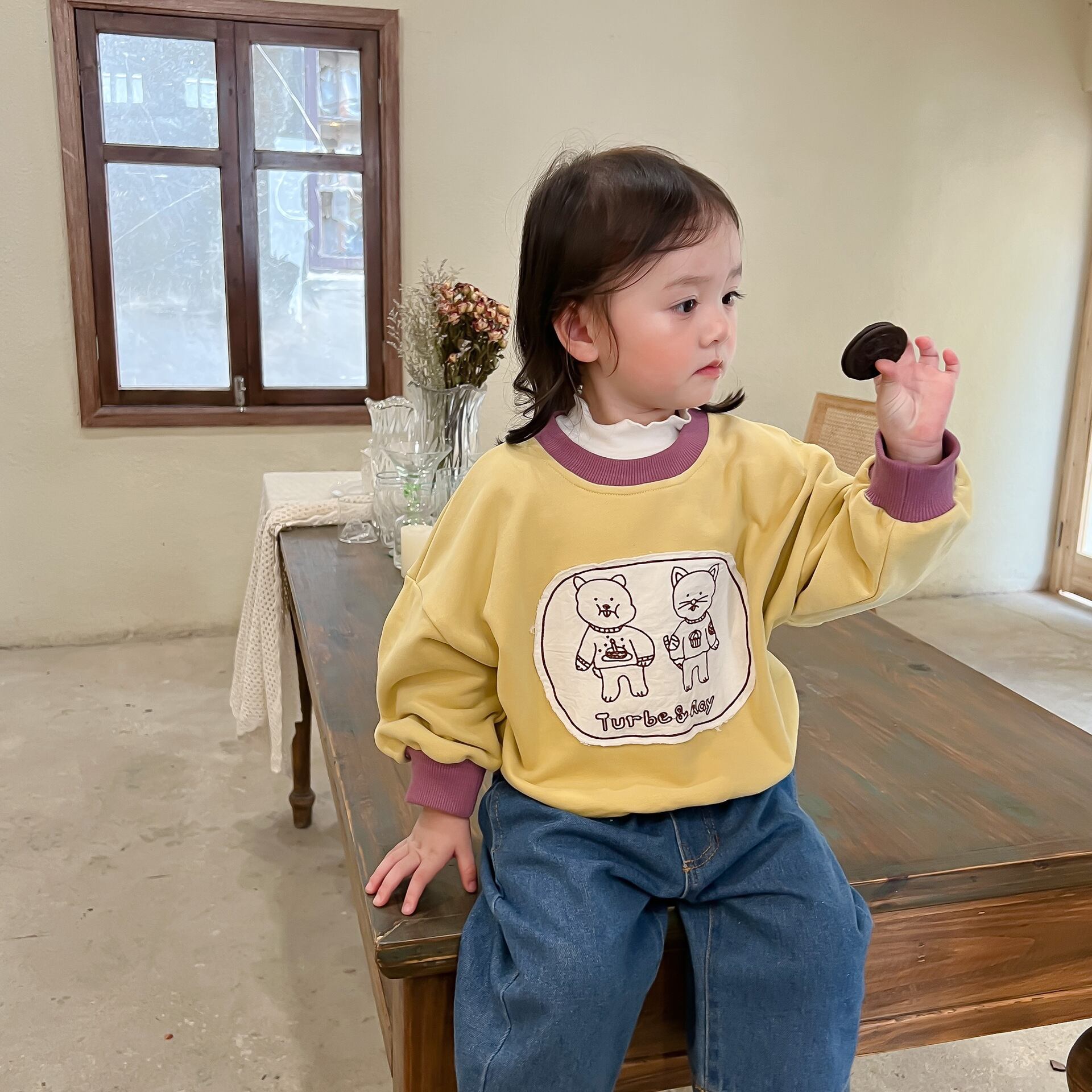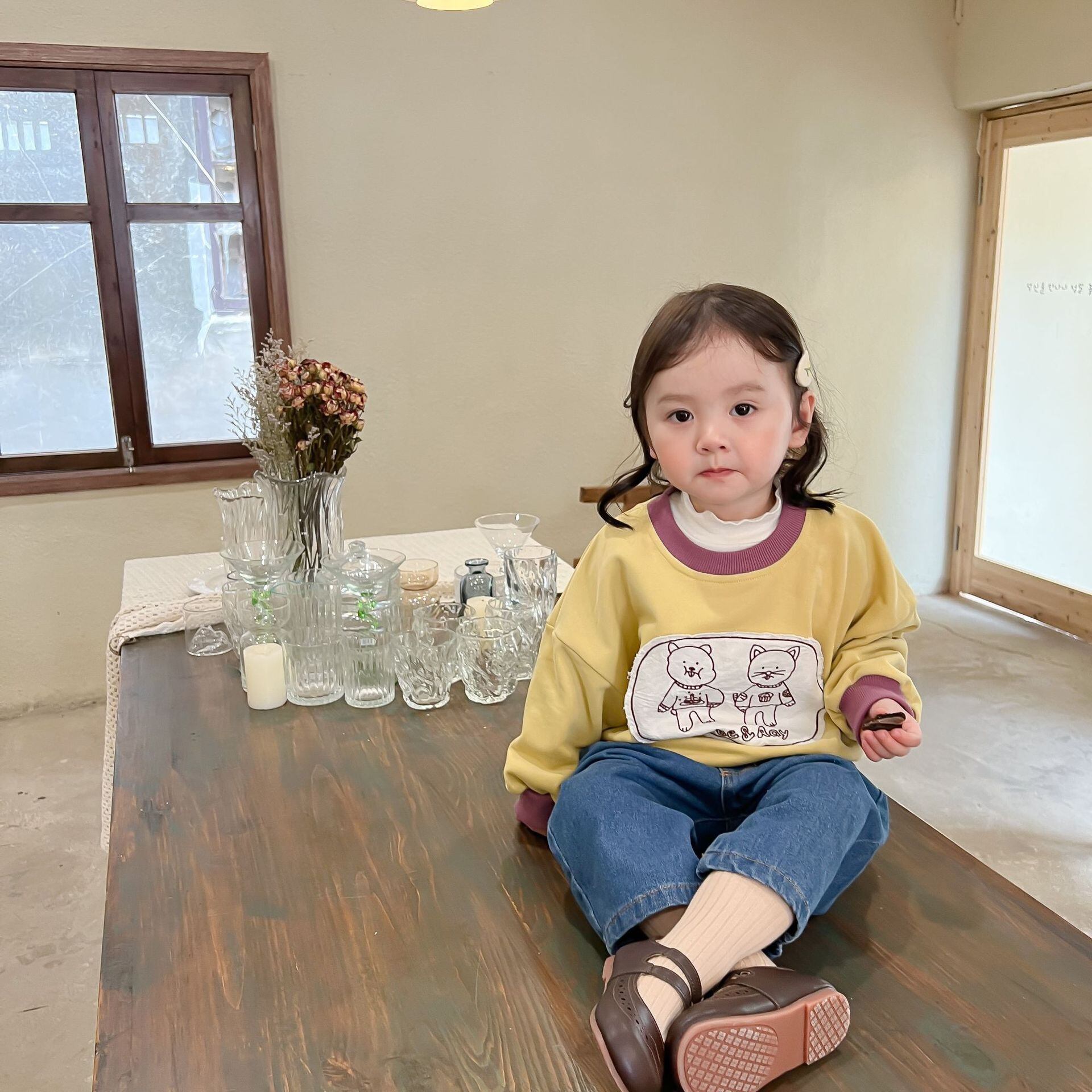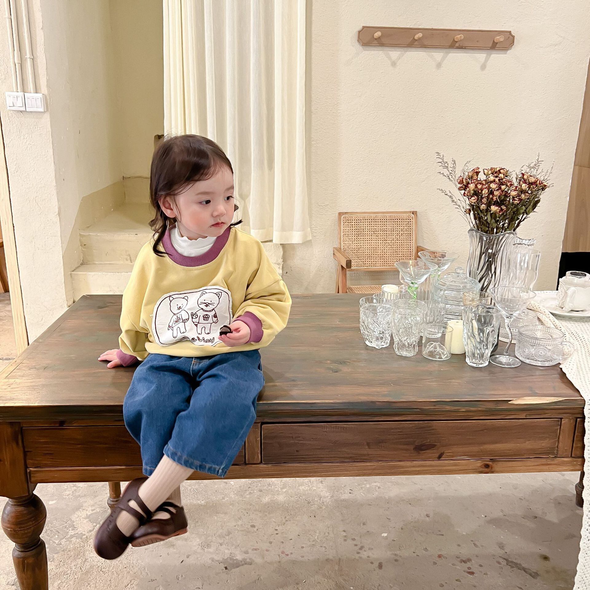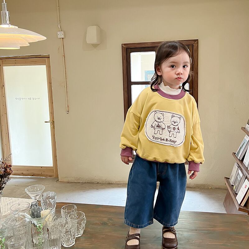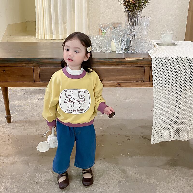 色:子猫のセーター,ブルージーンズ