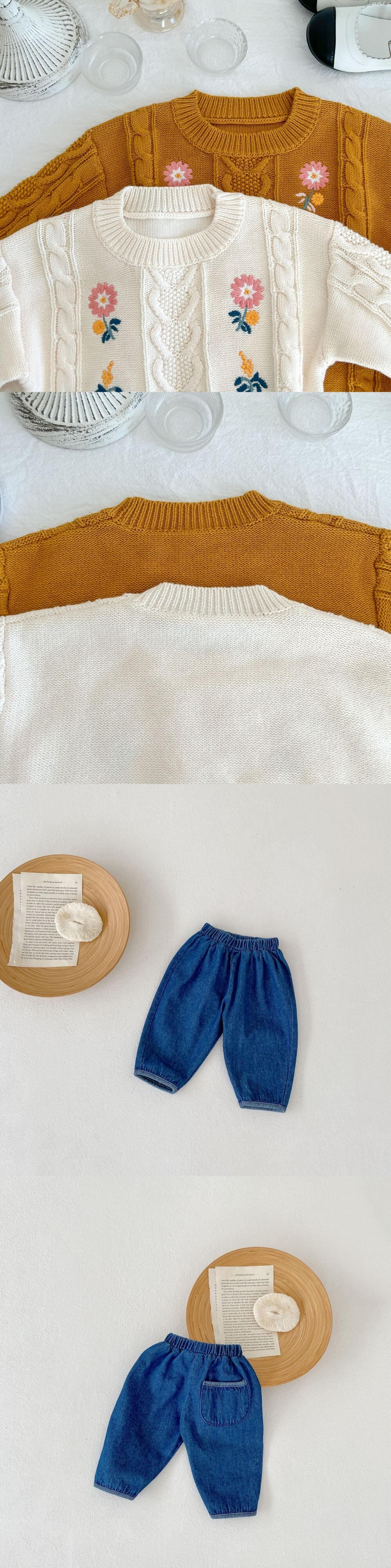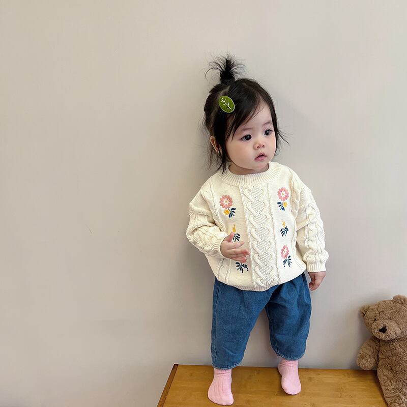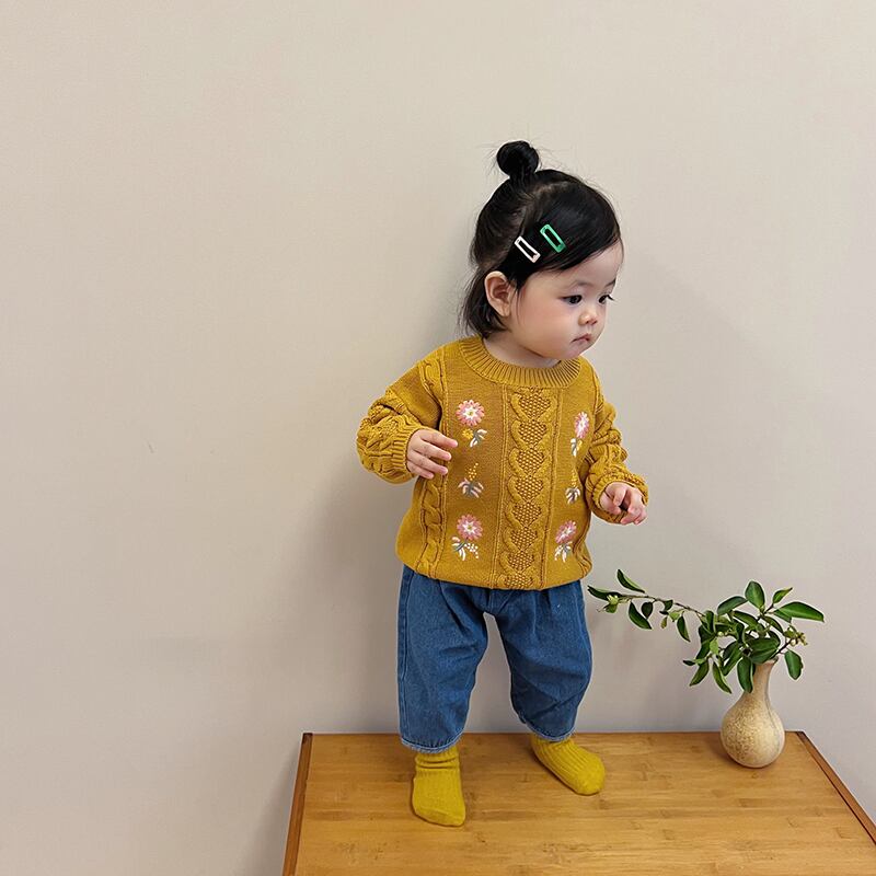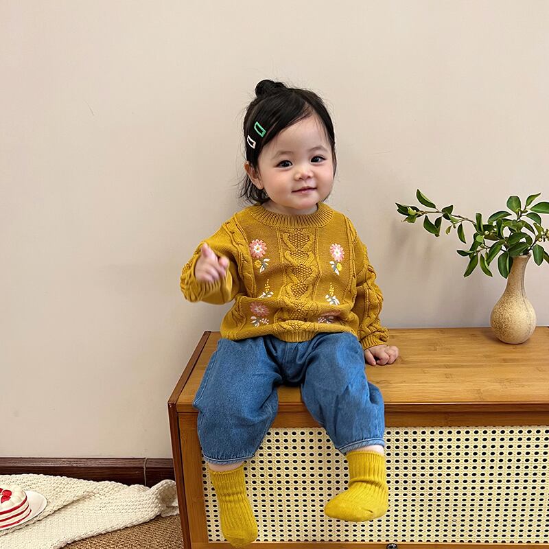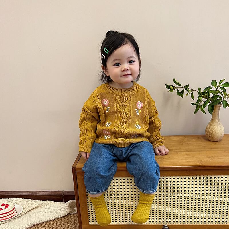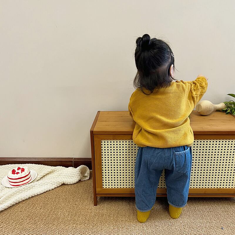 色:ホワイトアプリコットセーター,ヴィンテージイエローセーター,ジーンズ