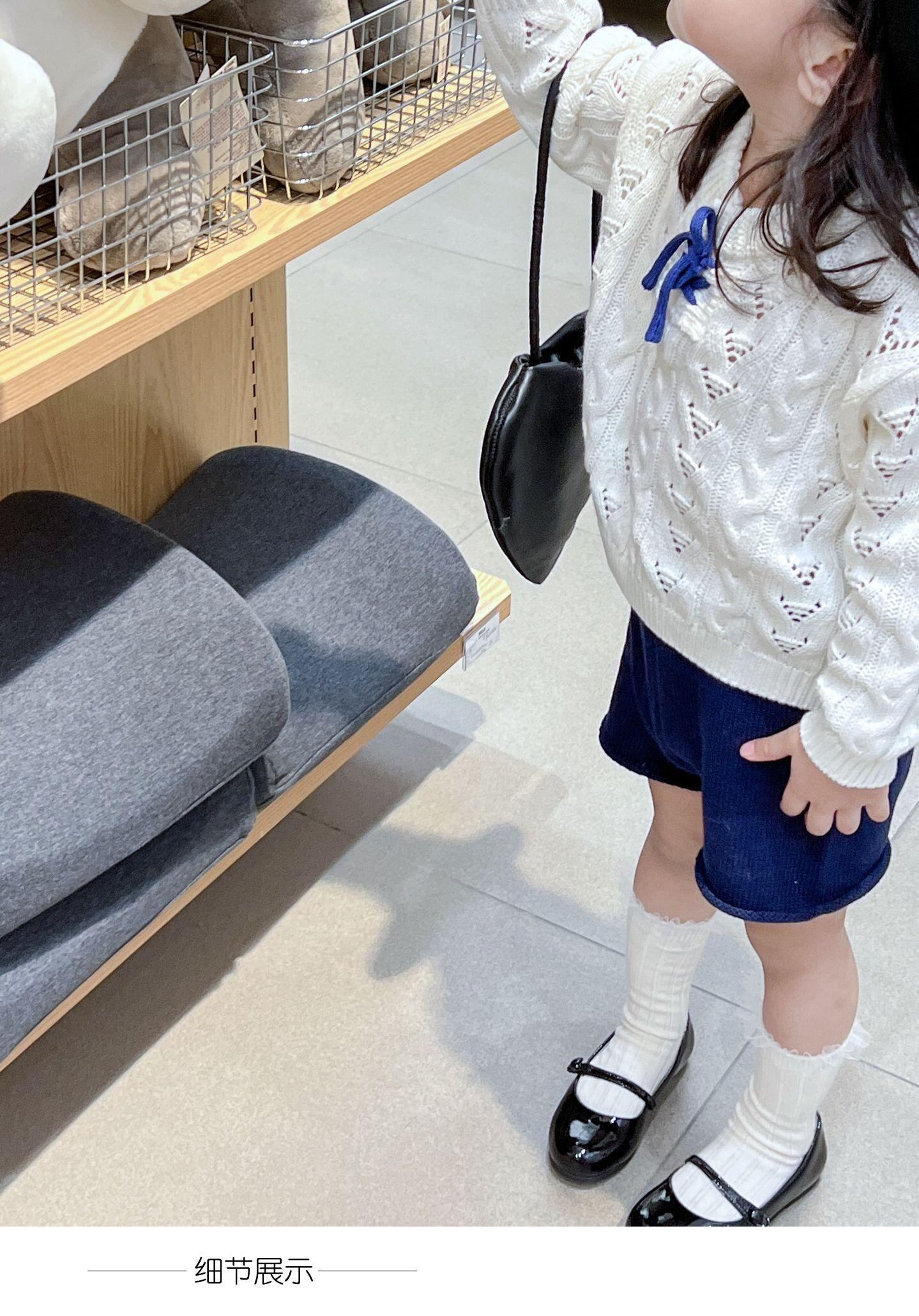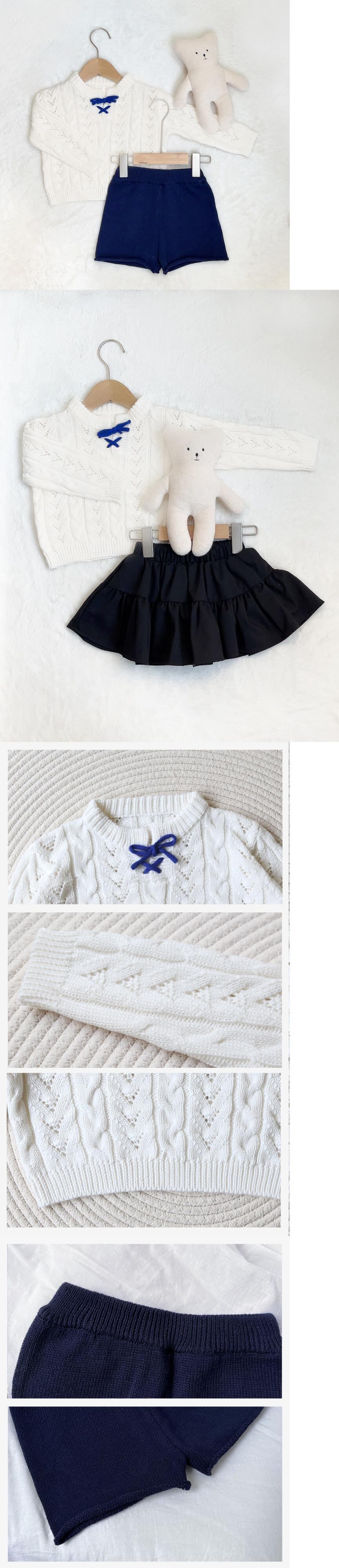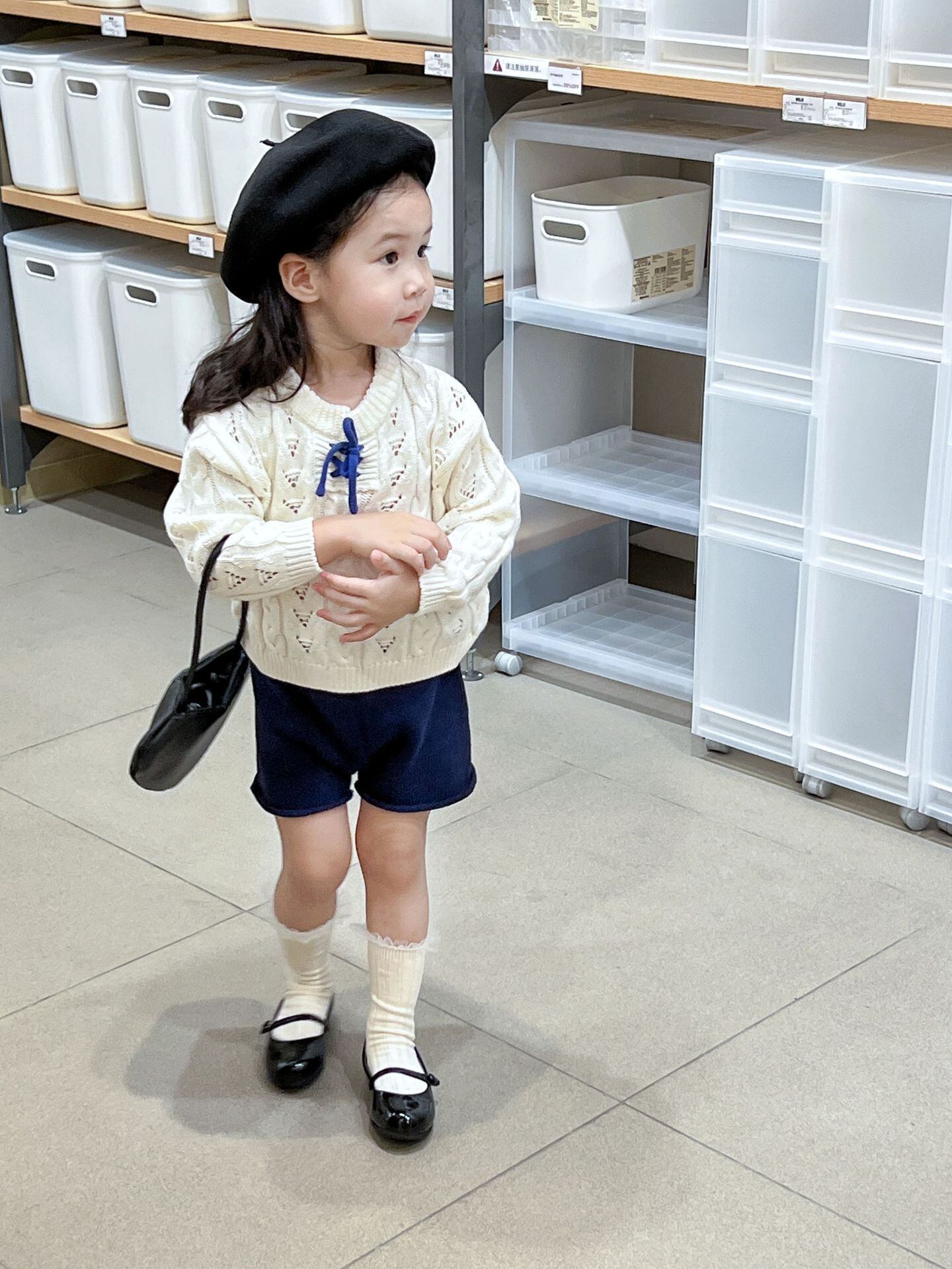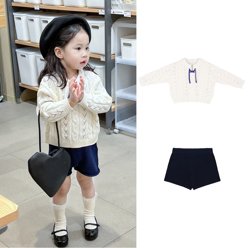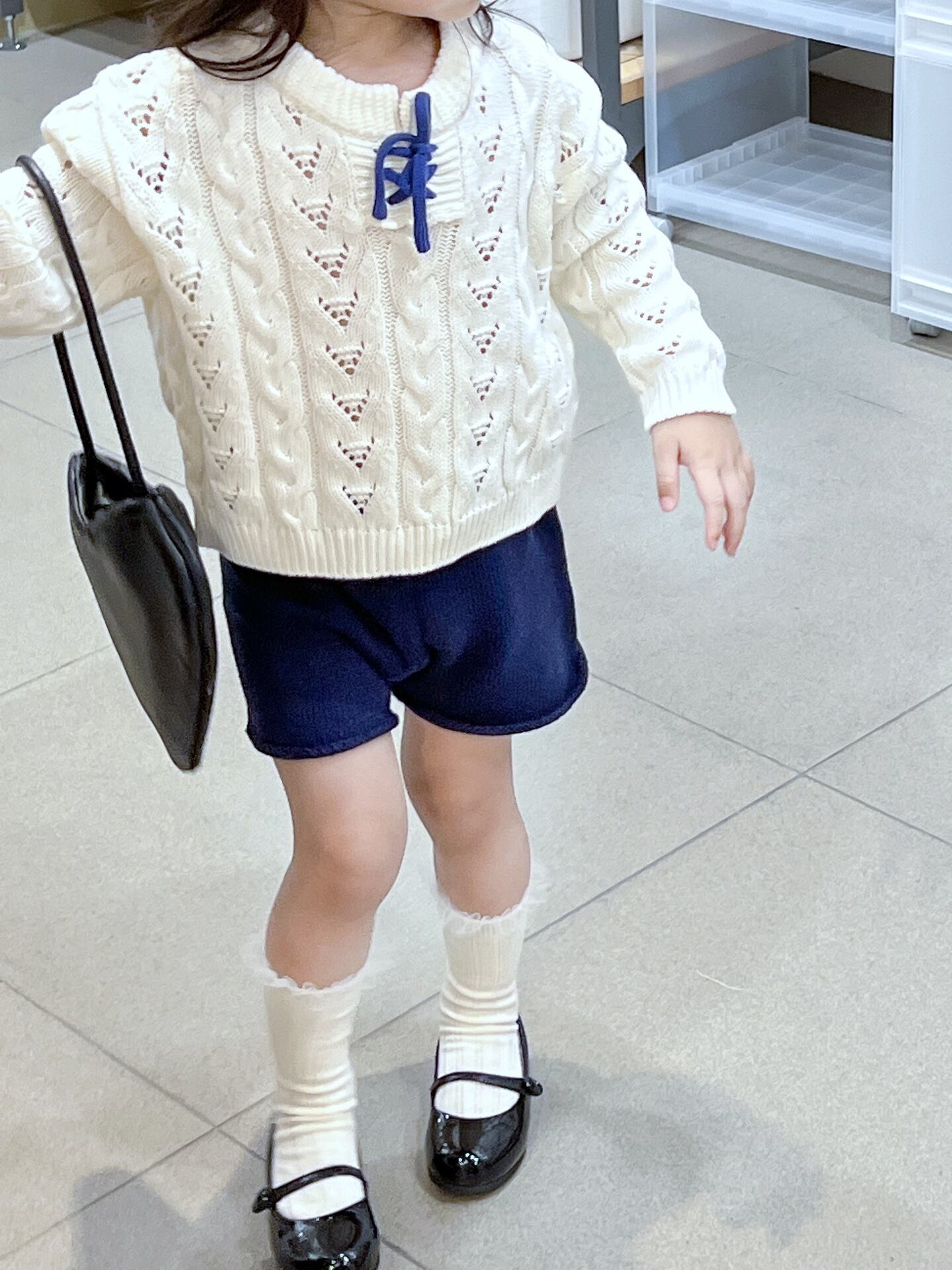 色:レースアップセーター,ネイビーブルーショーツ