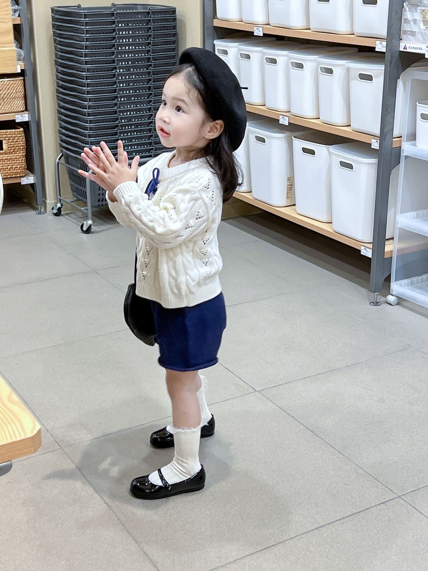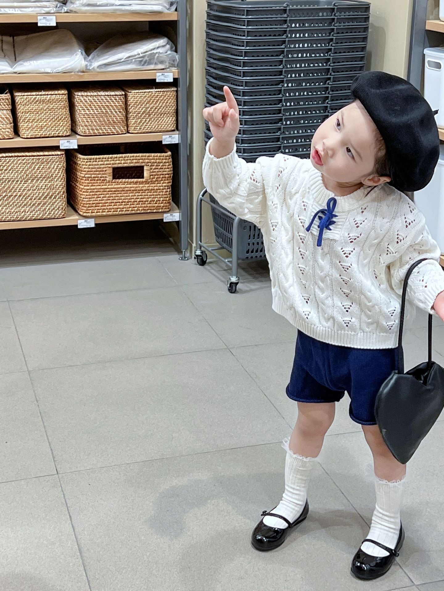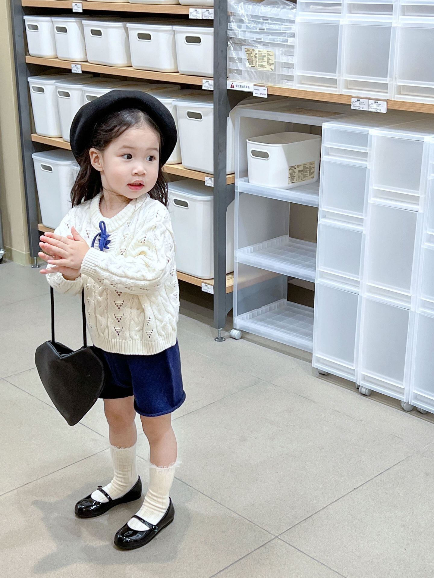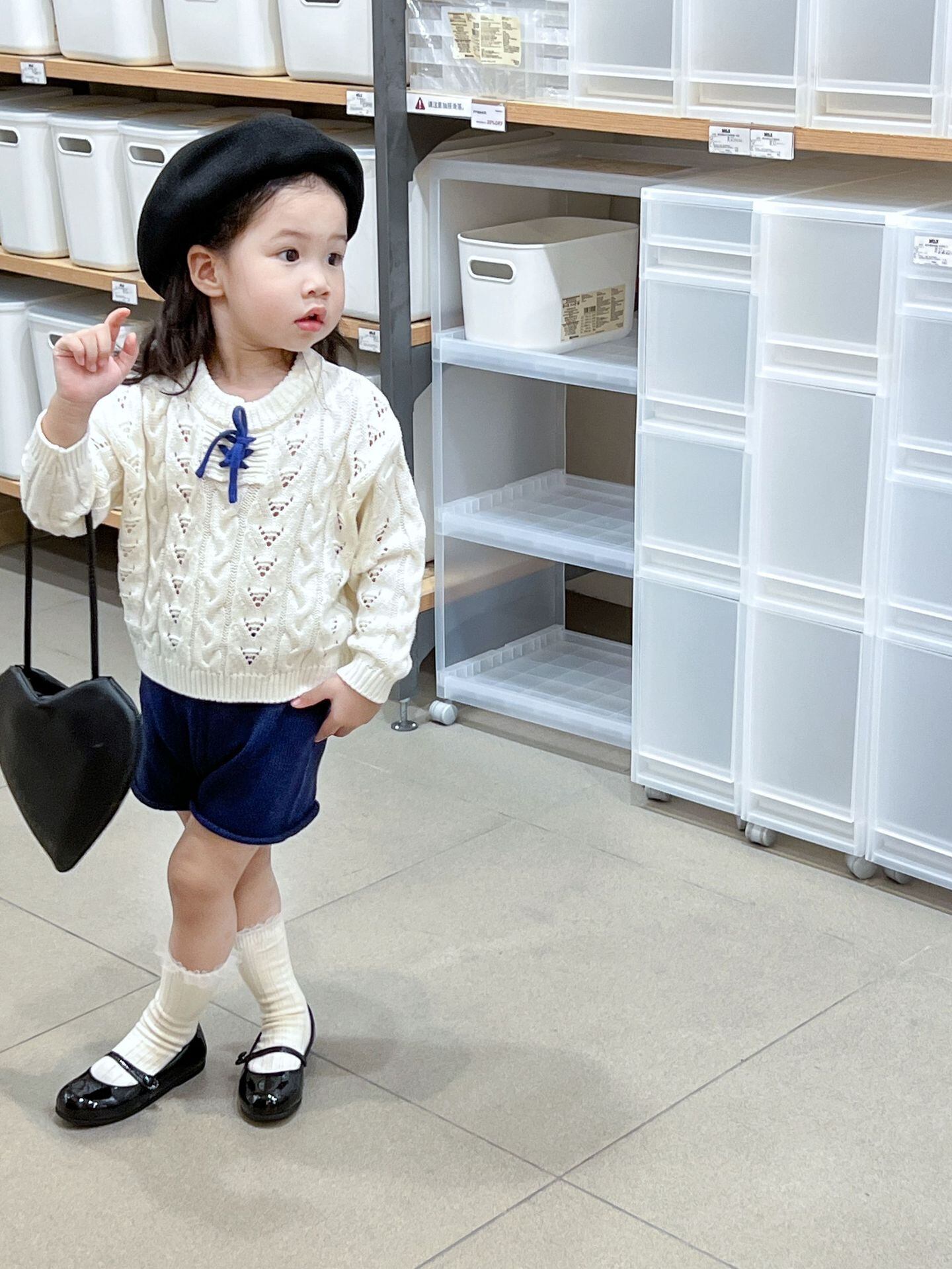 色:レースアップセーター,ネイビーブルーショーツ