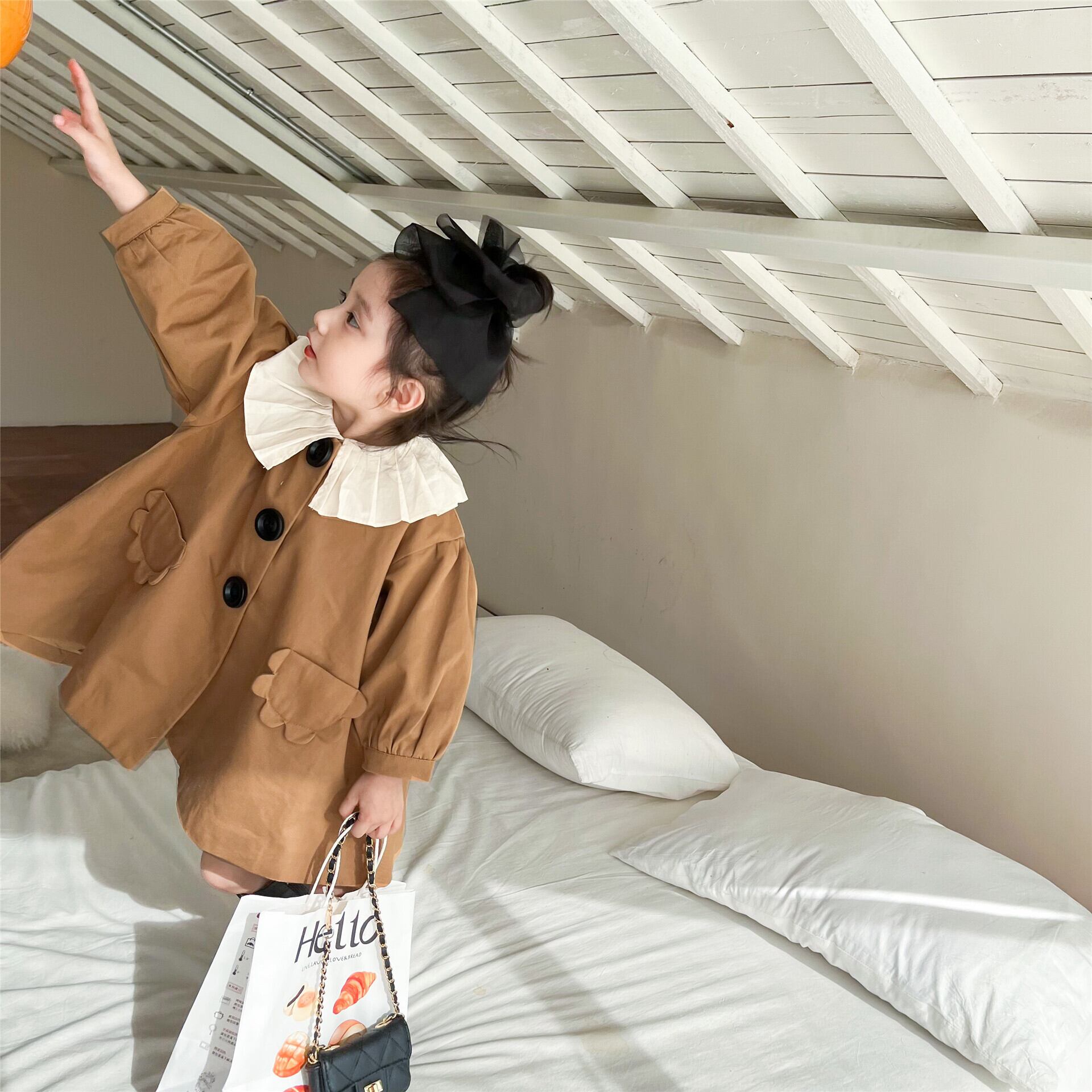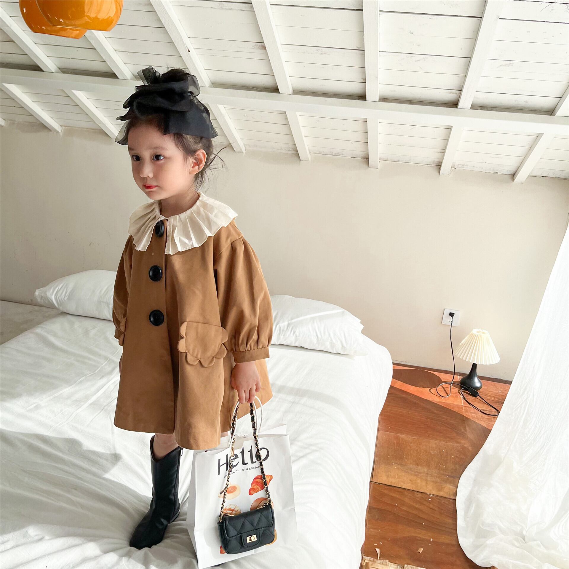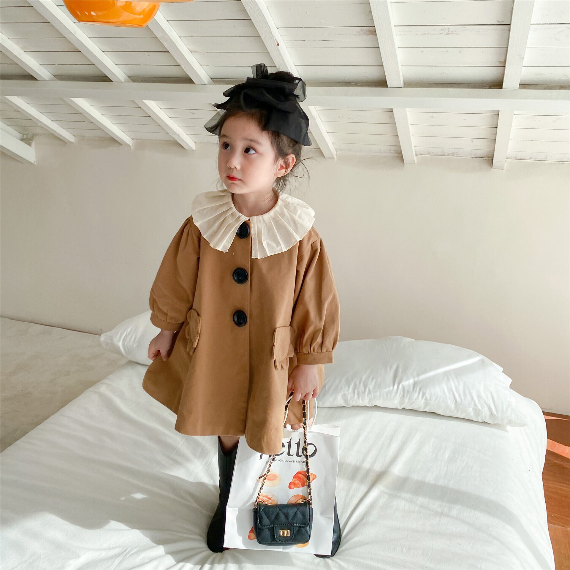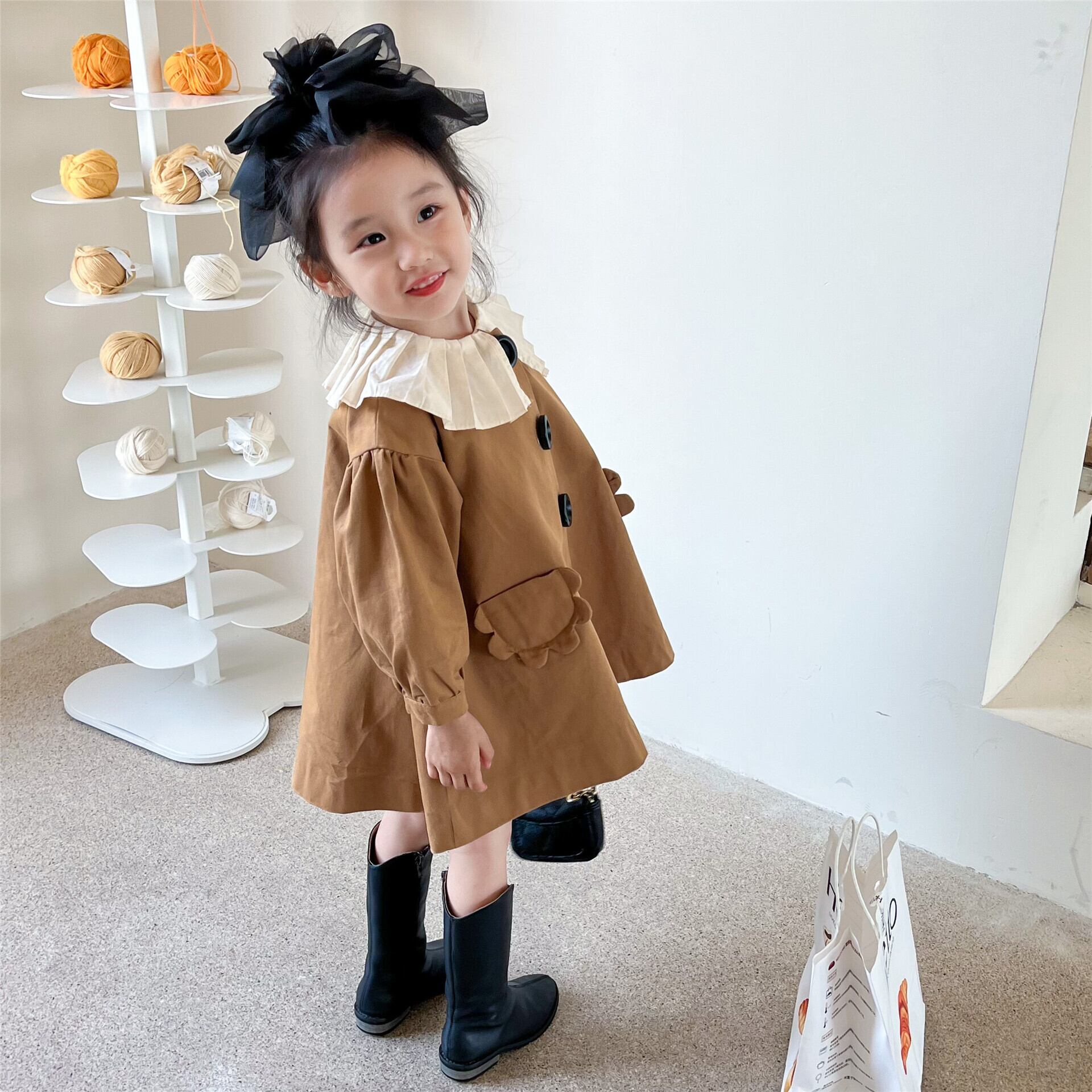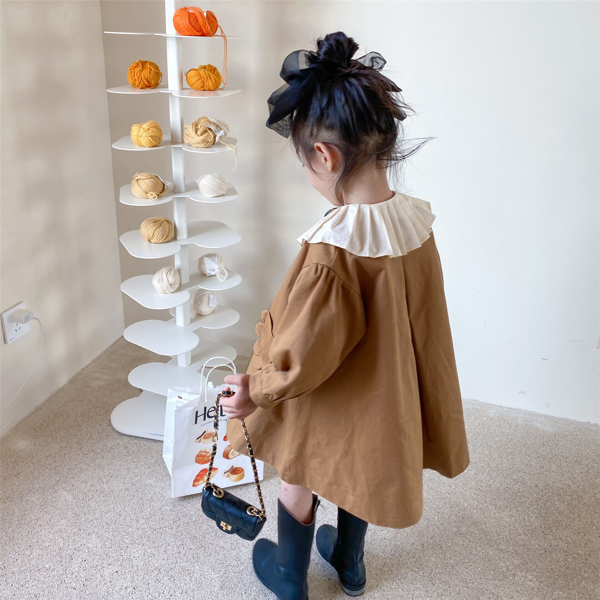 色:ブラウン(インナーなし),モデルオルガンネックシャツ