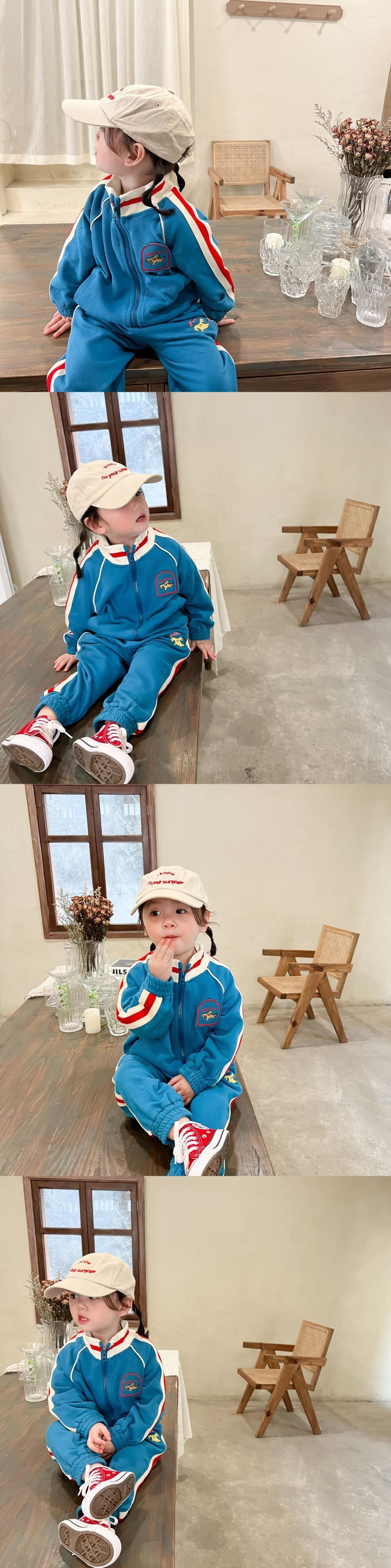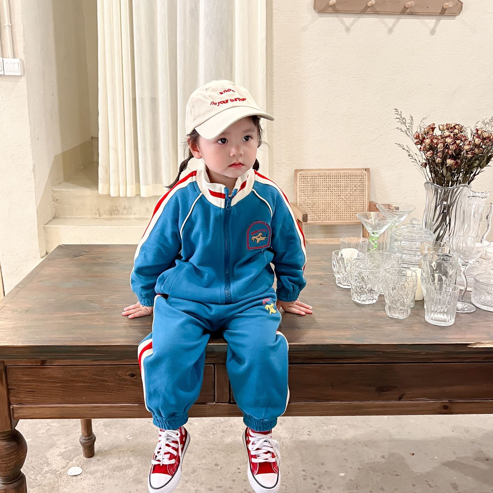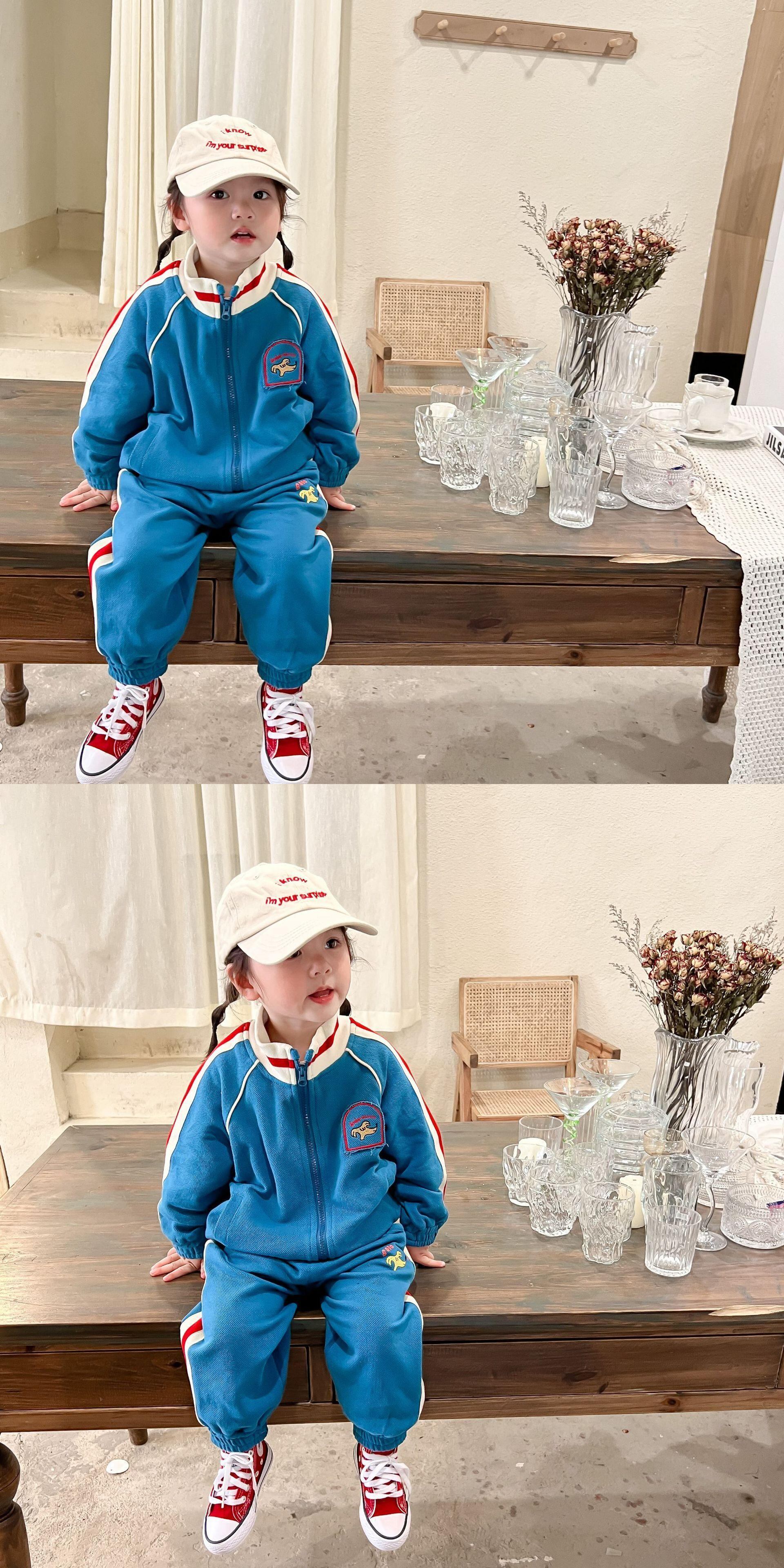色:青いスーツ