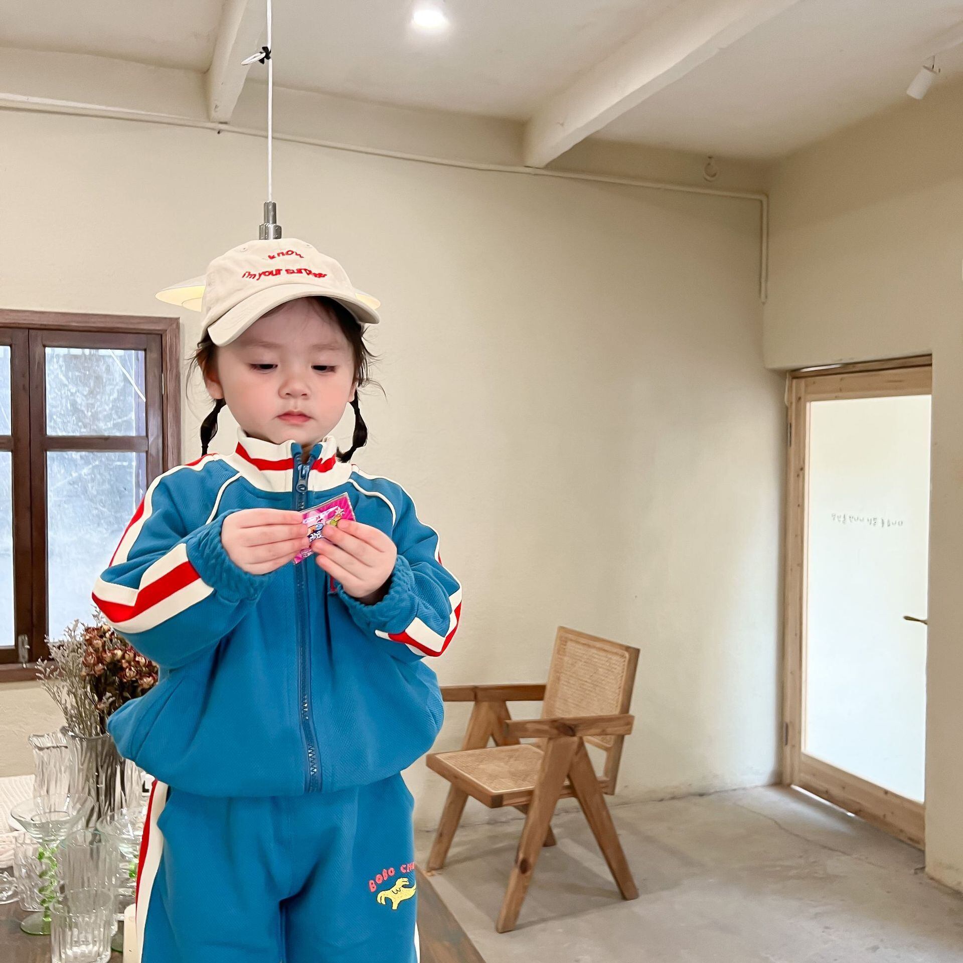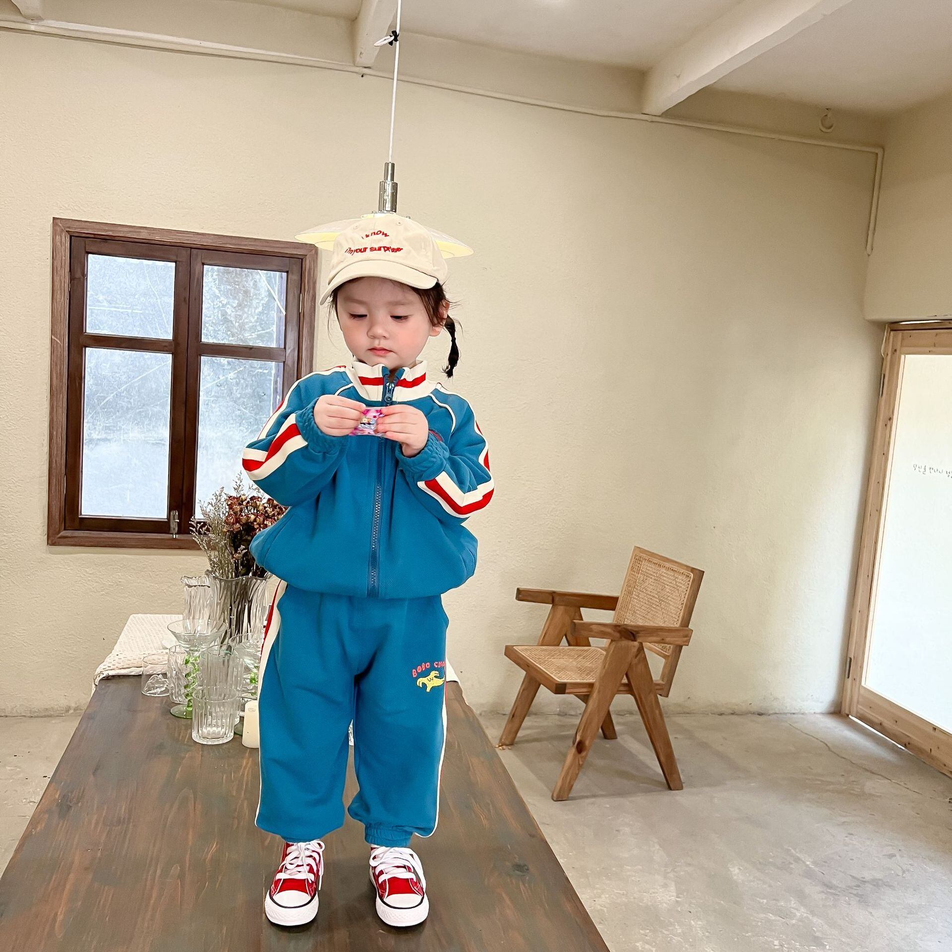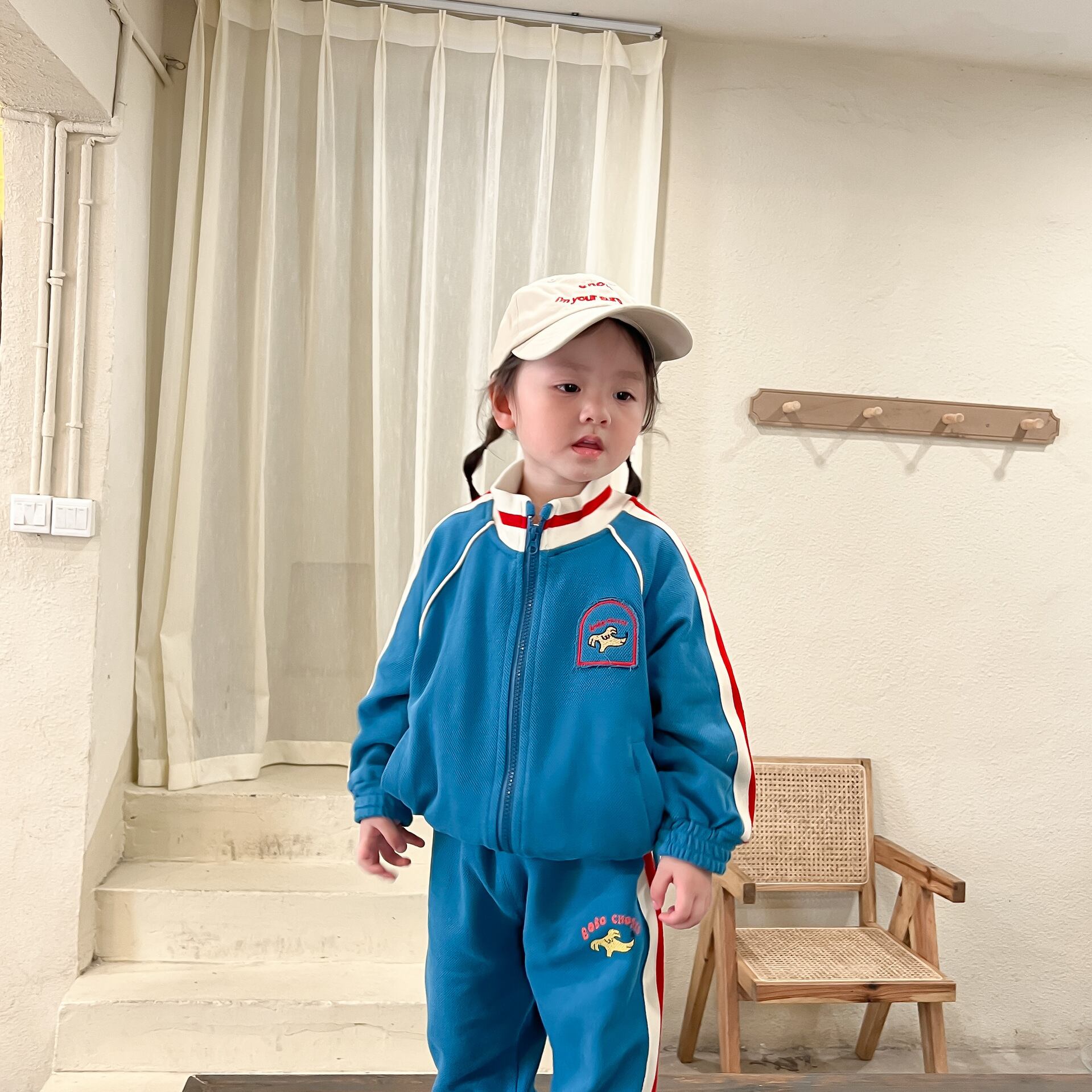 色:青いスーツ