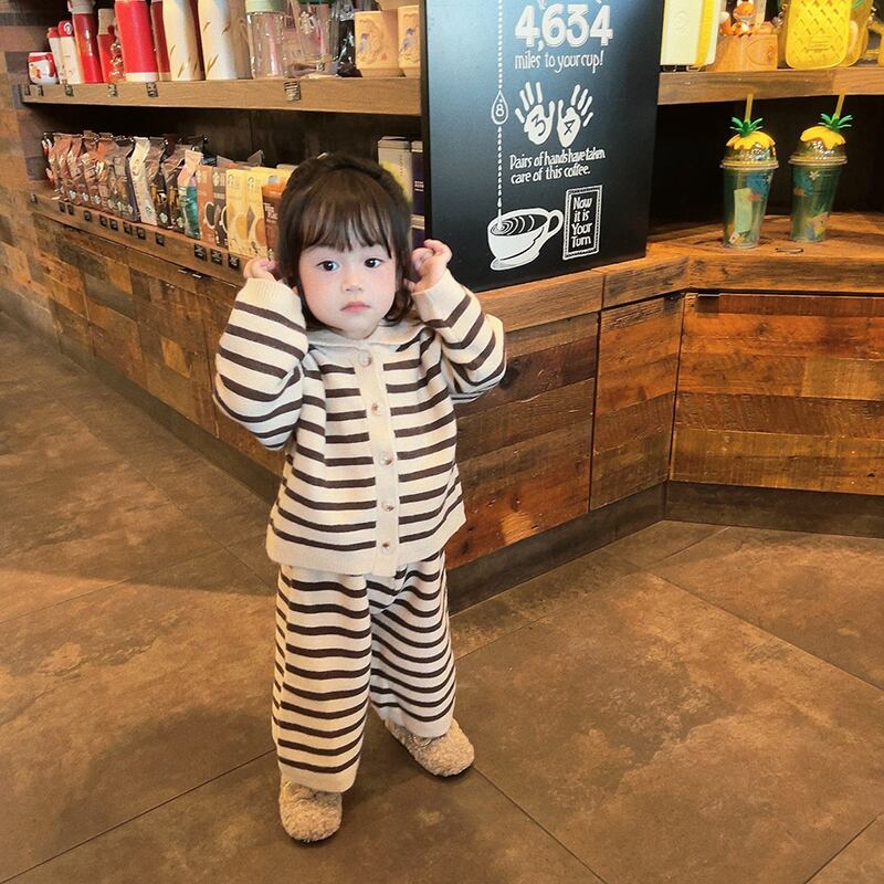 色:ストライプドールカラーセーター,ストライプニットパンツ,ストライプスーツ