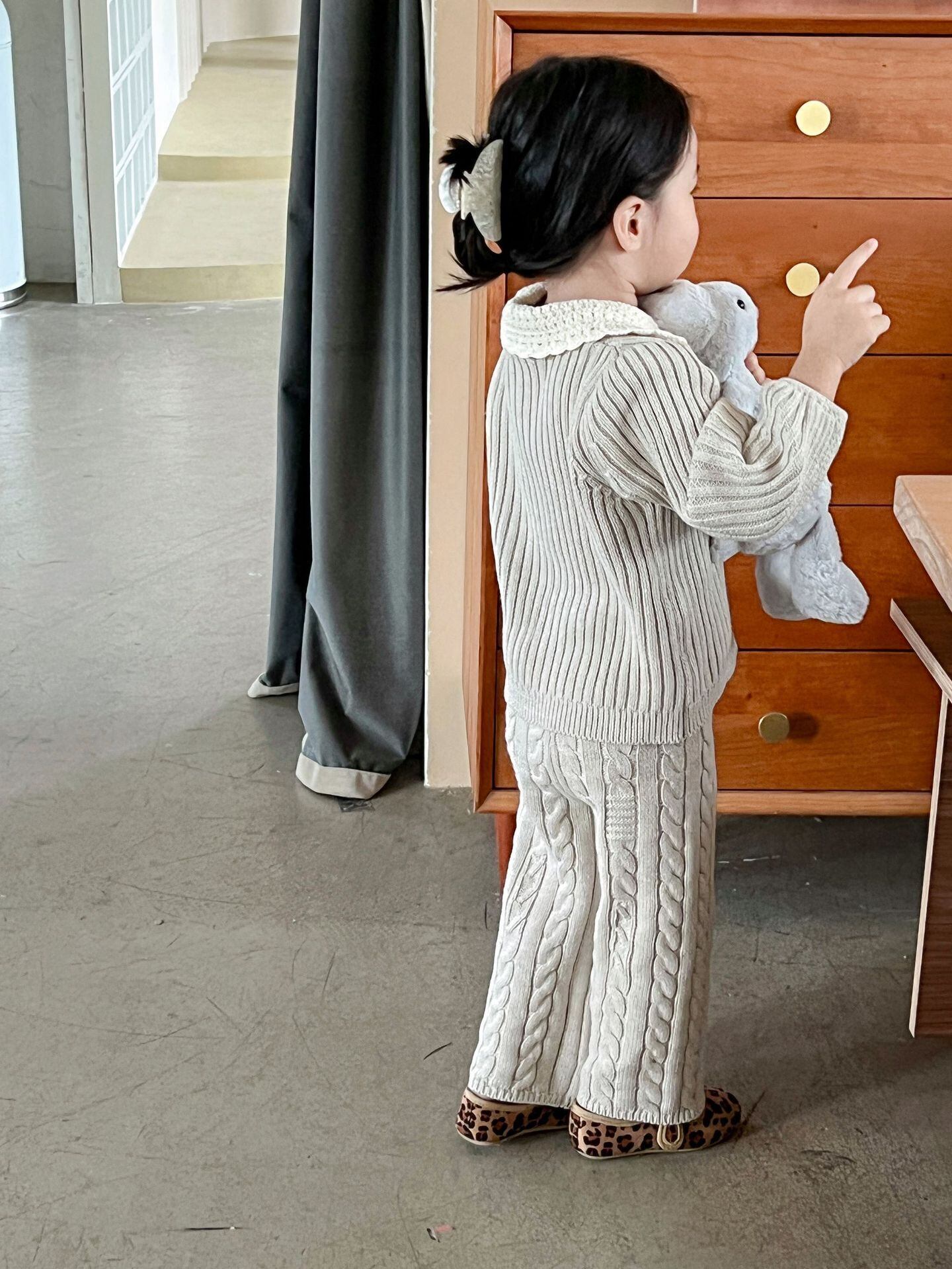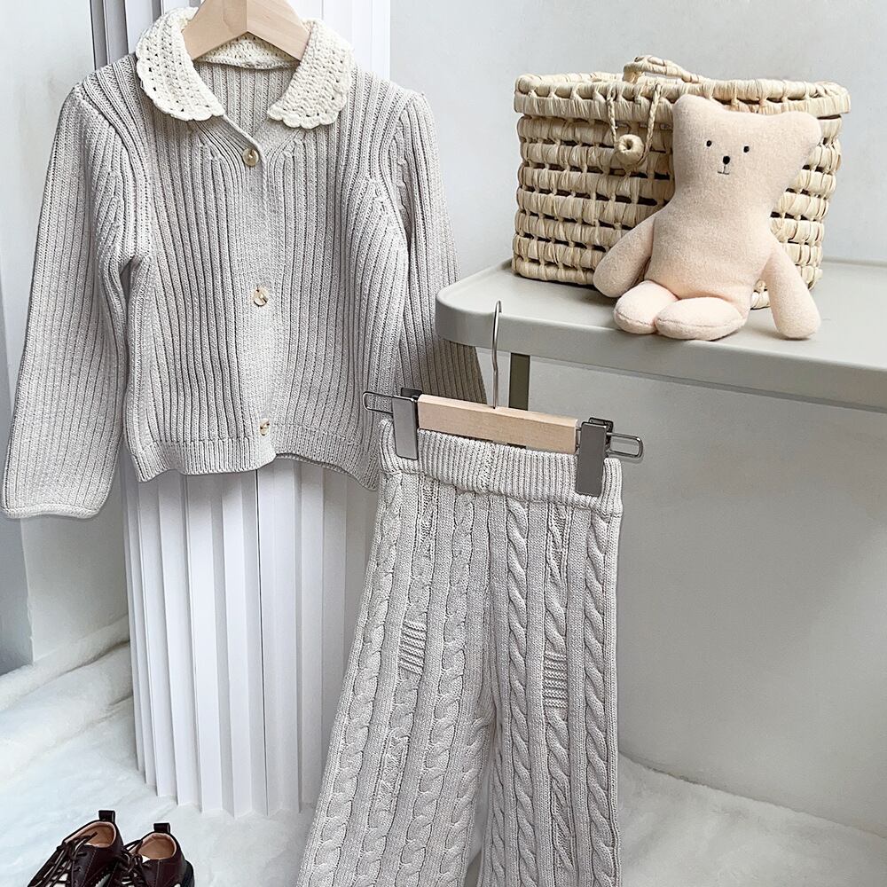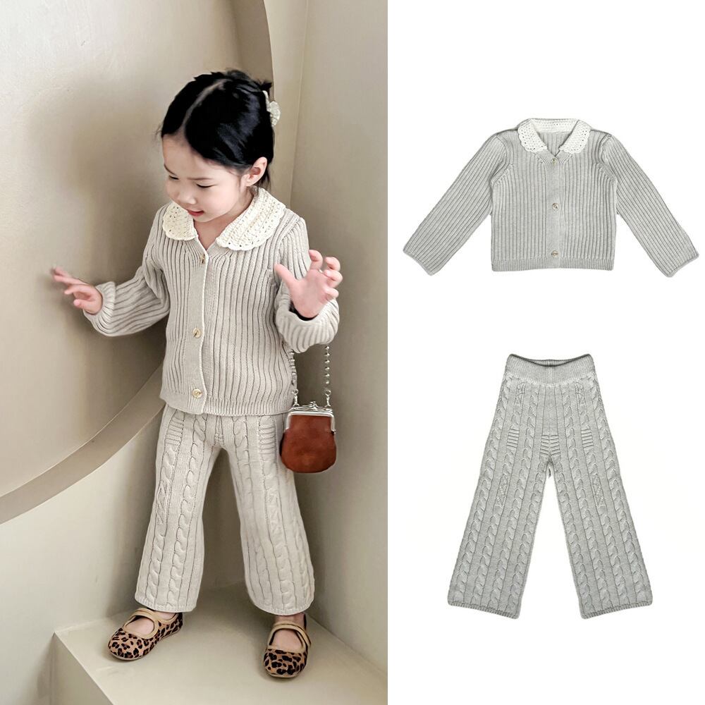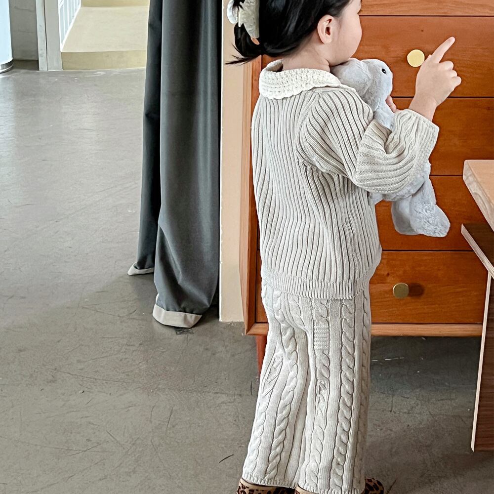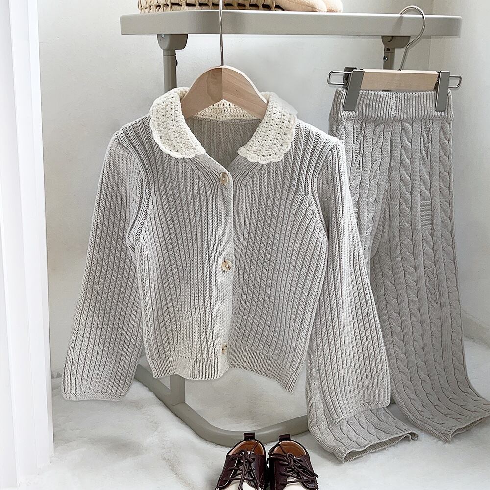 色:レーススモールラペルカーディガン,ストレートレッグパンツ