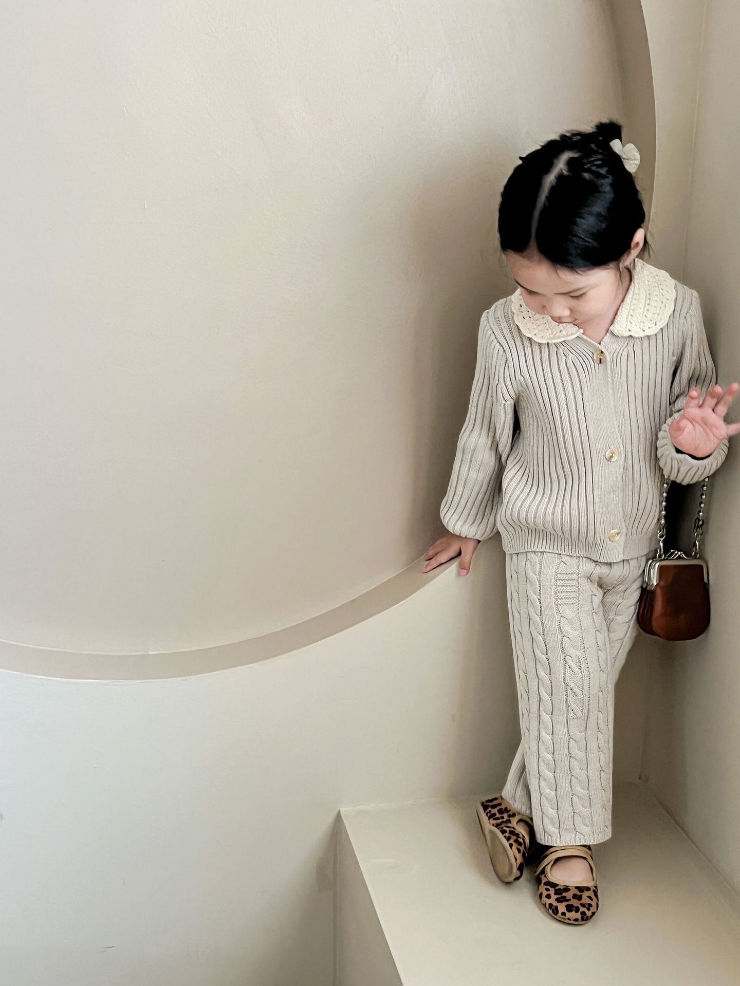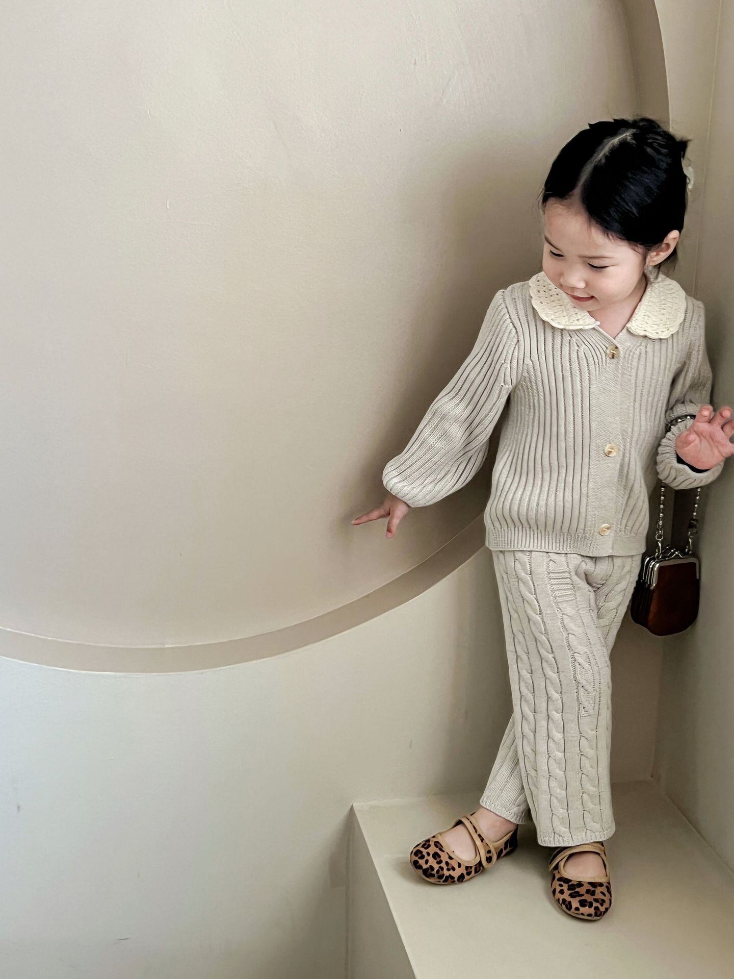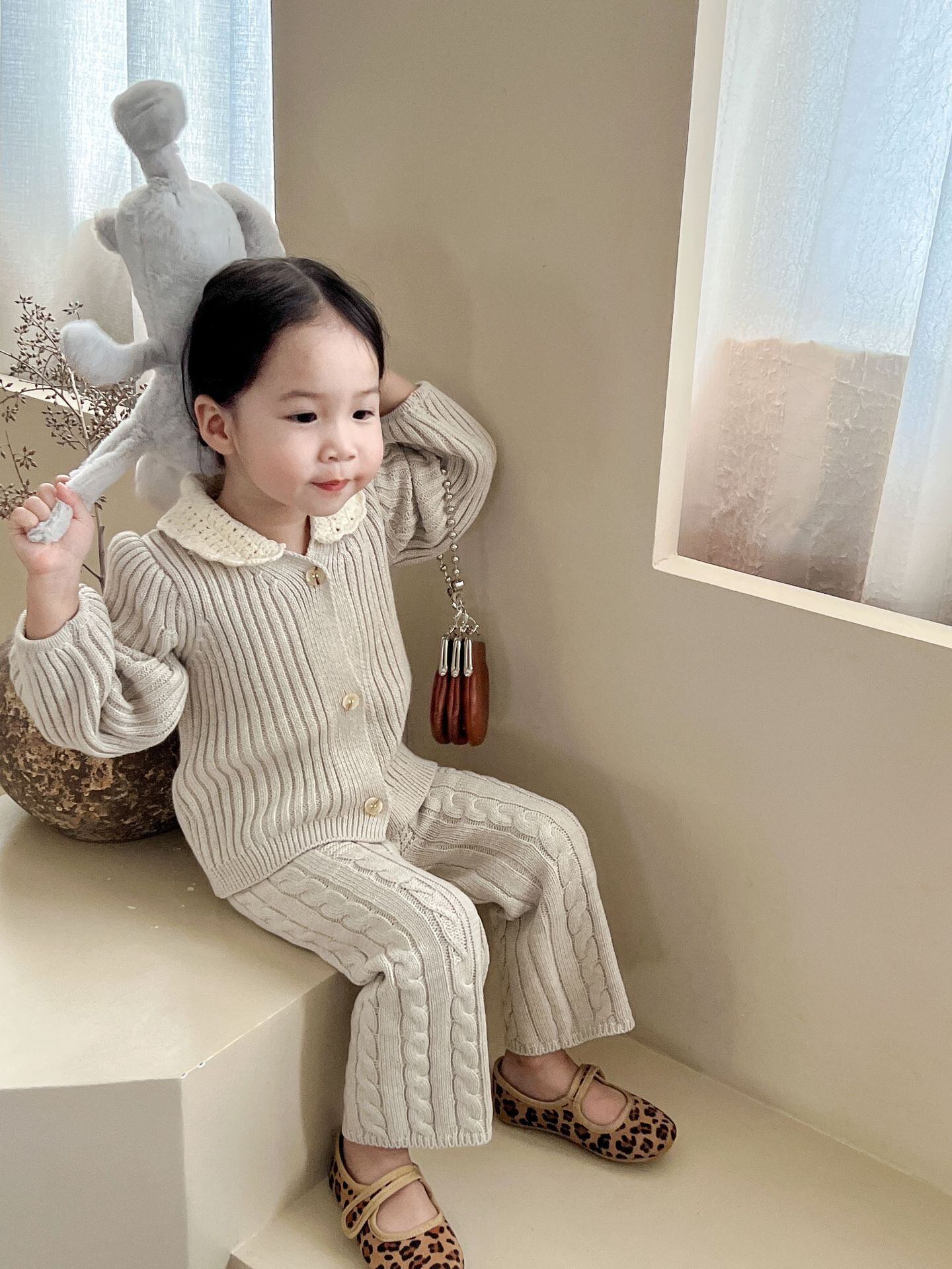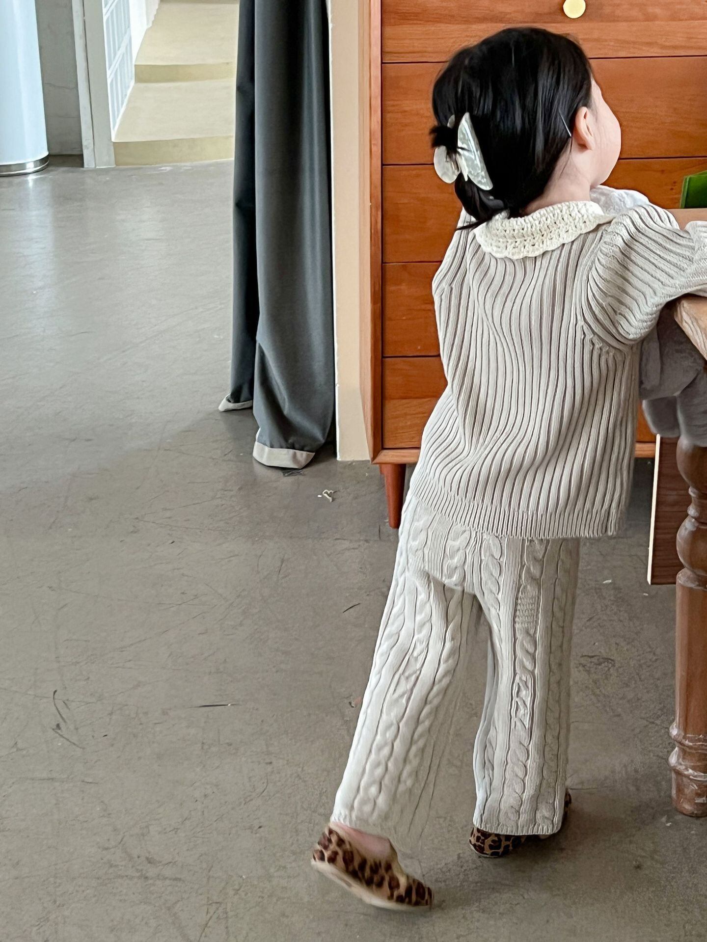 色:レーススモールラペルカーディガン,ストレートレッグパンツ
