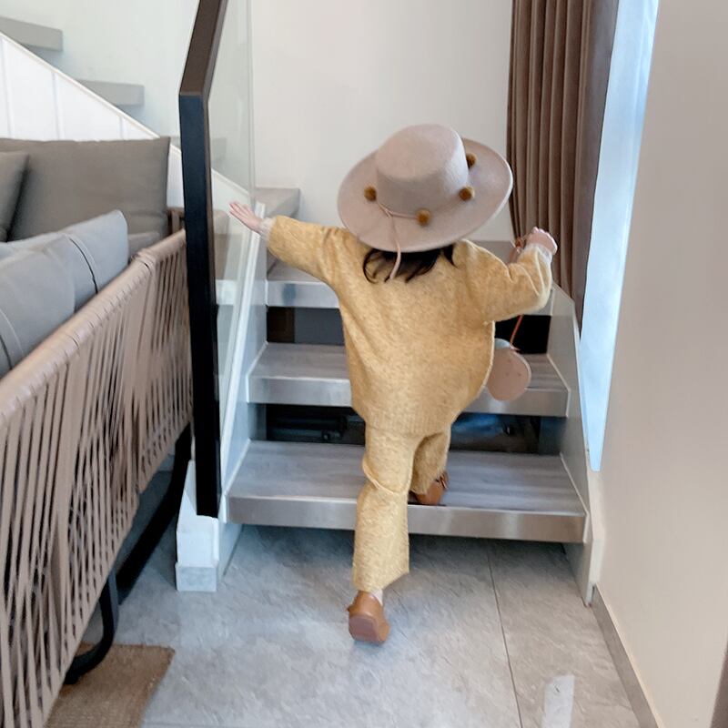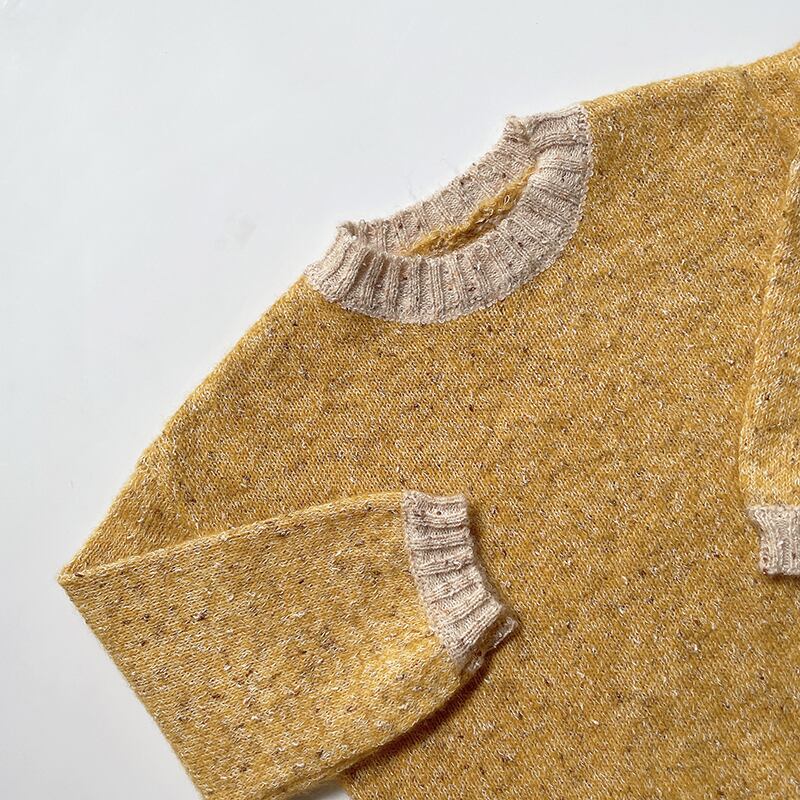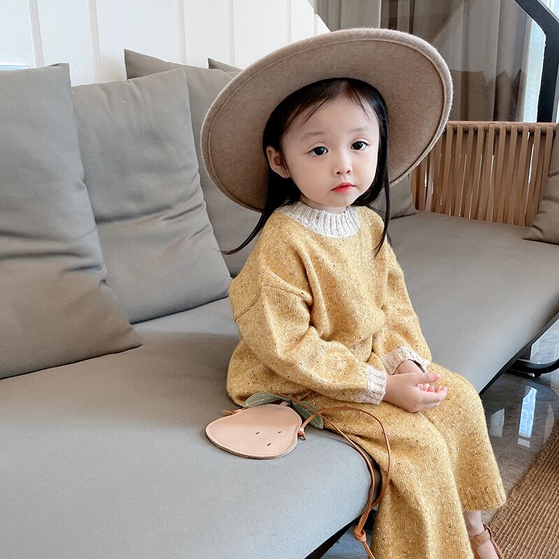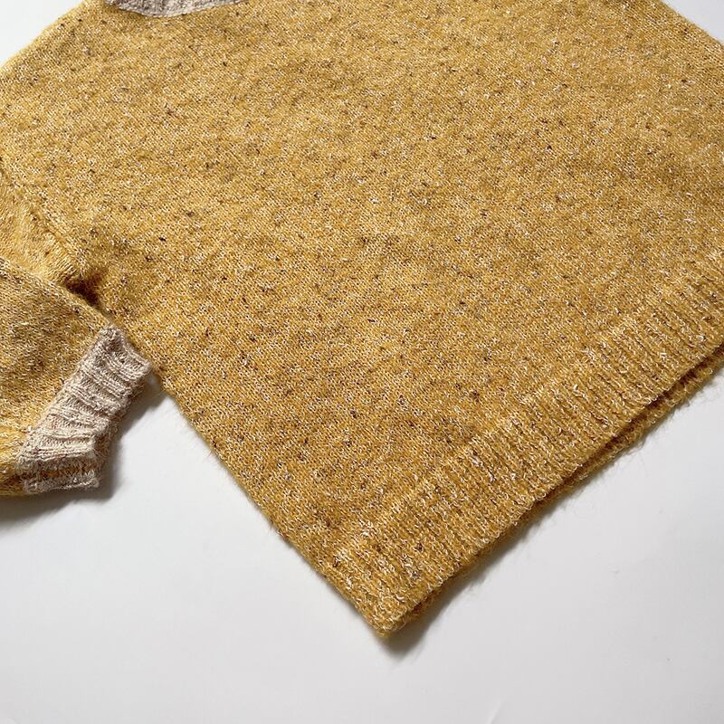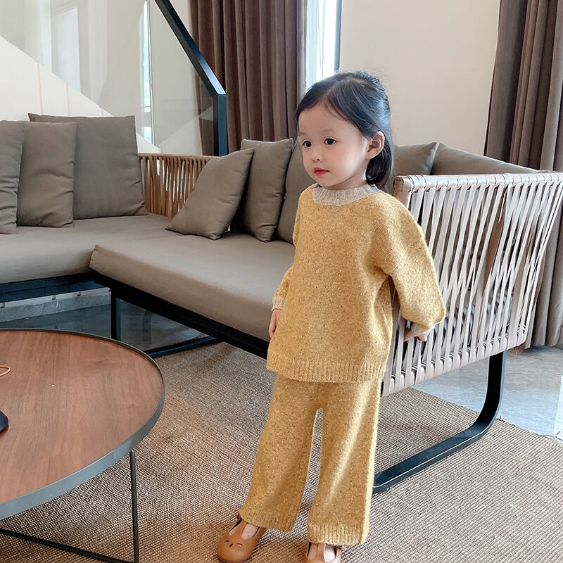 色:暖かい黄色のセーター,ニットパンツ
