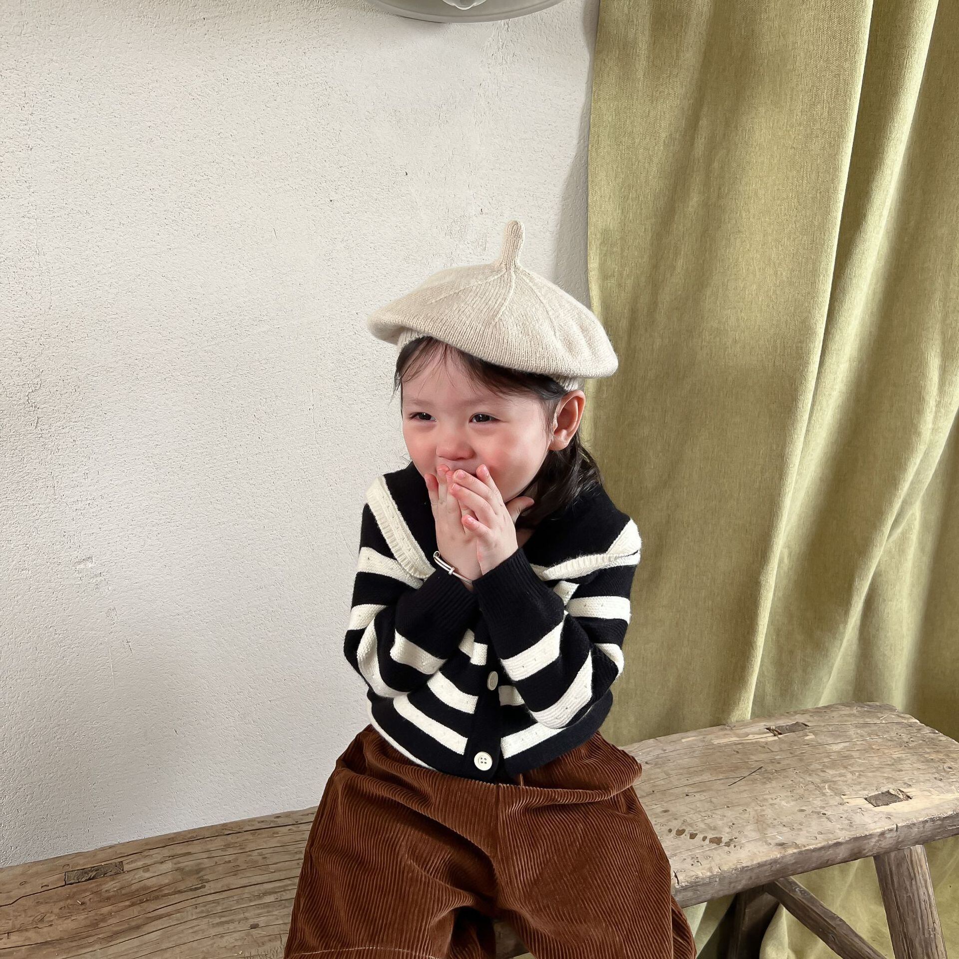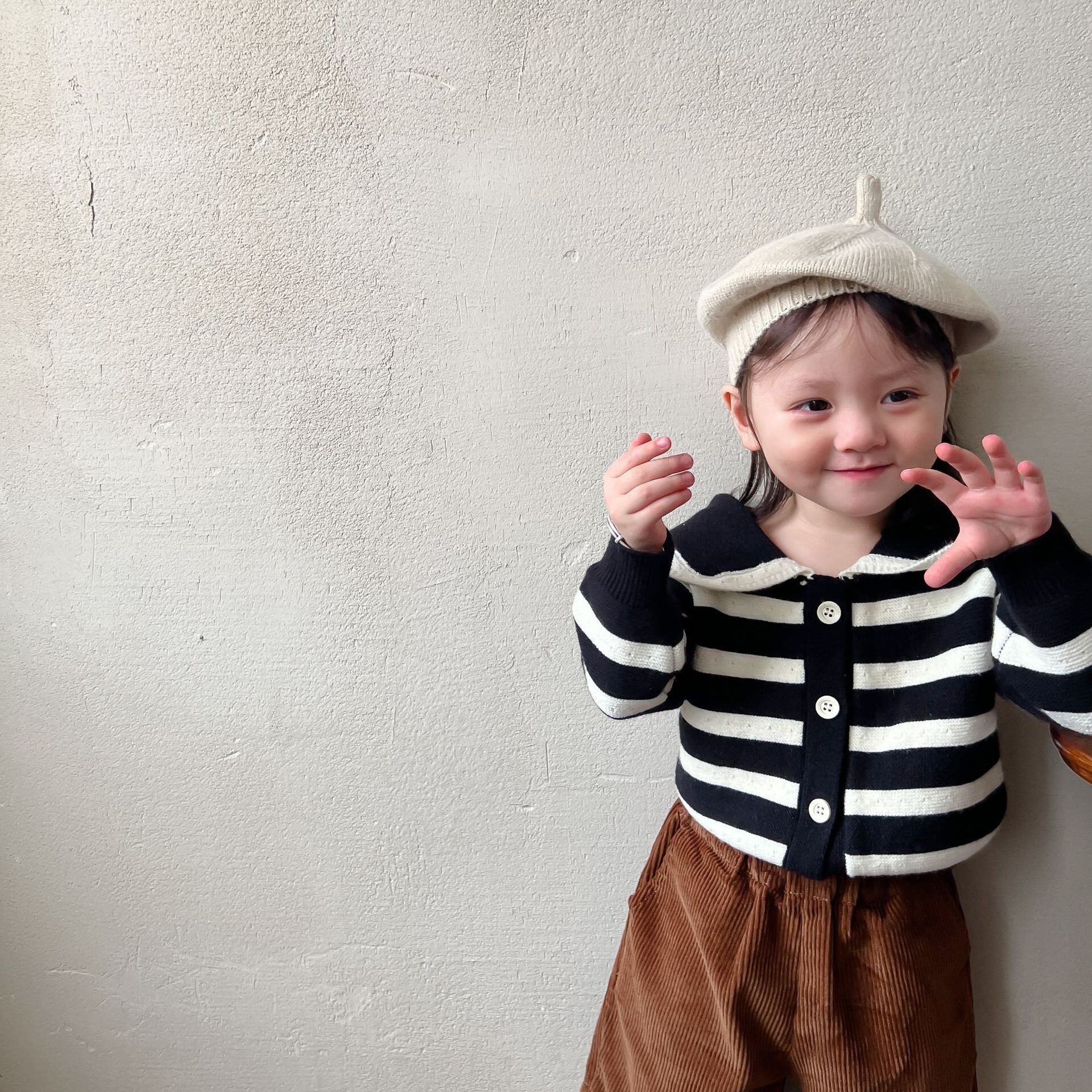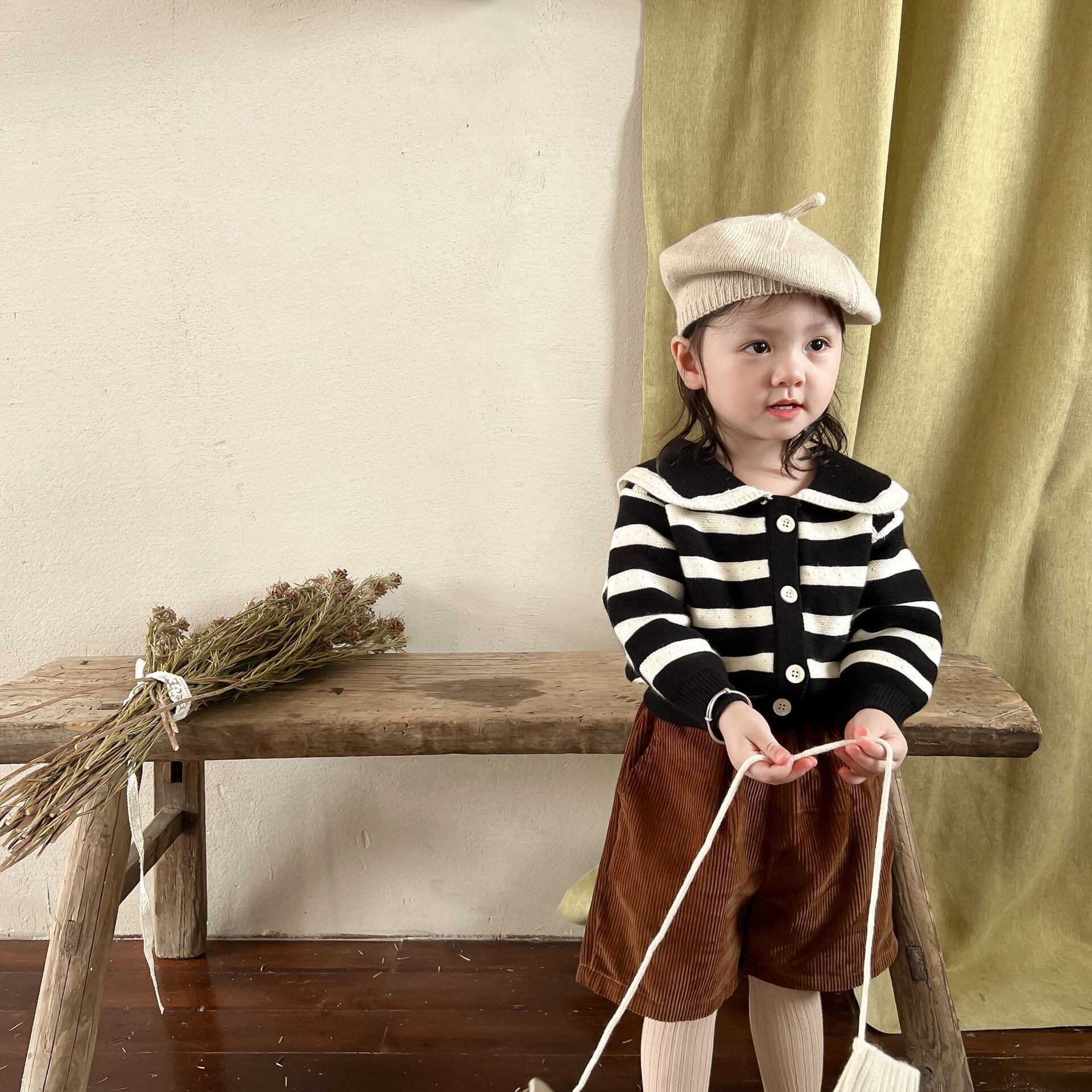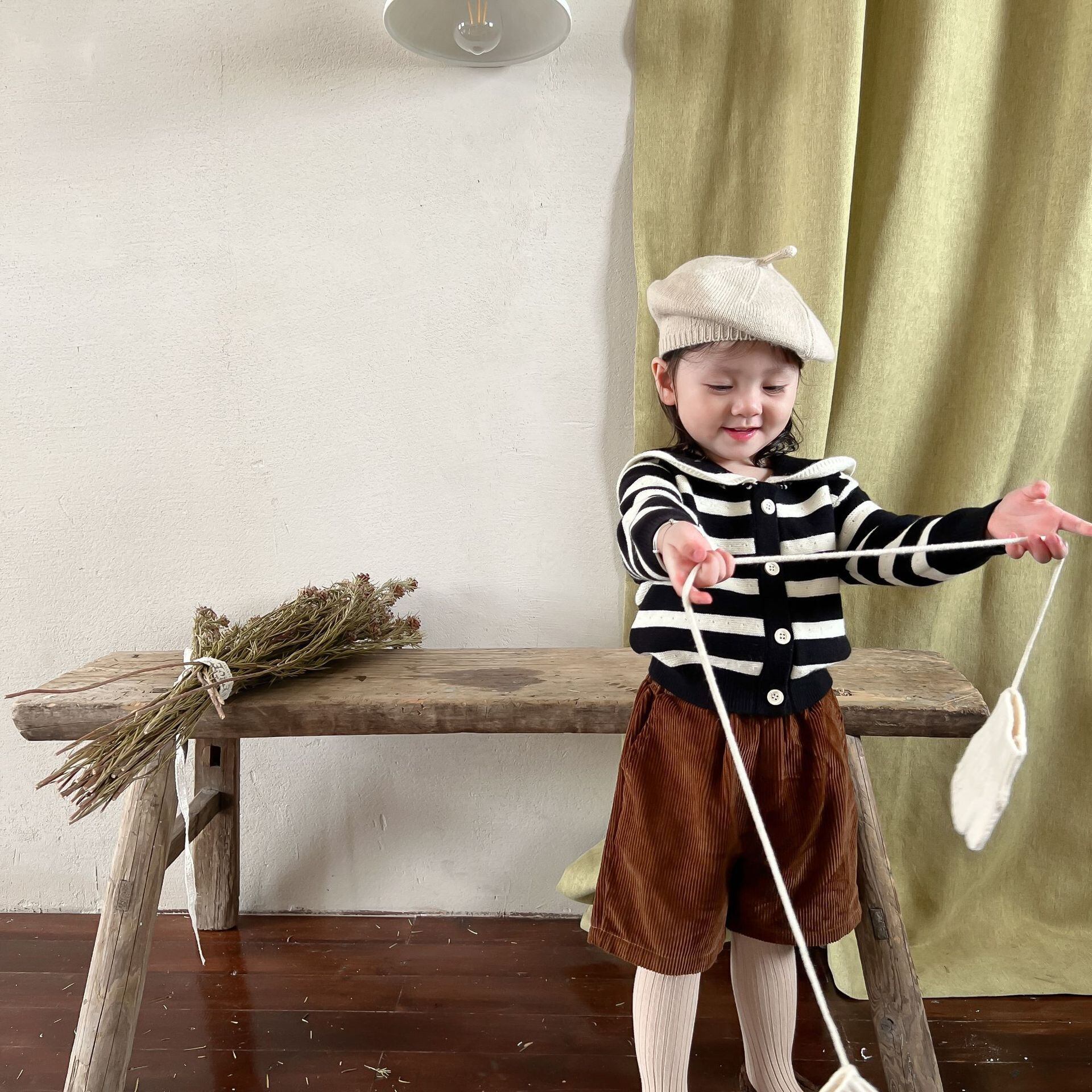 色:ブラックストライプセーター,コーデュロイショーツ
