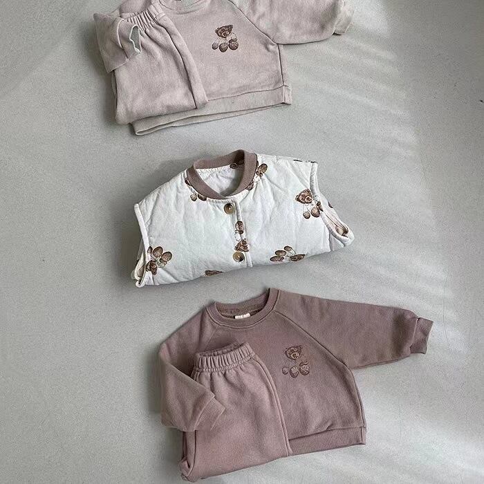 色:ライトceeレトロベア長袖セーター+ズボン,ベージュレトロベアロングスリーブセーター+トラウザーズ