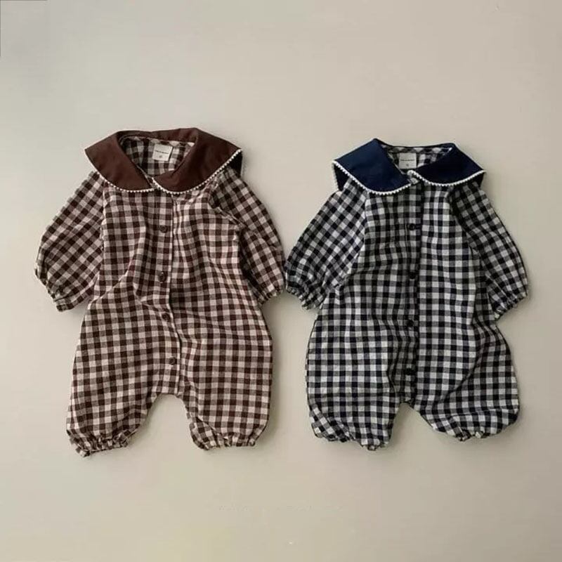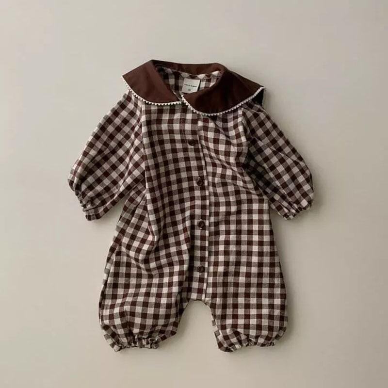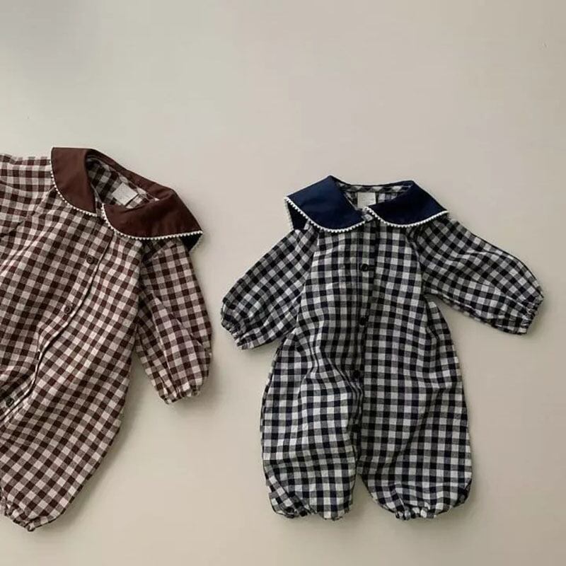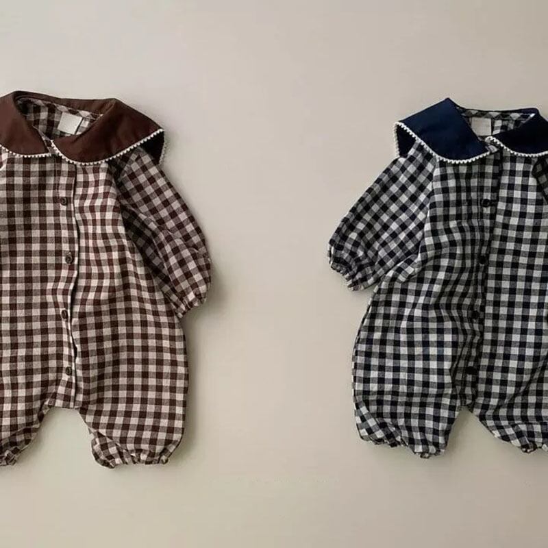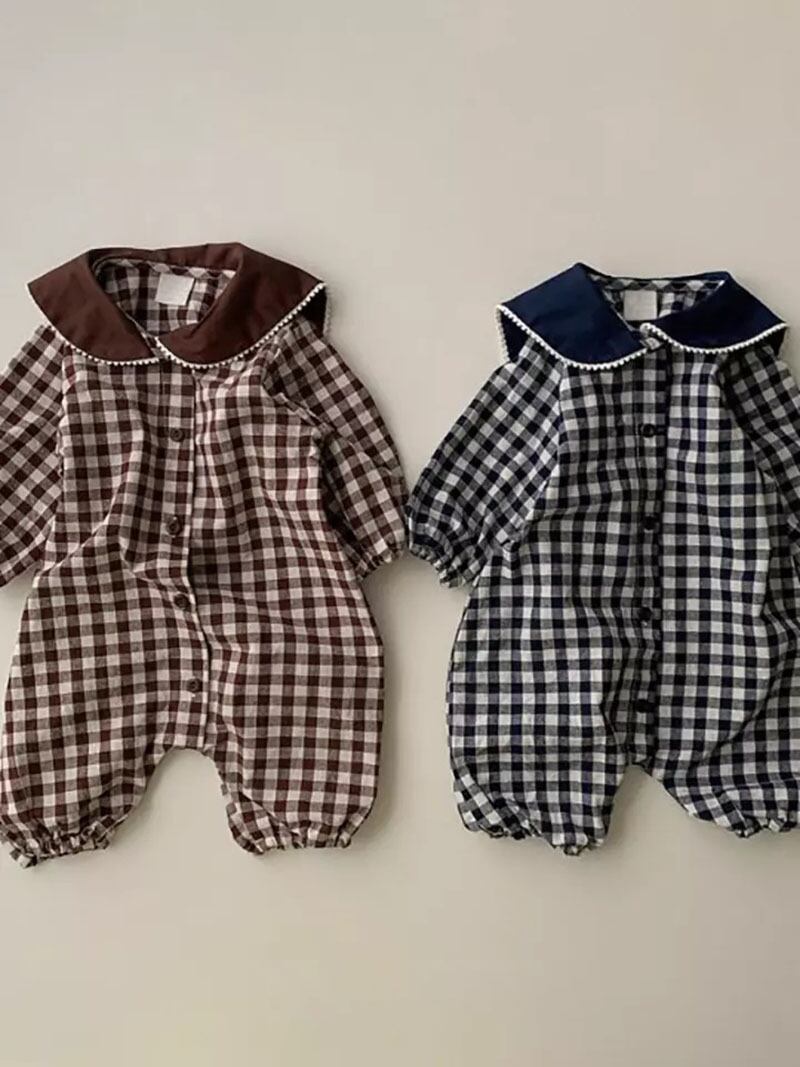 色:ブラウンチェックロングロンパース,ブラックチェックロングロンパース