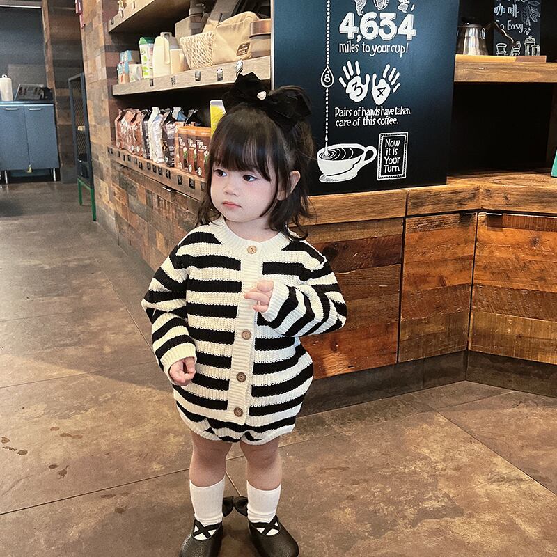 オータムストライプニットカーディガンショーツ スプリングカジュアルスタイルセーター 春物 秋物 ブルマー 5/17 春夏 SS mi0985911424079 | Sagittarius By Constellation -KIDS&BABY-