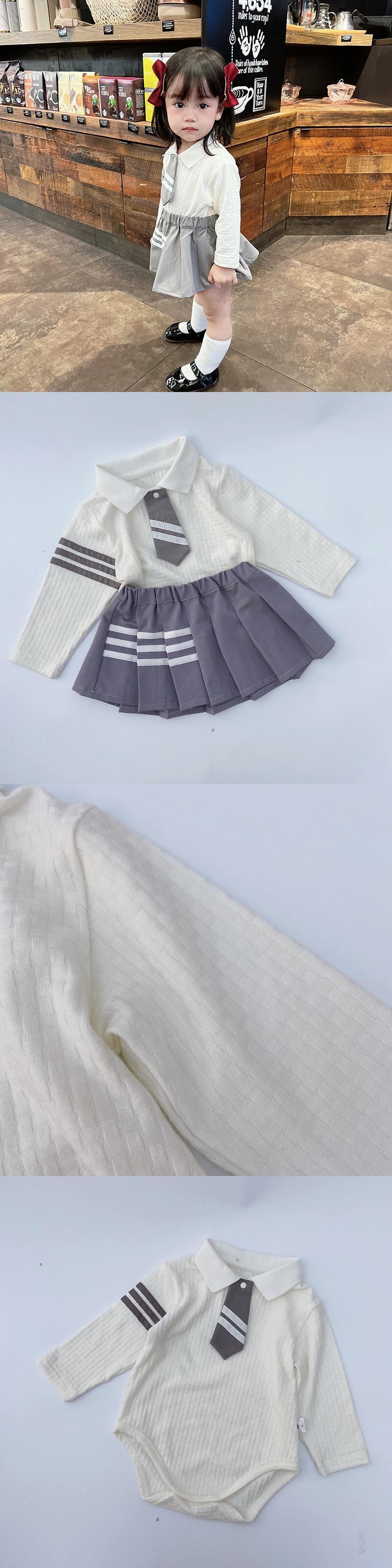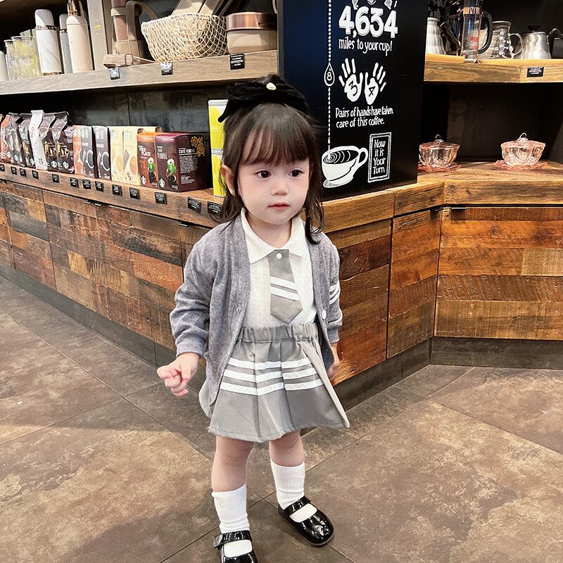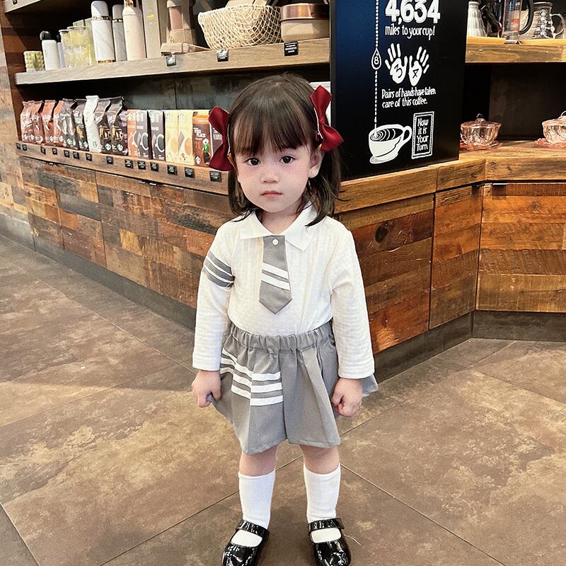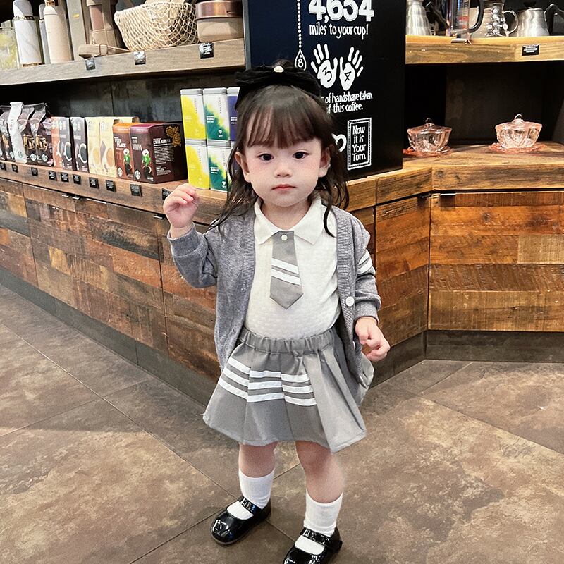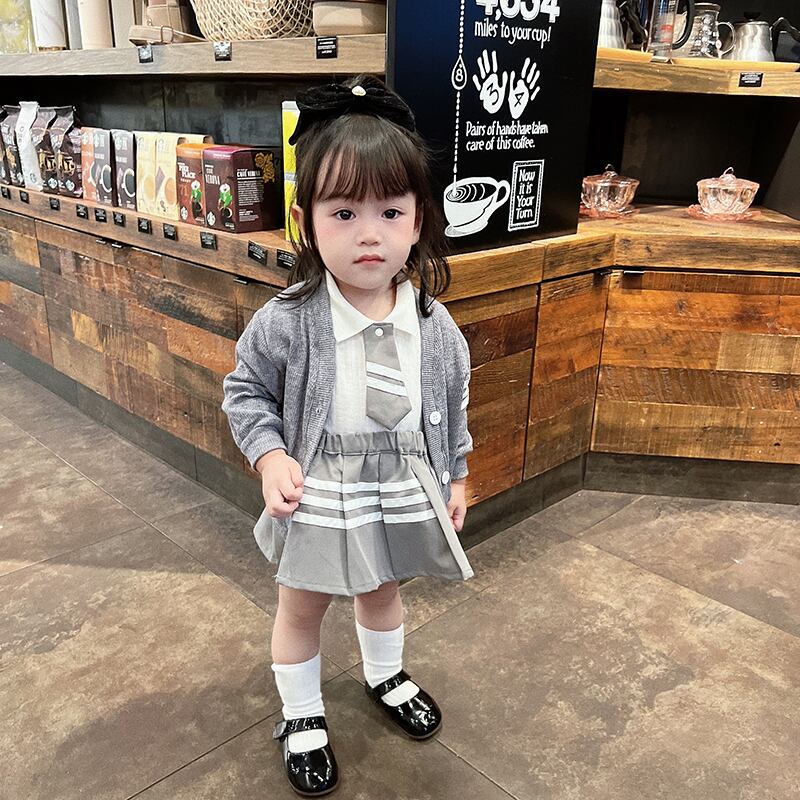 色:長袖ロンパース(66-90),長袖ポロ(73-100),カーディガン(73-100),プリーツスカート(66-100),長袖ロンパース+プリーツスカート,長袖ポロ+プリーツスカート,長袖ロンパース+スカート+ジャケット,長袖ポロ+スカート+プリーツスカート