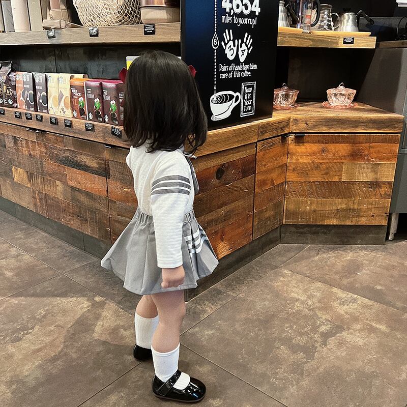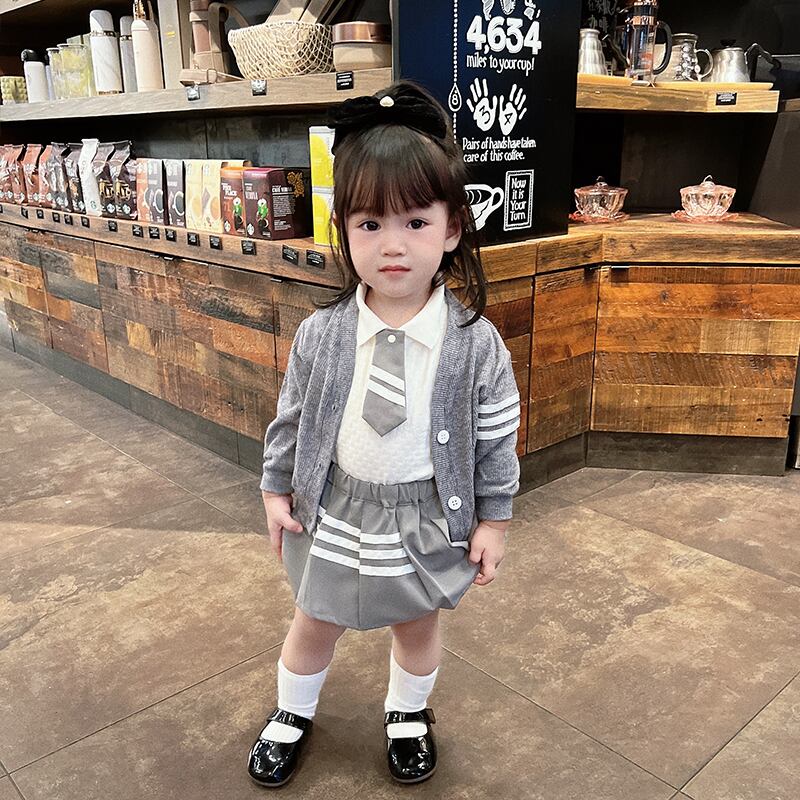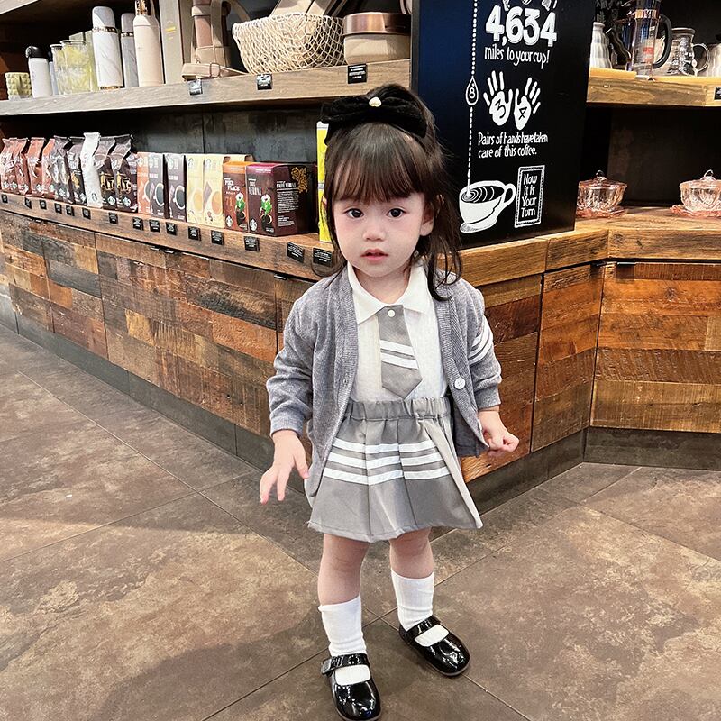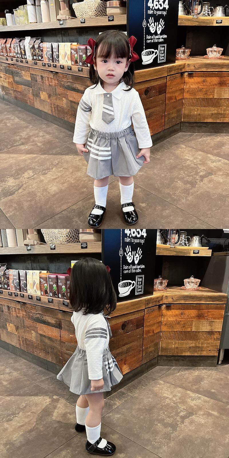 色:長袖ロンパース(66-90),長袖ポロ(73-100),カーディガン(73-100),プリーツスカート(66-100),長袖ロンパース+プリーツスカート,長袖ポロ+プリーツスカート,長袖ロンパース+スカート+ジャケット,長袖ポロ+スカート+プリーツスカート