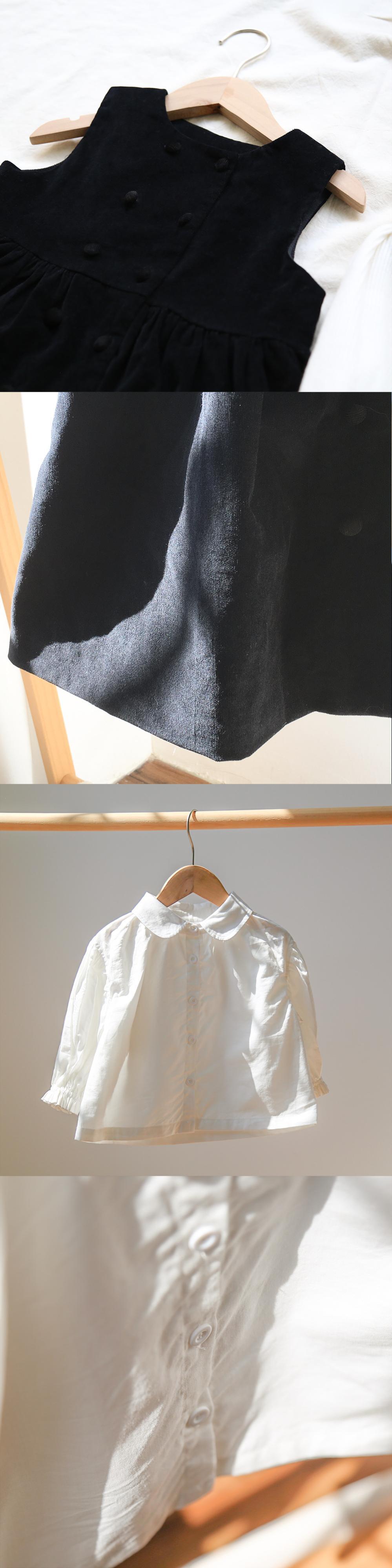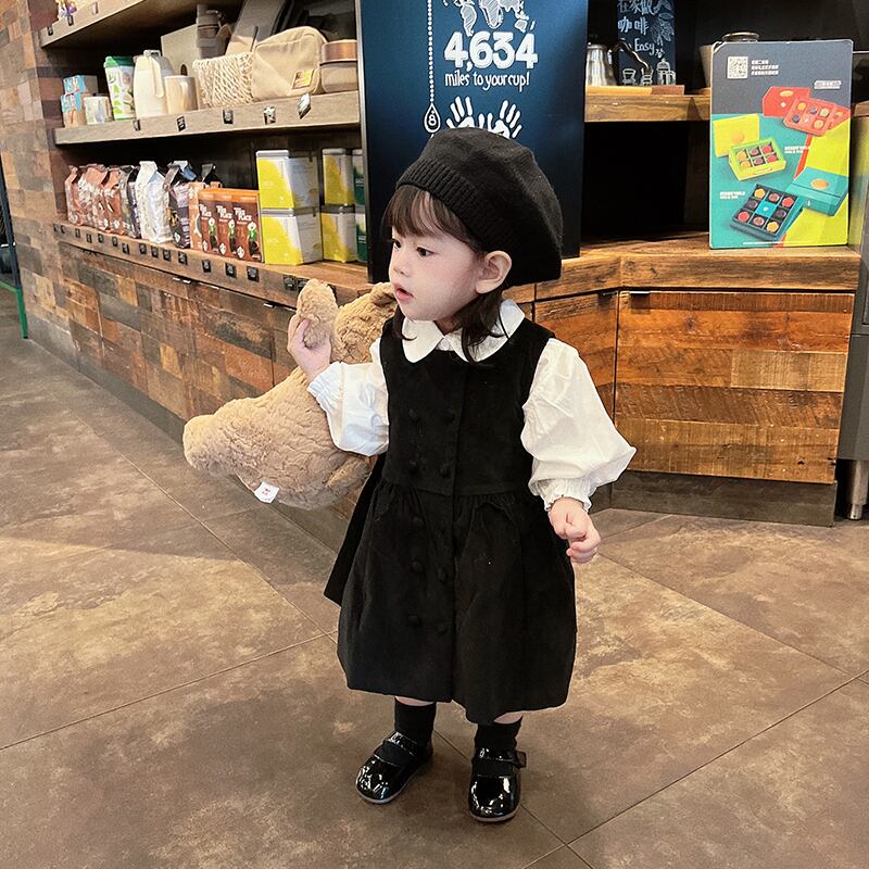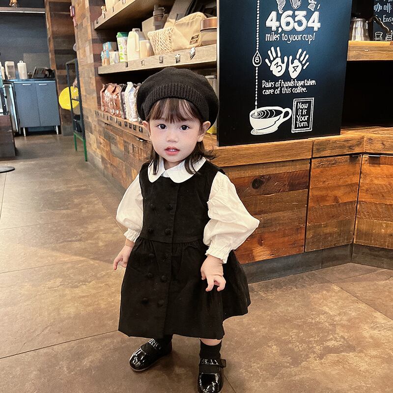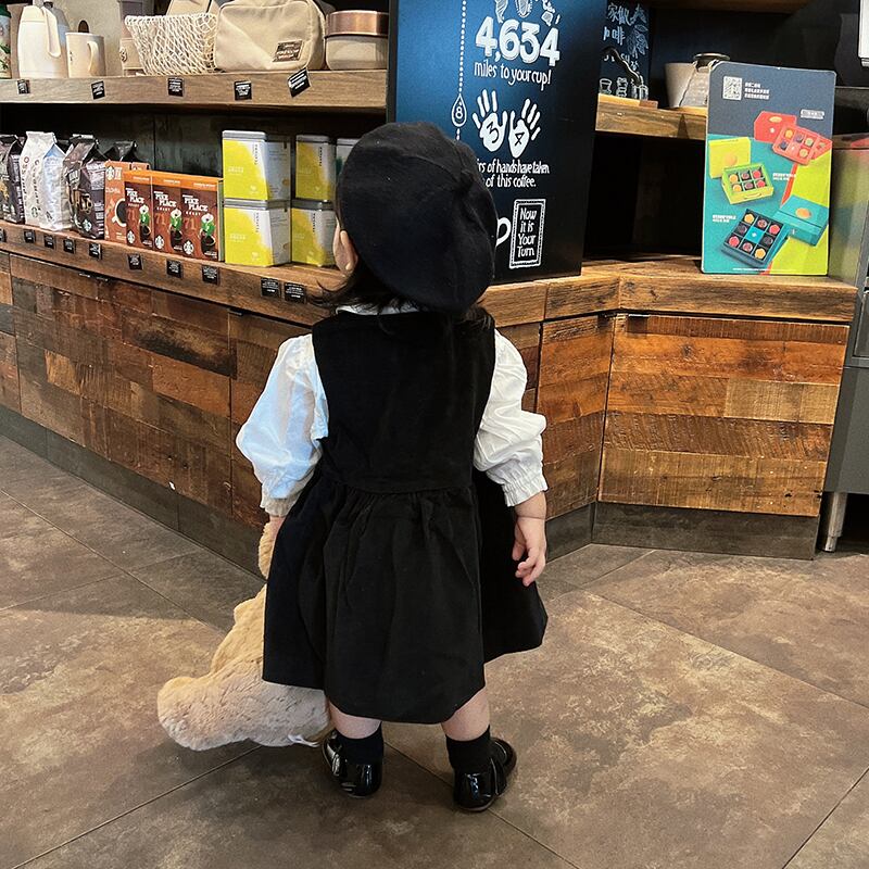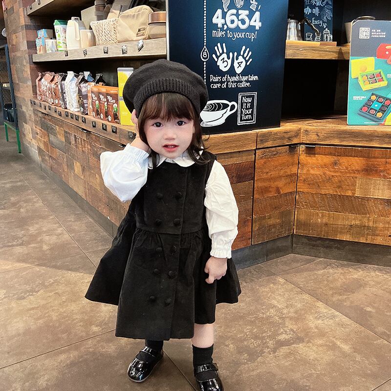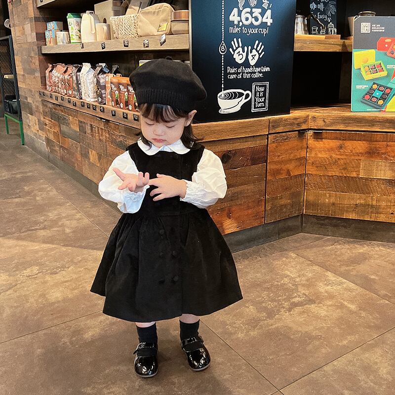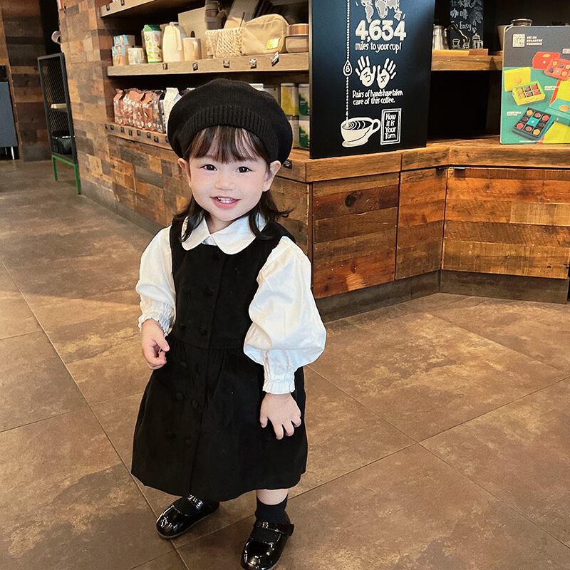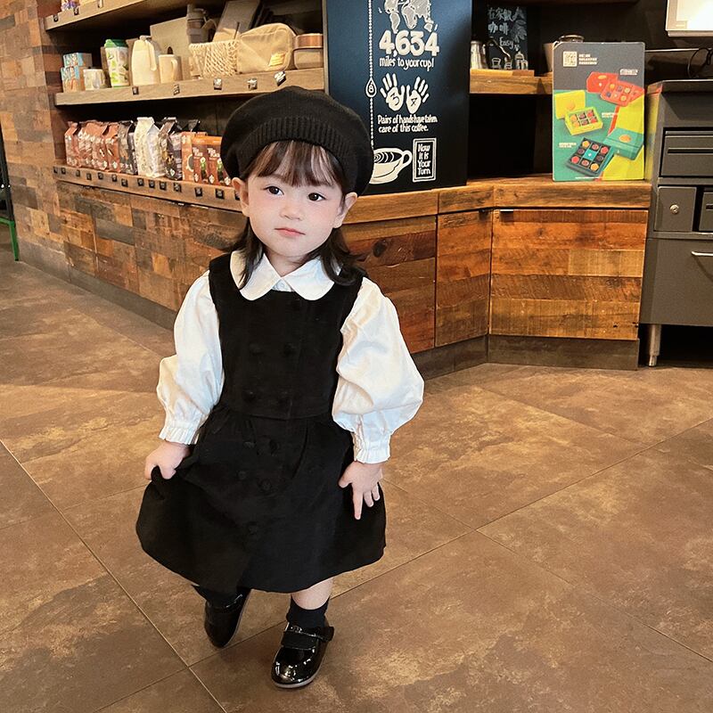 色:白のシャツ,黒のタンクスカート,黒い帽子,シャツ+スカート+ベレー帽
