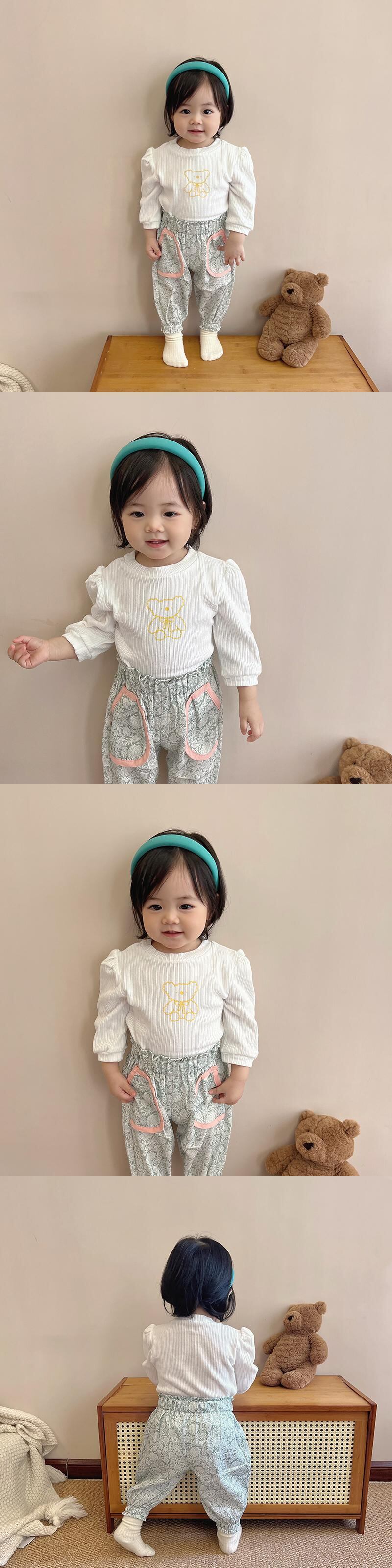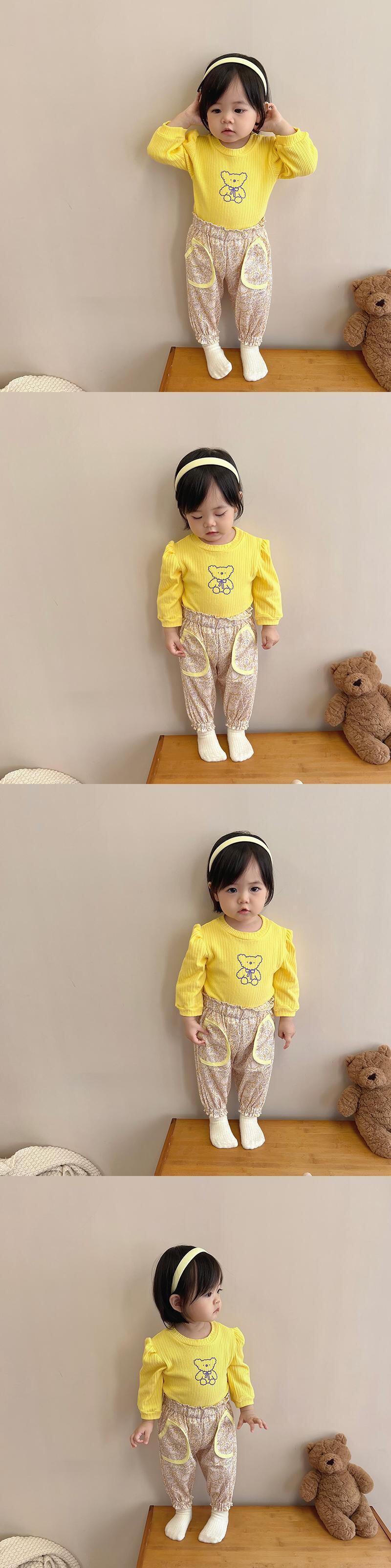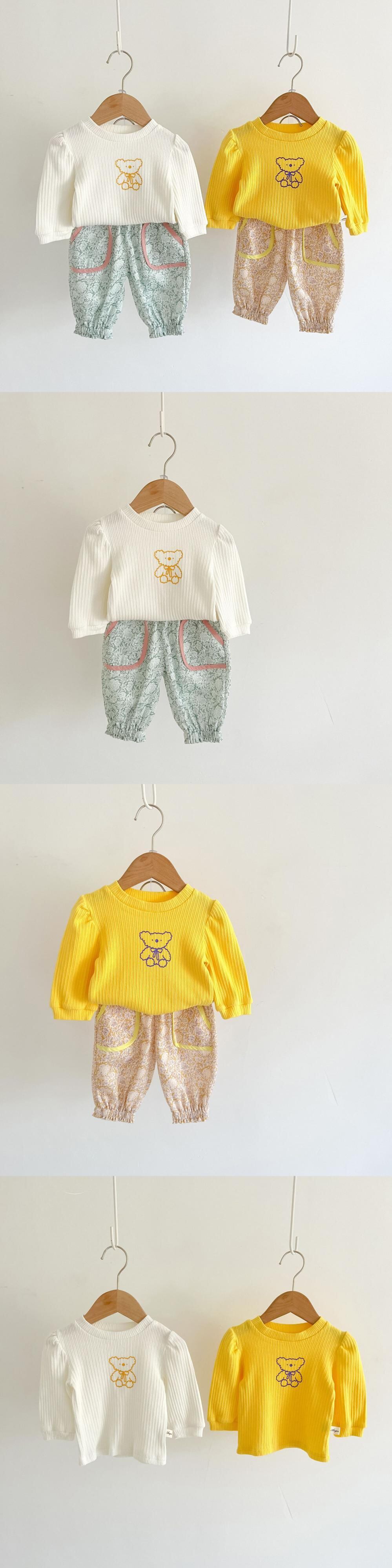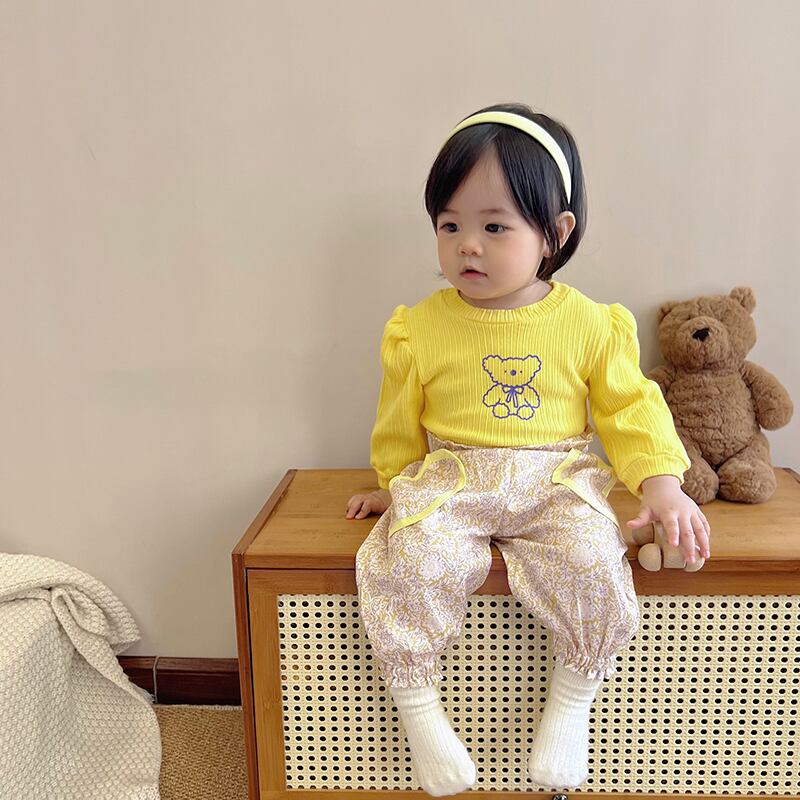 色:黄色のシャツ,ホワイトトップ,グリーンバッドパンツ,黄色いつぼみパンツ
