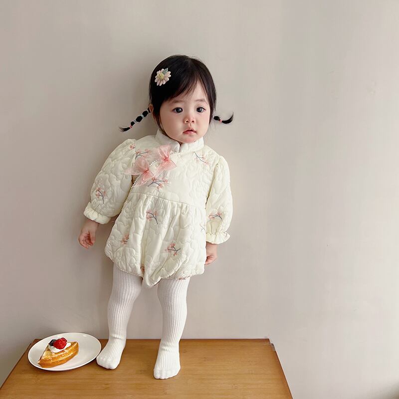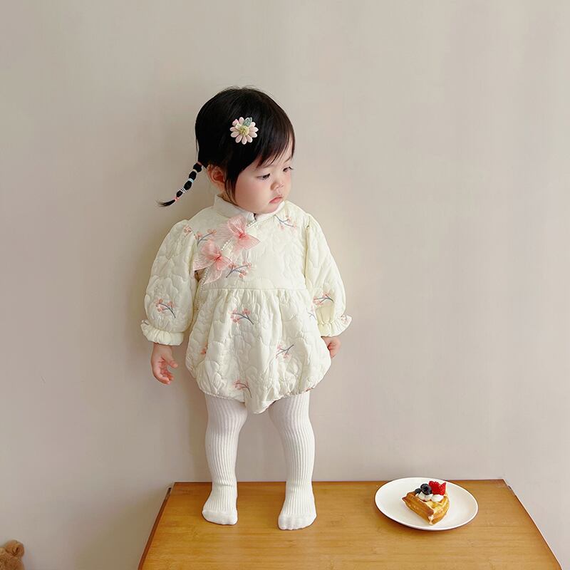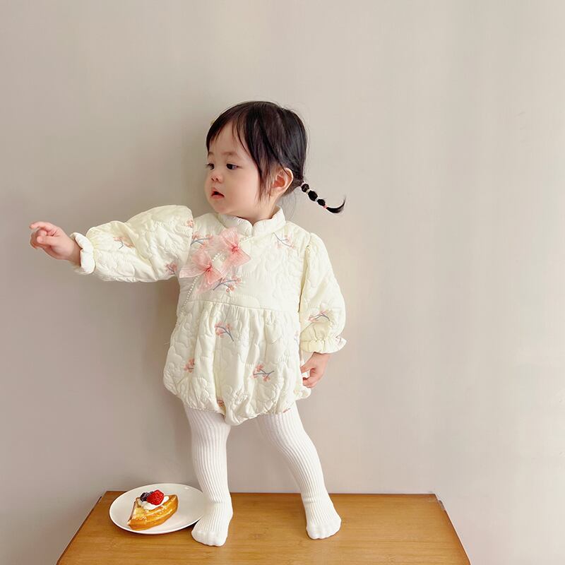 色:ベージュシノワズリパデッドロンパース