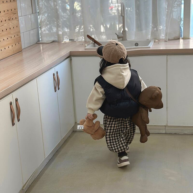 色:褐色,トレーナー,ブラックダウンコットンベスト,グリーンダウンコットンベスト