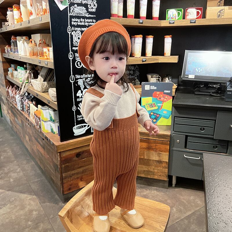 色:黒いセーター,アプリコットセーター,アプリコットビブ,ブラウンのオーバーオール,ブラックインナー+アプリコットパンツ,アプリコットインサイド+ブラウンパンツ,黒のスリーピースハット+インナー+パンツ,ブラウンのスリーピースハット+インナー+パンツ