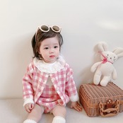 色:ピンクのサスペンダー,ピンクのカーディガン,蓮の葉の襟,カーディガン+サスペンダー+インサイド